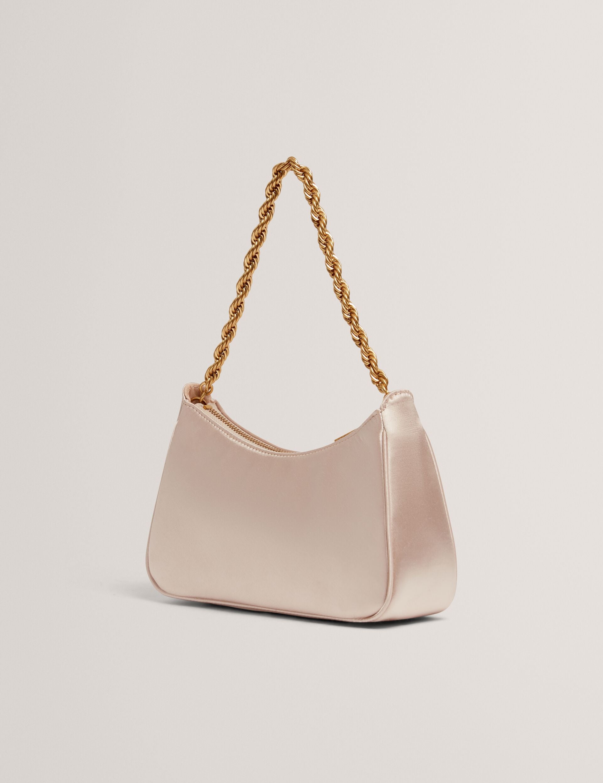 Kleine Tasche, großes Statement. AGNISE besticht durch edles Satin und einen Schulterriemen aus gedrehter Kette in einem kräftigen Goldton. Genau die richtige Größe für Ihre wichtigsten Dinge.