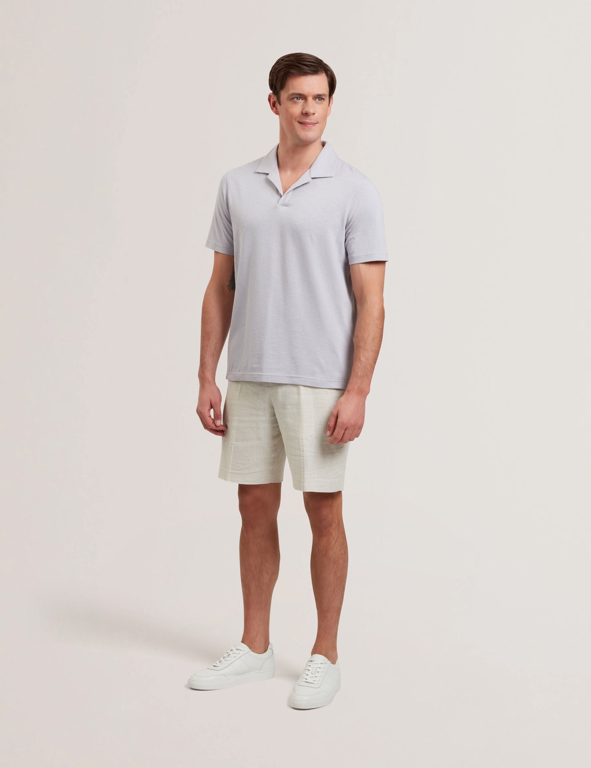 Cotton Linen Open Neck Polo Shirt
