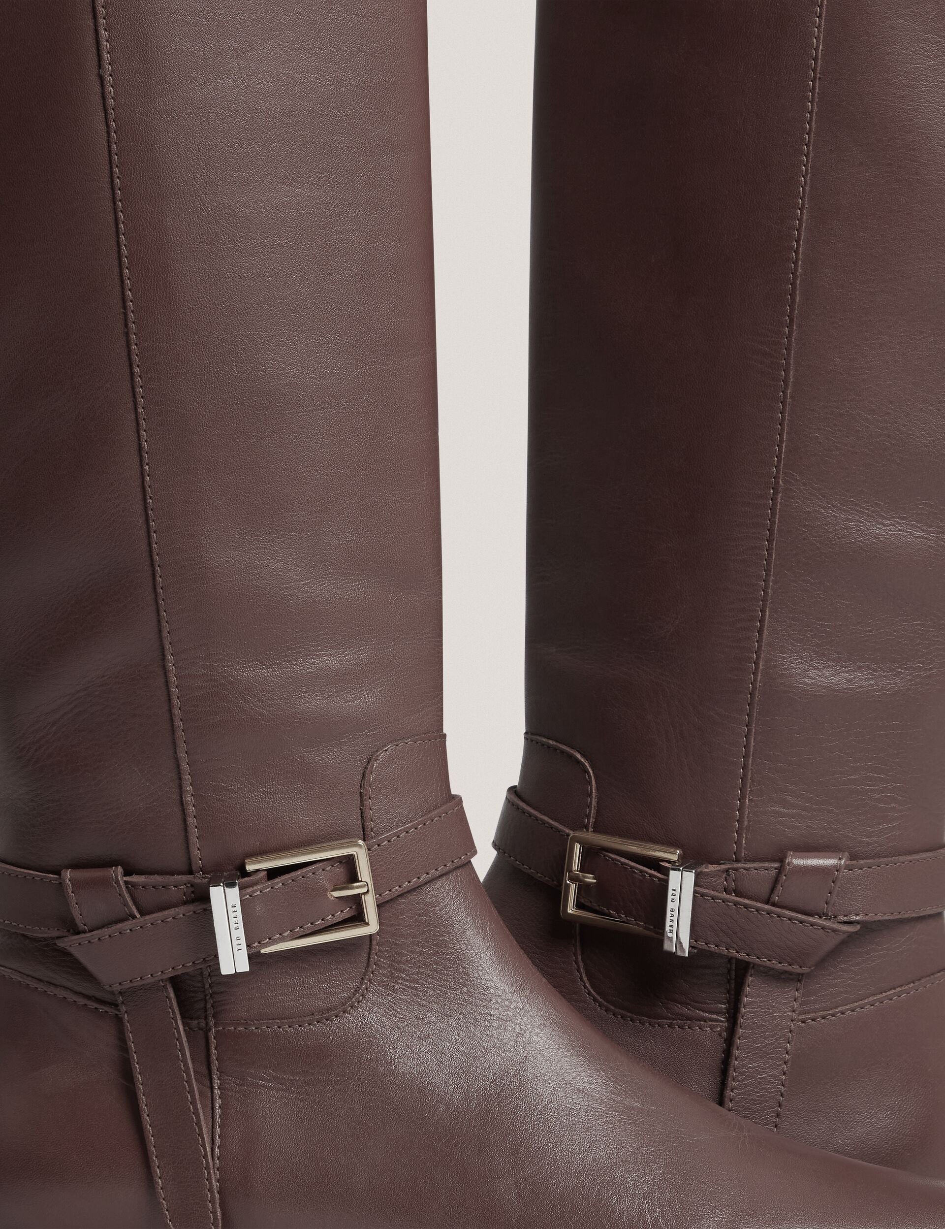 Smooth leather meets equestrian-inspired design in the CLORET riding boots. Complete with a stylish belt detail and flat heel, these knee high classics exude elegant, timeless style ready for all-day wear.