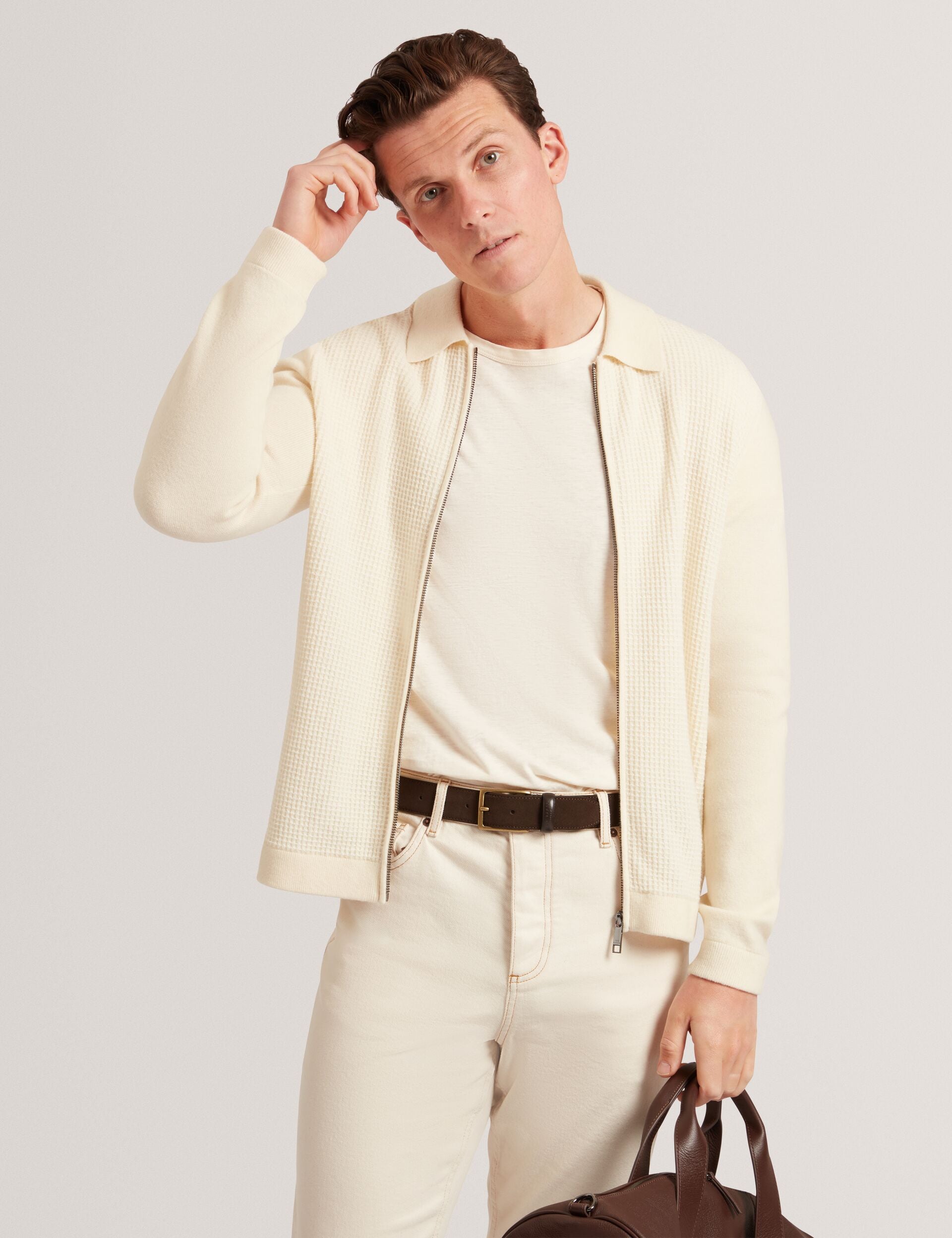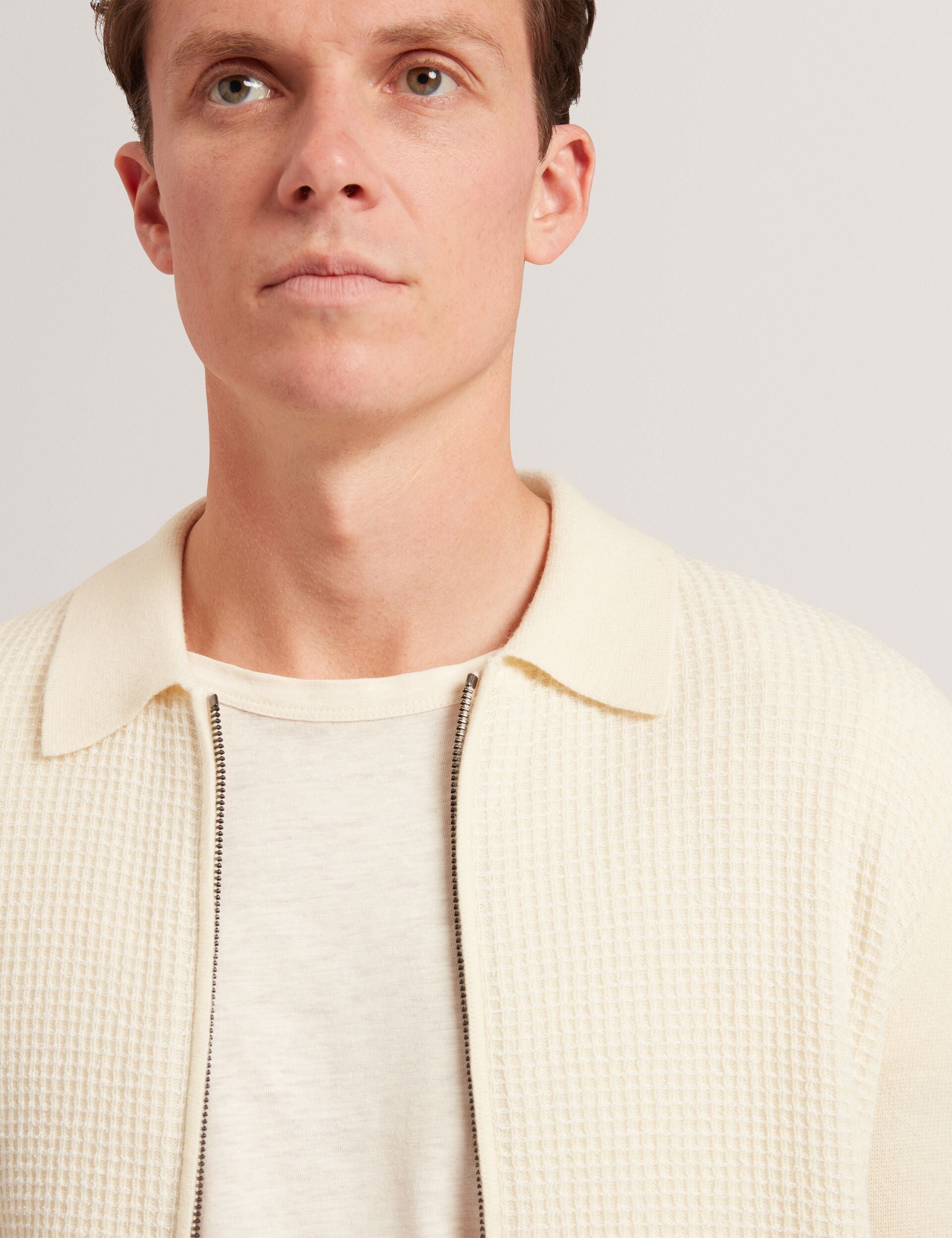 Waffle Knit Zip-Through Jumper