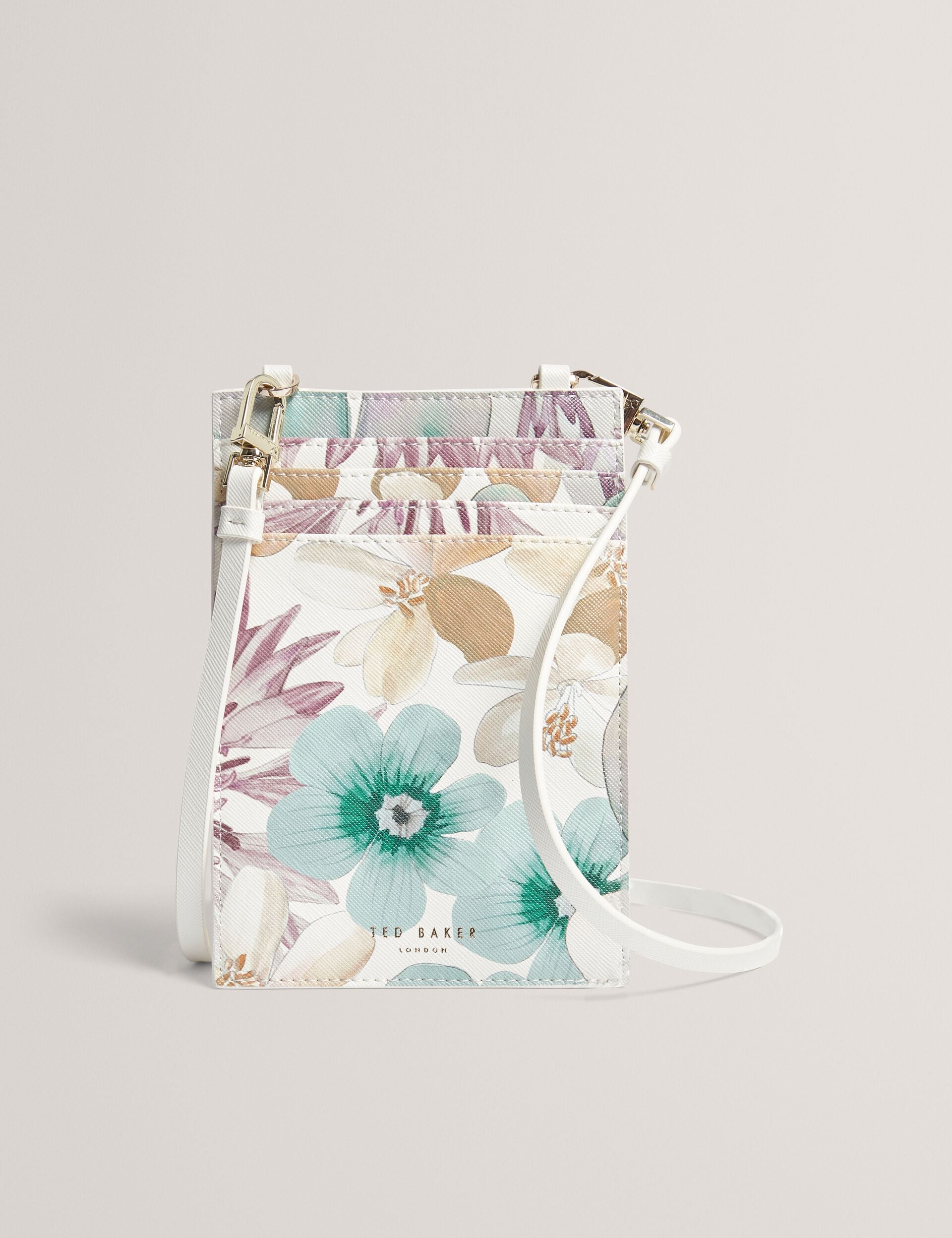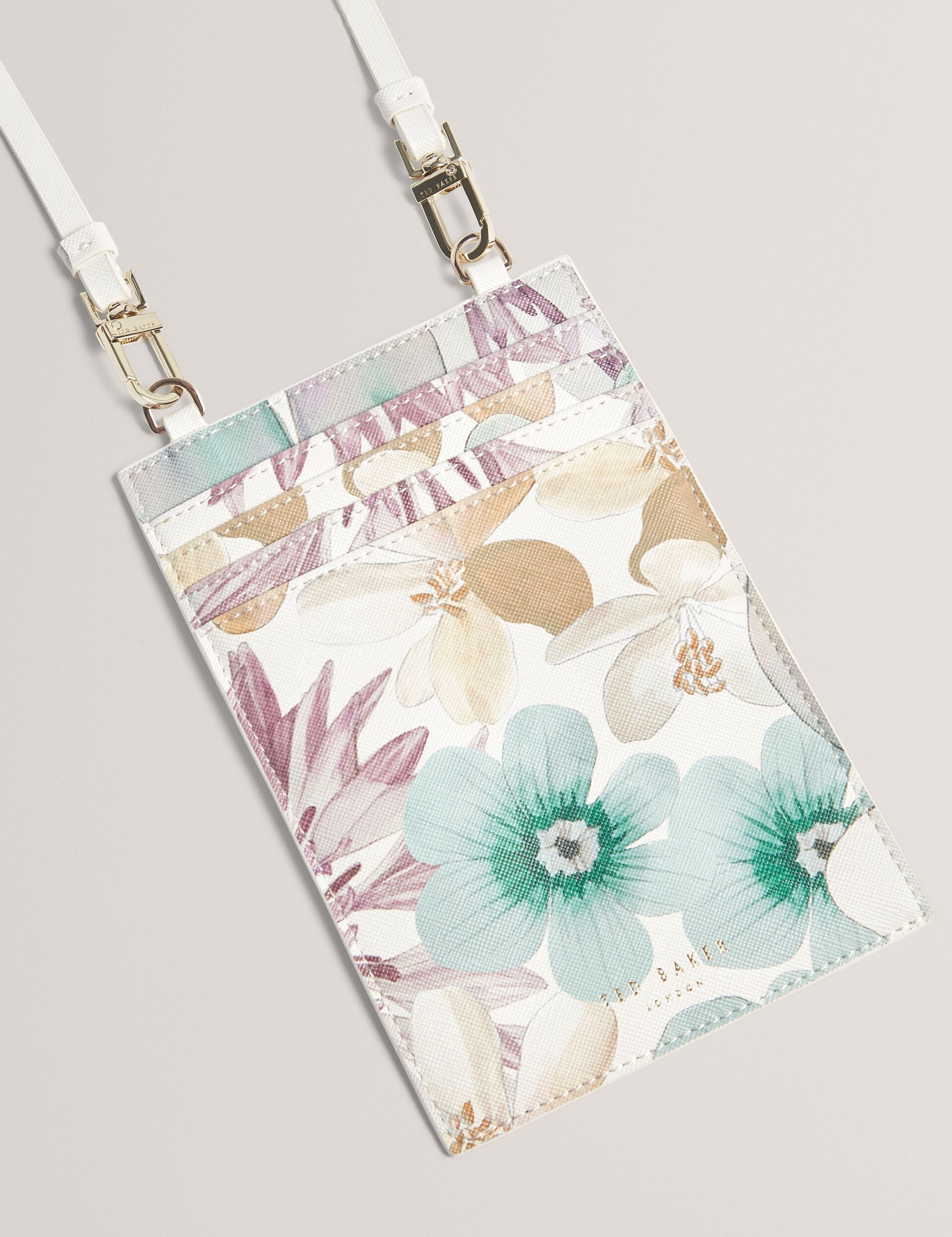 Wherever you're heading, keep your phone and cards at the ready in the HALLISA pouch lanyard. Printed with an elegant pastel floral design, this holder features a clear phone window and card slots on the reverse.