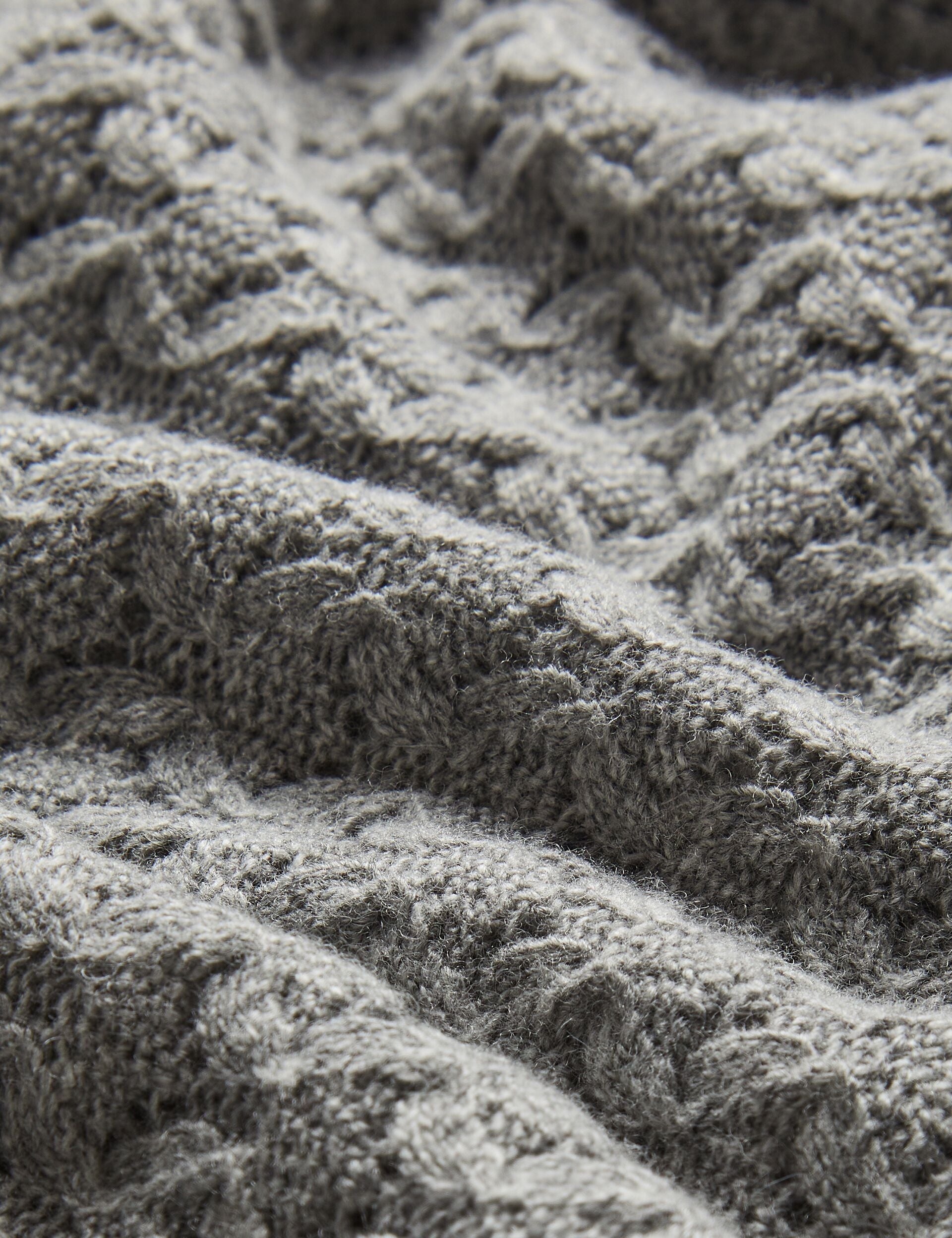Hauptmaterial: 31 % Viskose, 23 % Wolle, 22 % Polyamid, 19 % Baumwolle, 5 % Kaschmir; Besatz: 73 % Polyester, 27 % Viskose