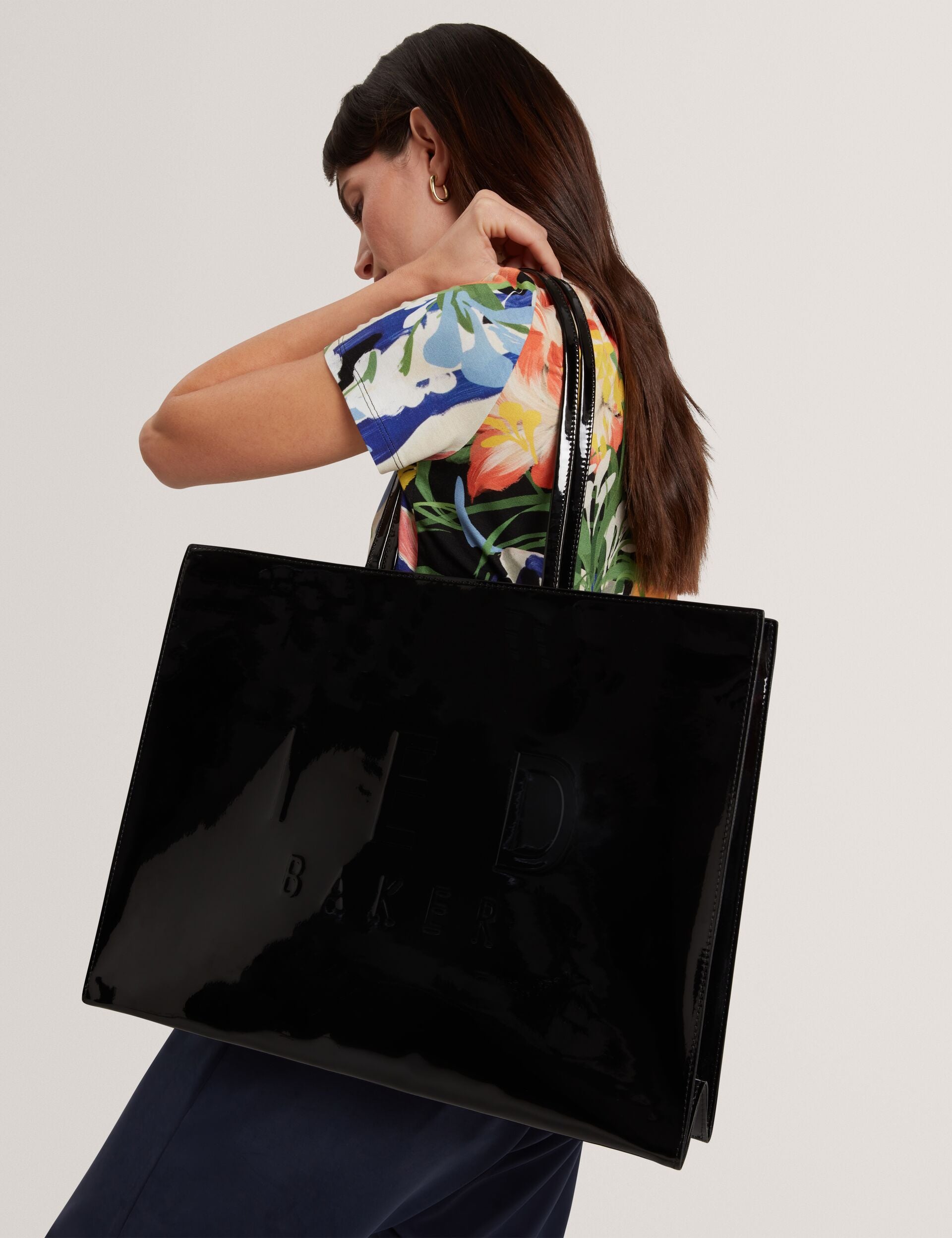 Unsere geräumigste Tote Bag präsentiert sich in neuem Gewand: ICONNA. Mit neuem, geprägtem Logo und abnehmbarem Schultergurt aus Webmaterial verleiht diese Tasche aus Lackleder-PU dem hektischen Arbeitsweg und Wochenendtrips eine elegante Note.