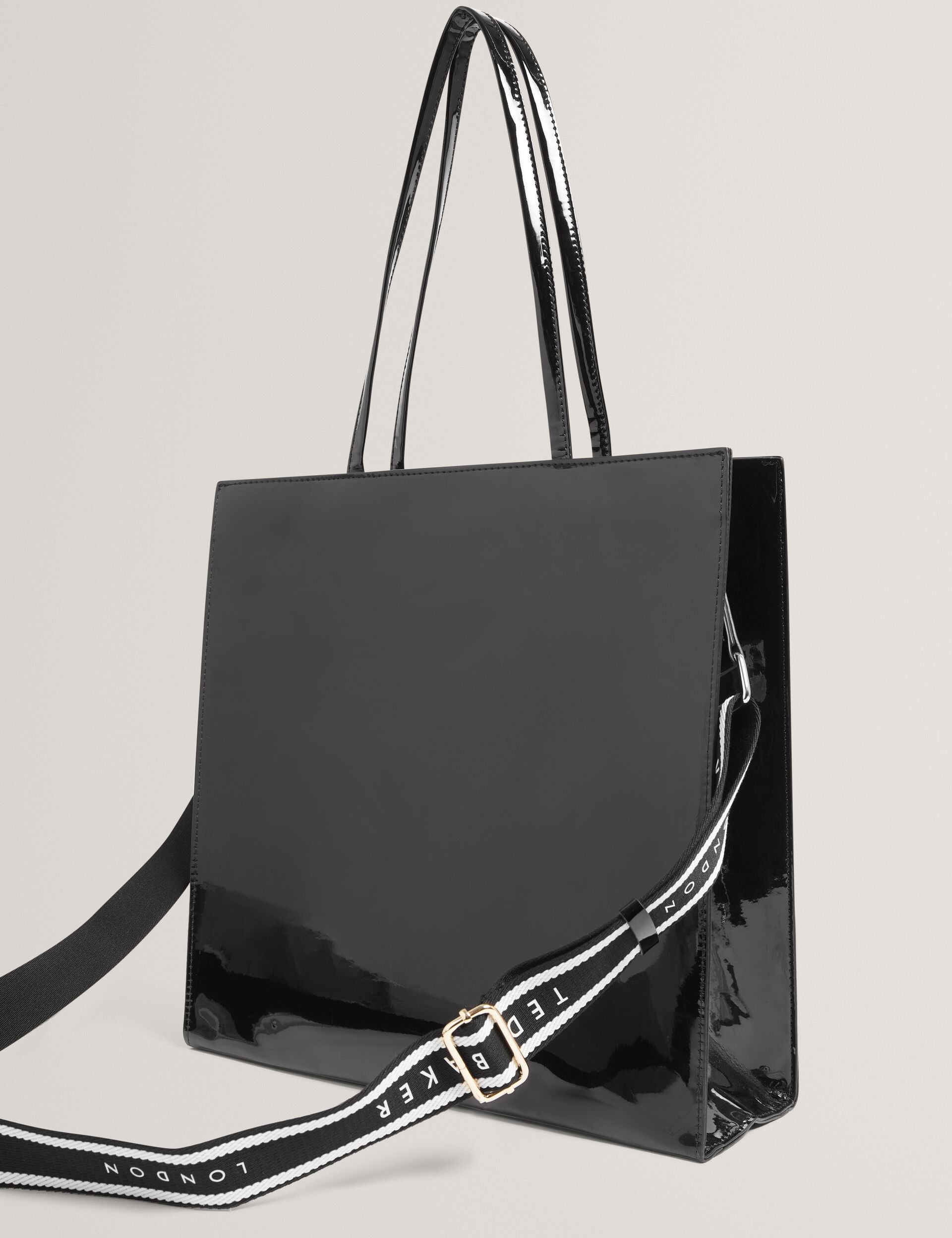 Eine vielseitigere, aber nicht weniger ikonische Tote Bag. Die ICONNY ist aus elegantem Lacklederimitat gefertigt und mit einem aktualisierten, geprägten Logo auf der Vorderseite versehen. Zusätzlich haben wir unseren charakteristischen Schultergurt aus Webmaterial angebracht, sodass Sie diese große Tasche überallhin mitnehmen können.