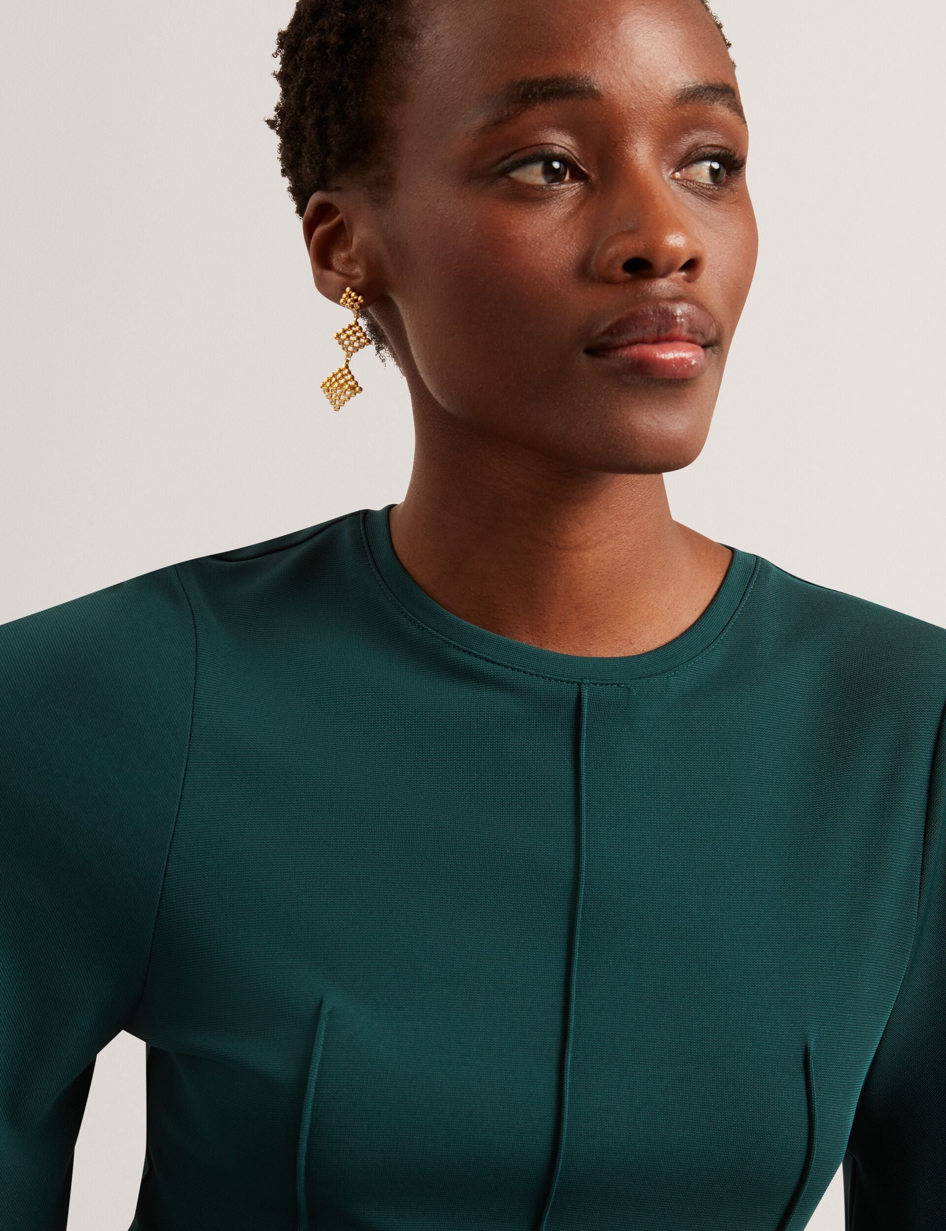 - Raised seam detail on bodice