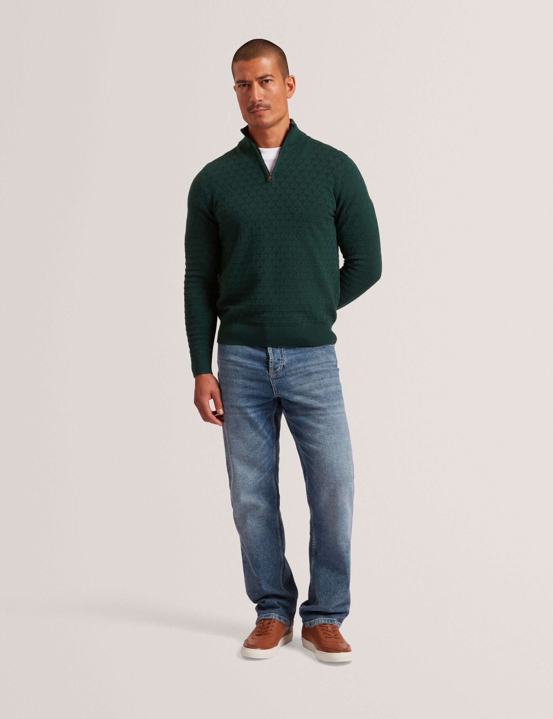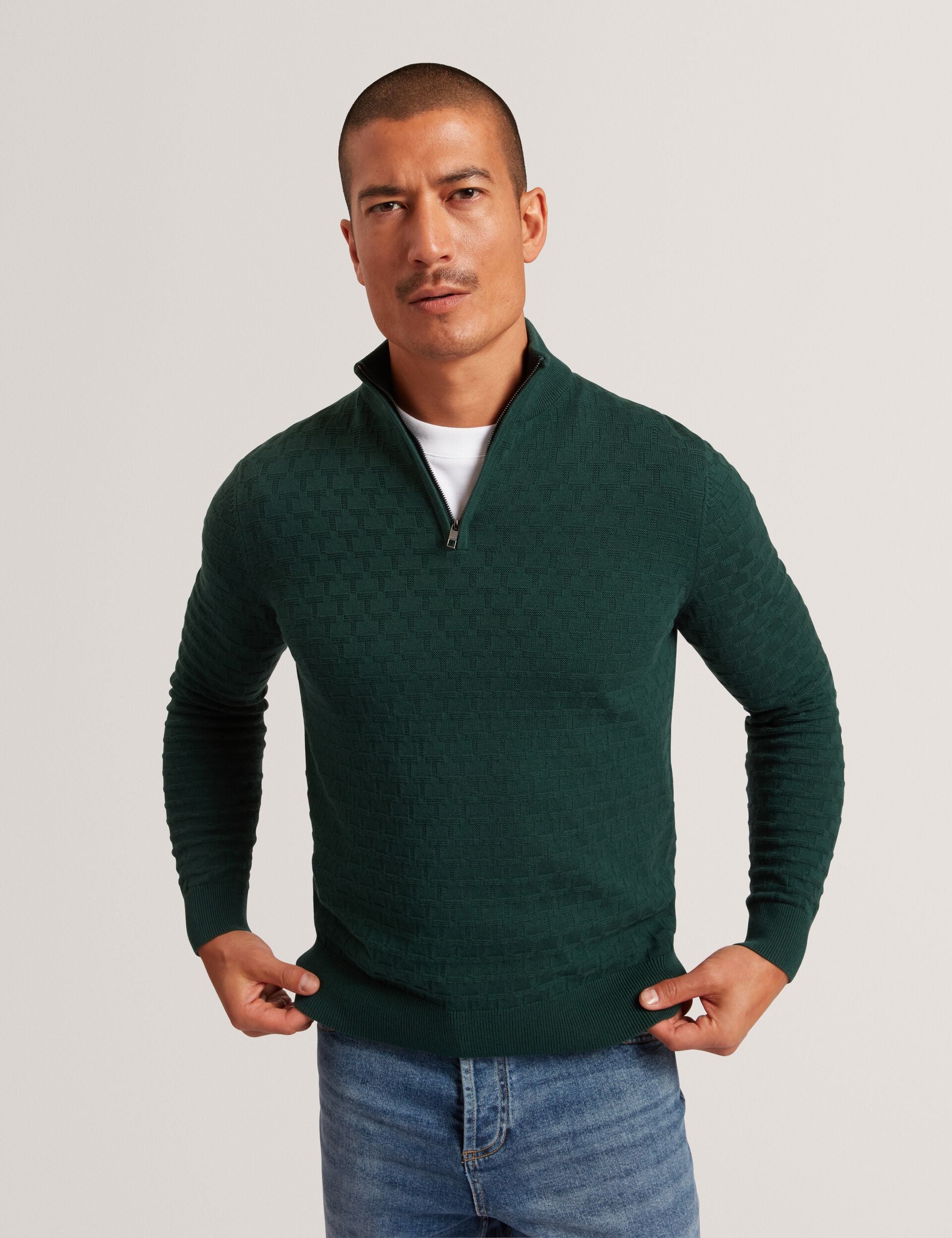 - Chan ist 1,84 m groß und trägt Dunkelgrün in Größe 3 von Ted.