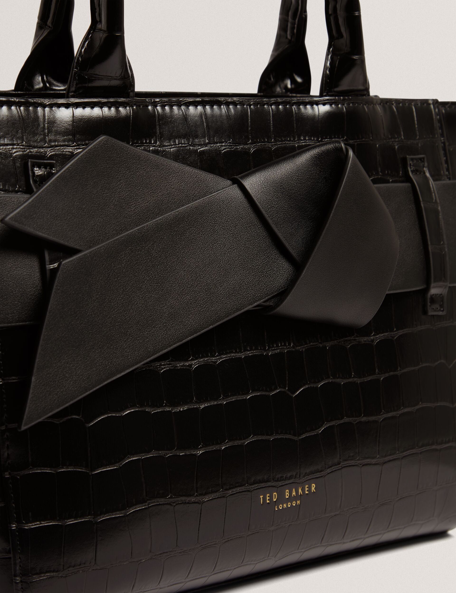 JJOSIA is the classy little tote bag that can do it all. A glossy croc texture outer is wrapped with an oversized bow trim, complete with a removable crossbody strap that takes it from daytime to date night.