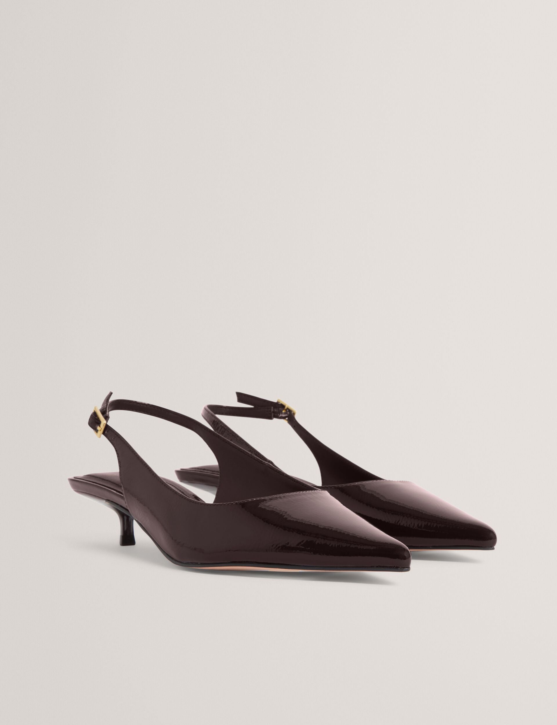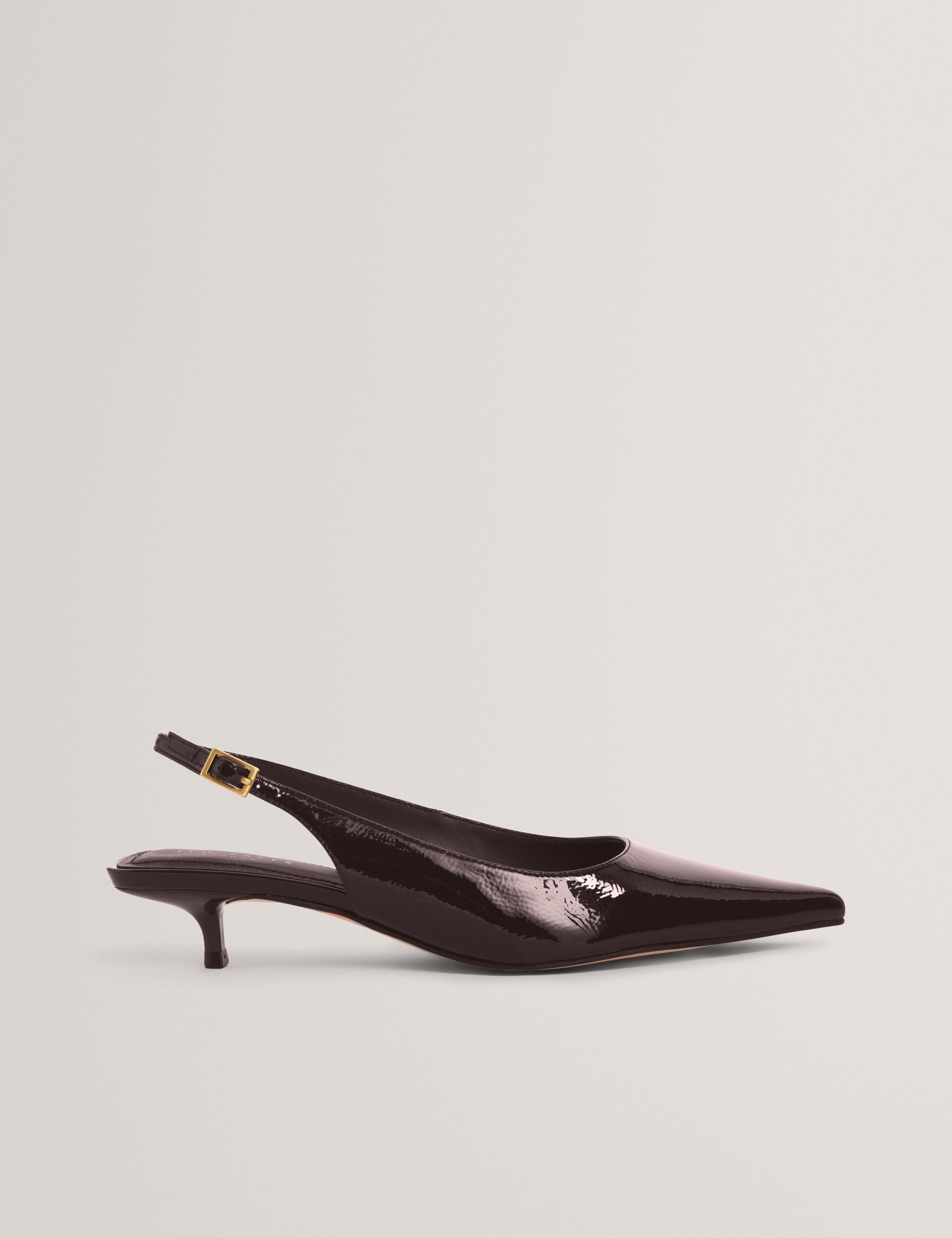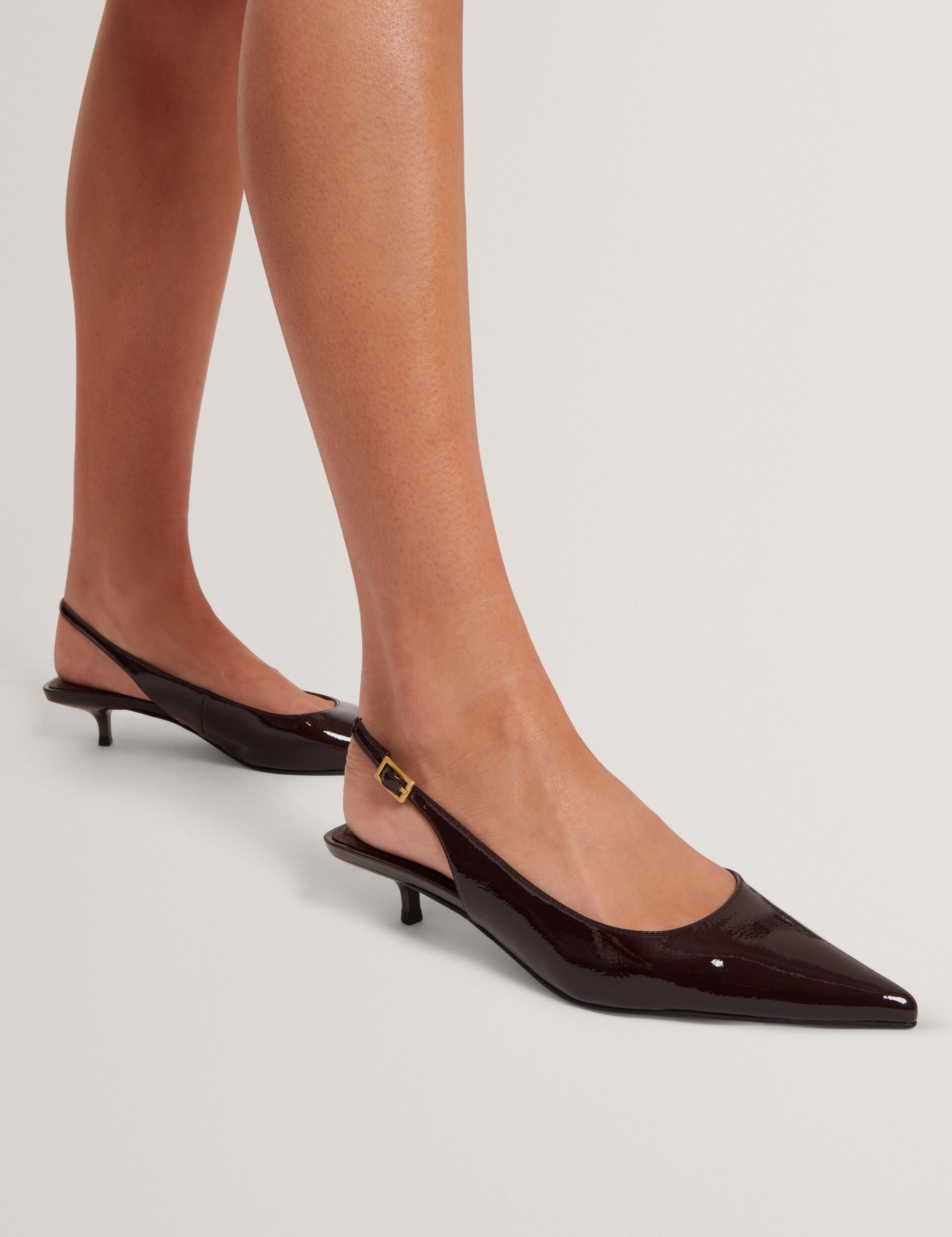 Throw on these KITIY kitten heel shoes to instantly elevate outfits day and night. These pointed toe pumps are crafted from a supple patent leather and slip on with a chic slingback strap.