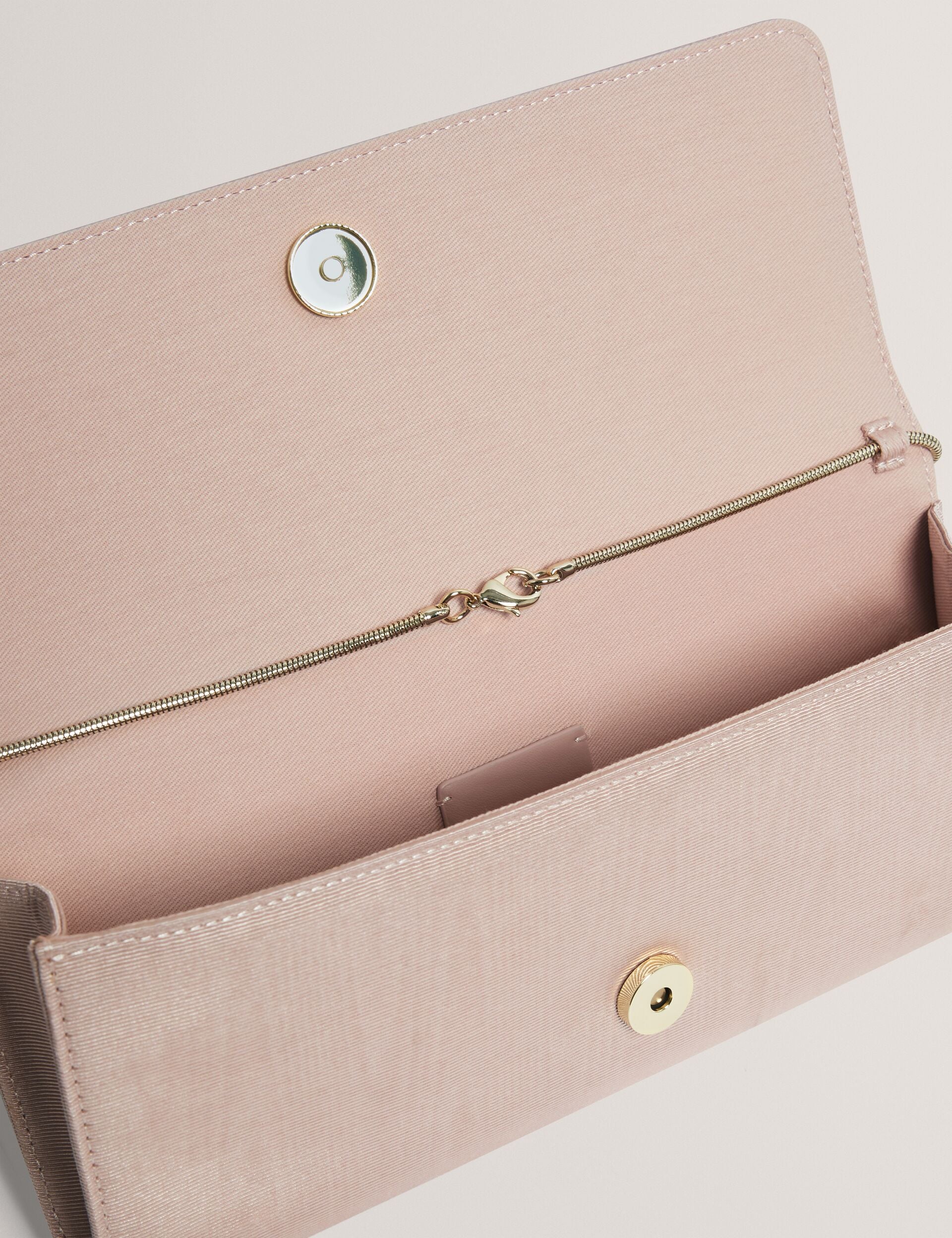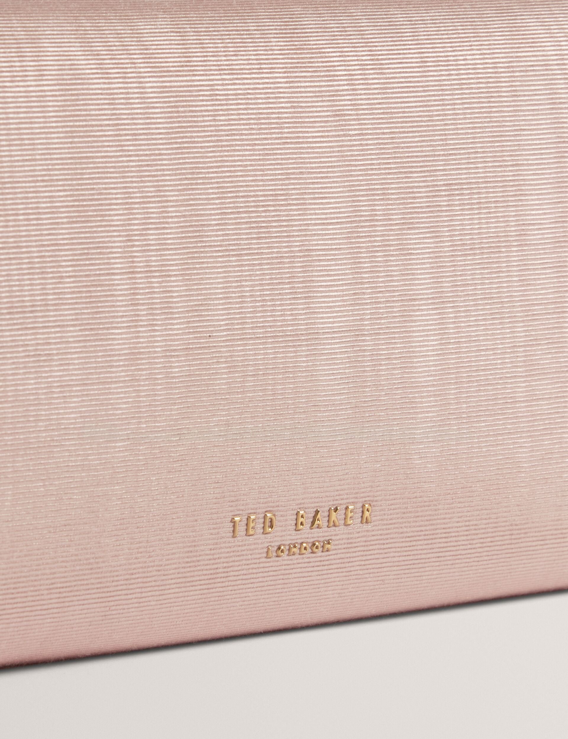 MALIISA is the clutch bag of the season, marrying the delicate shimmer of moire fabric with the modern feel of a structured baguette shape. Complete with a snake chain shoulder strap, it brings easy elegance to wedding invites and date nights.