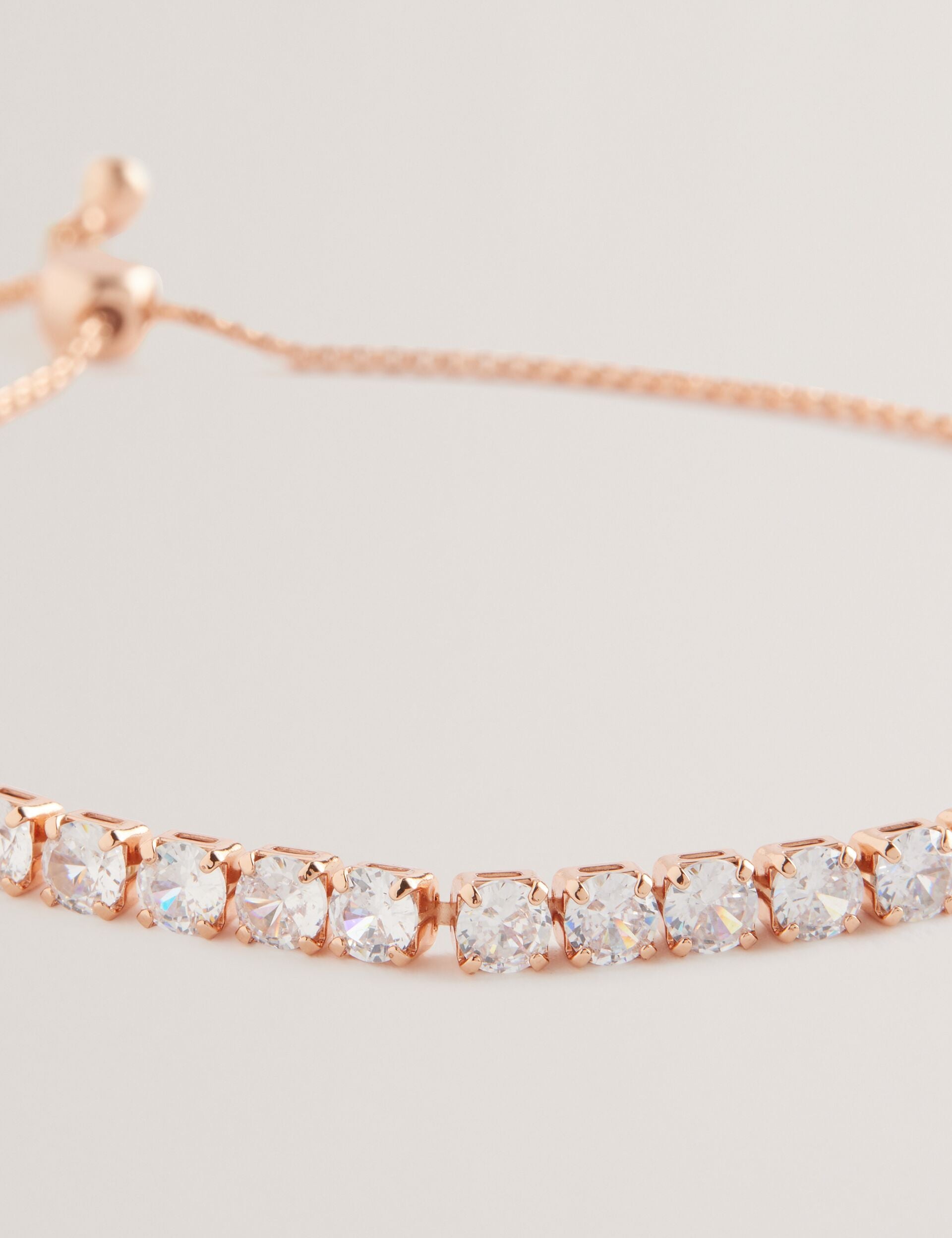 Add effortless sparkle with MELRAH. Crafted in a tennis-style, this bracelet features a row of dazzling clear European crystals, finished with rose gold-tone plating. Thanks to a subtly branded sliding adjuster, you can personalise the fit to you.