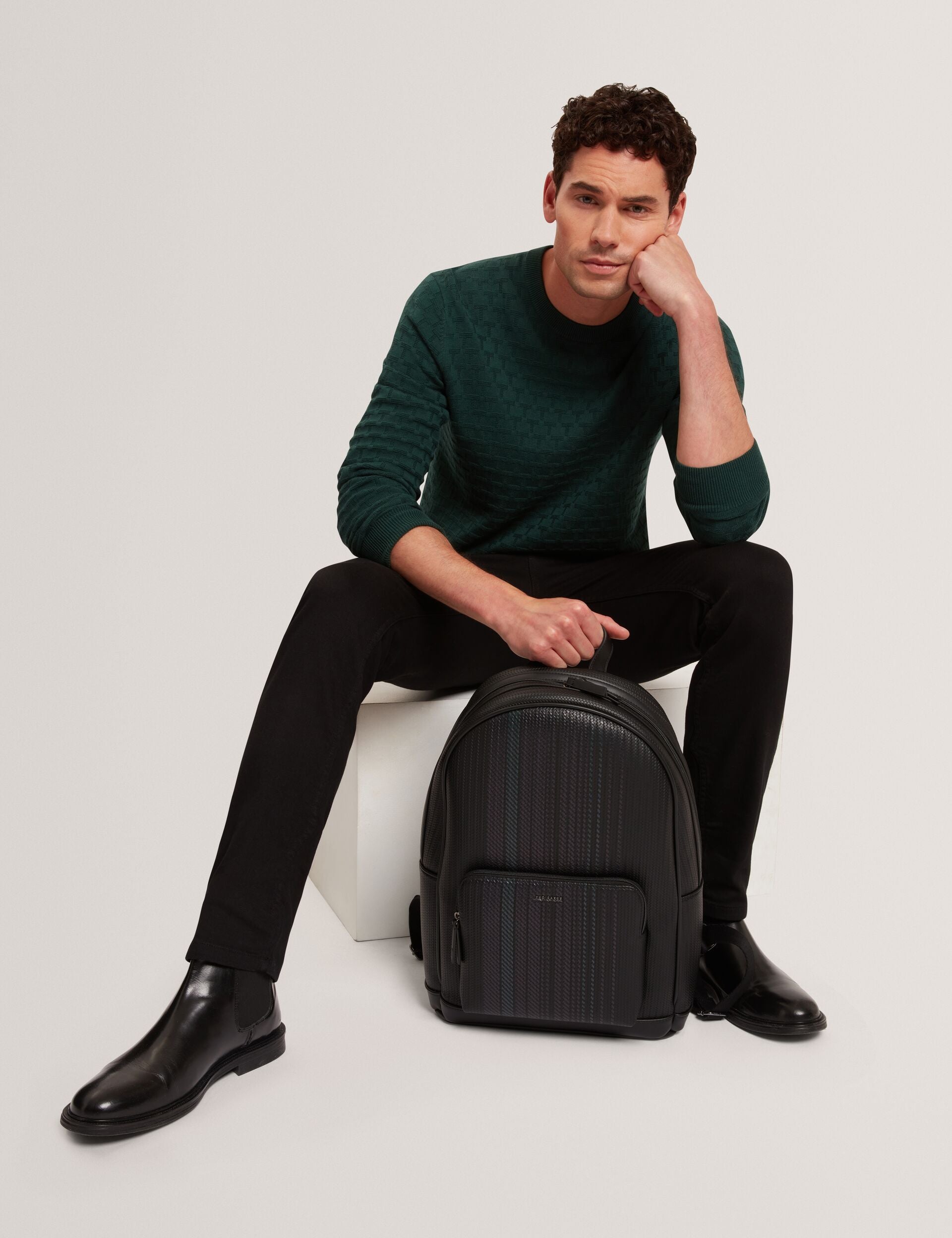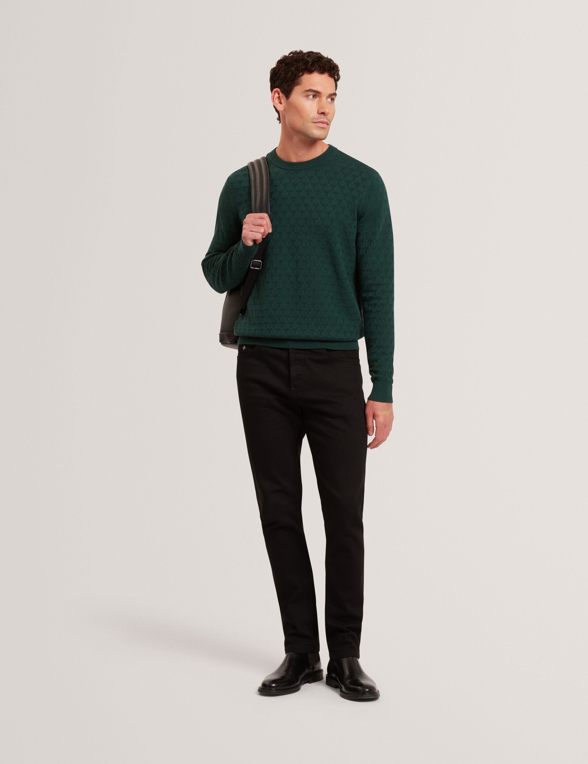 Branded Texture Crew Neck Jumper