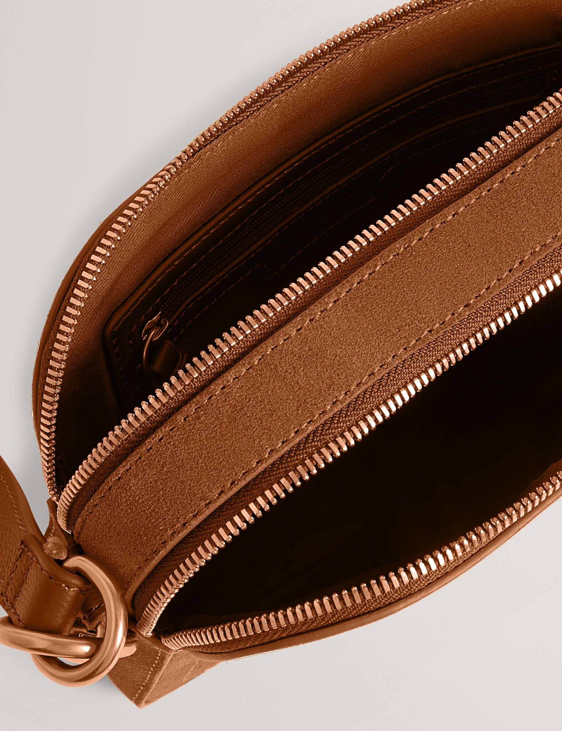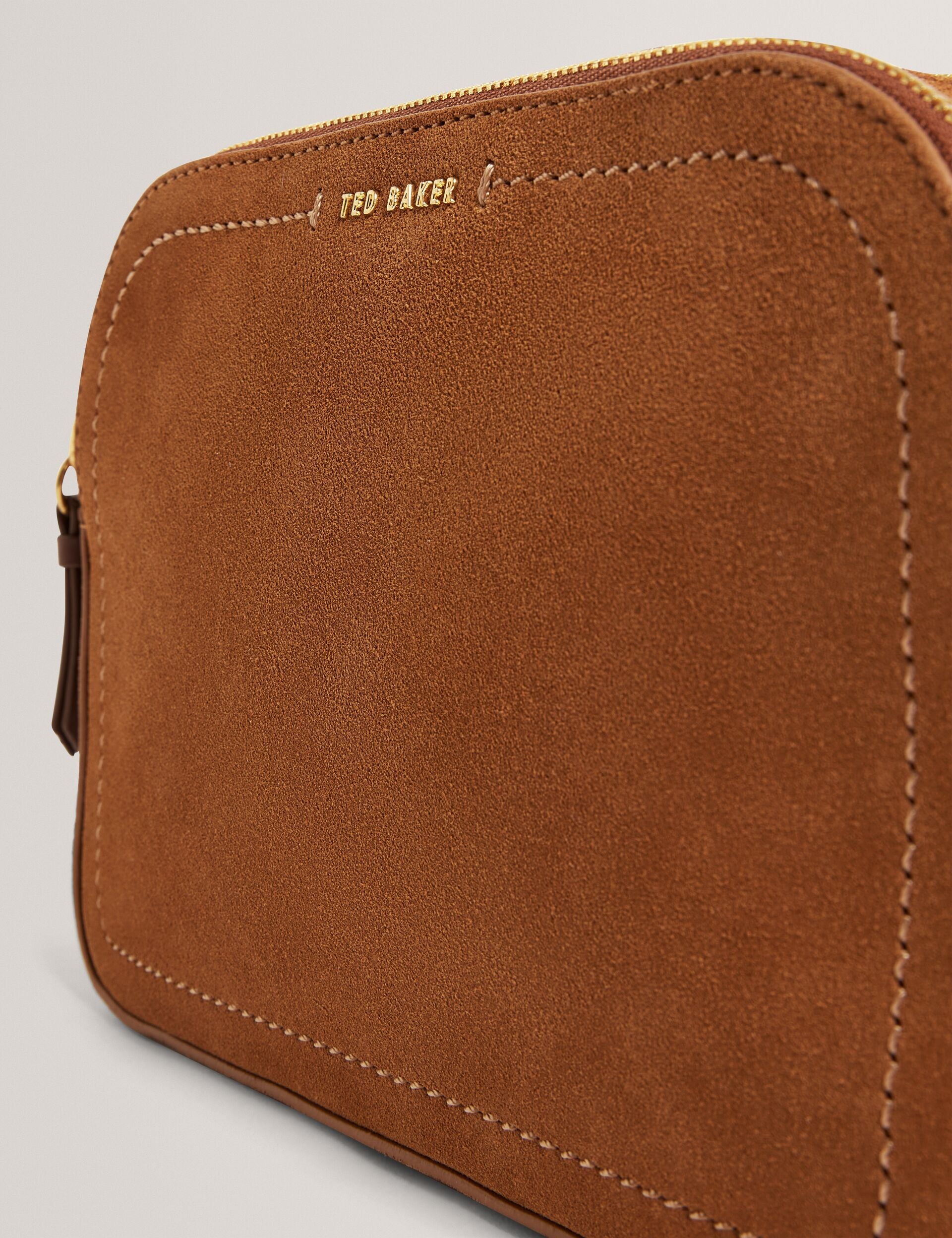 Throw on a little suede number when you're out and about with the SHAYANE camera bag. Crafted from brown suede leather with shiny gold-tone accents, this crossbody bag comes with changeable straps to give your style the versatility it deserves.