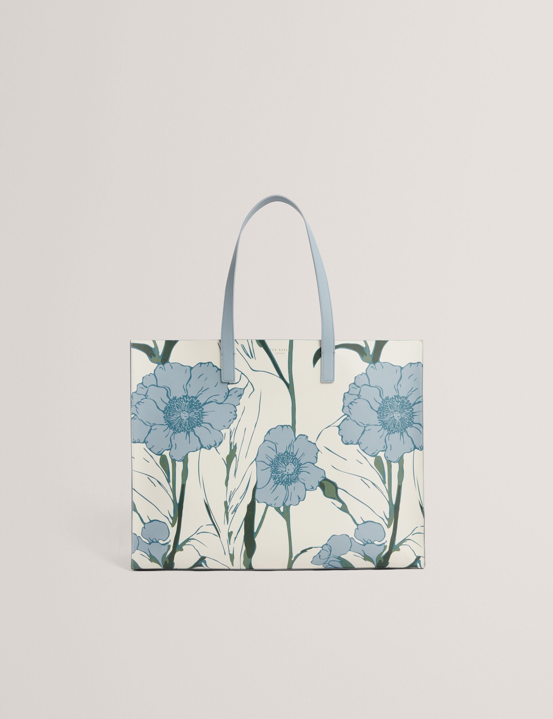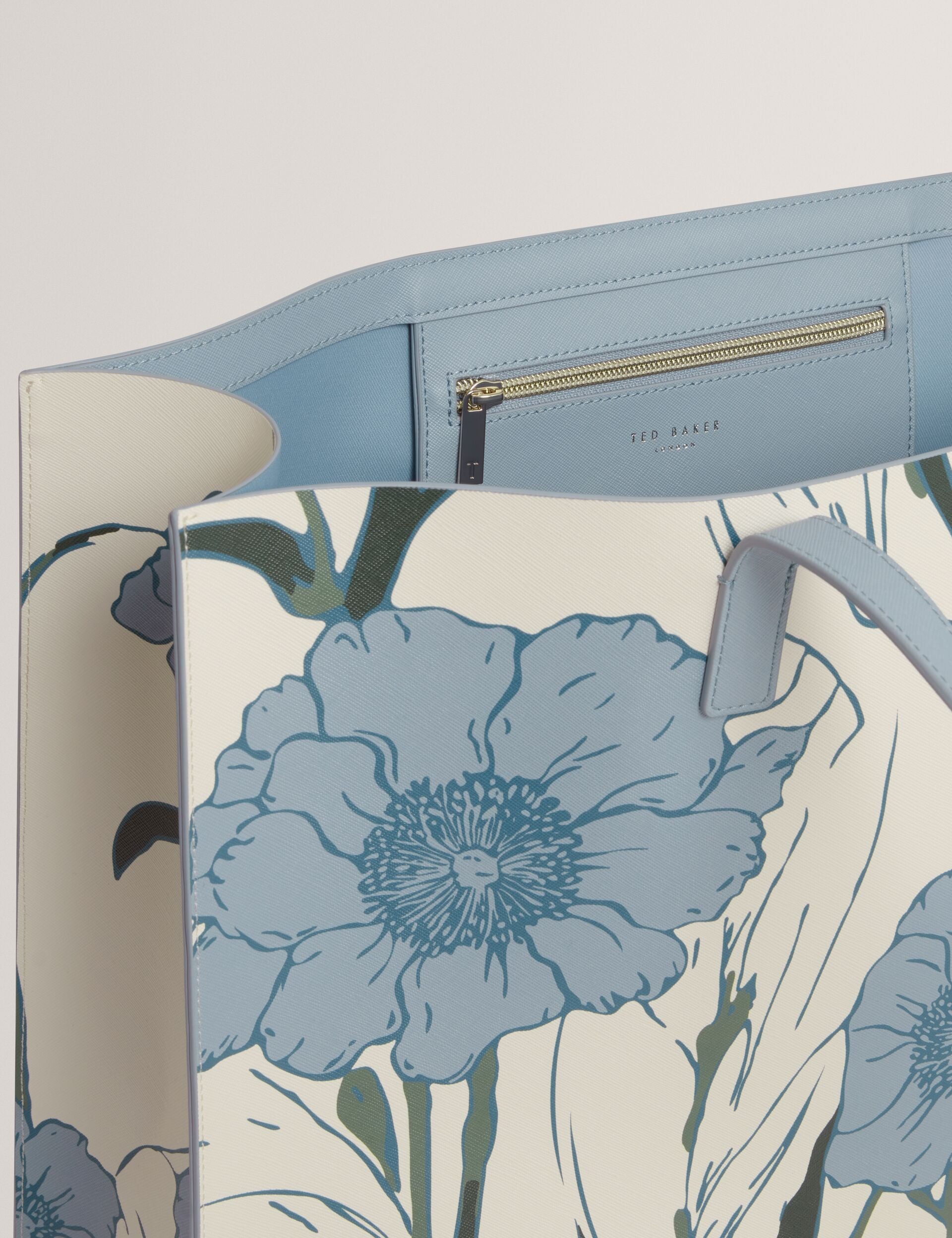 - Blue floral print detail