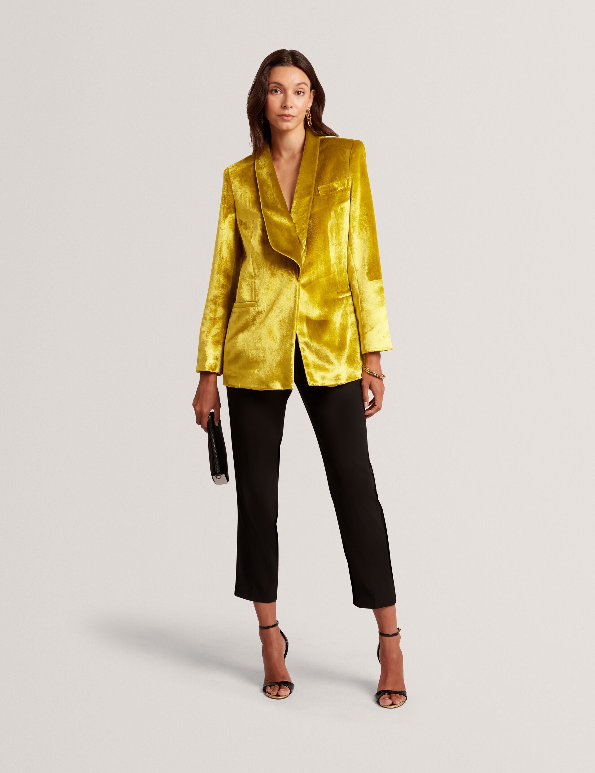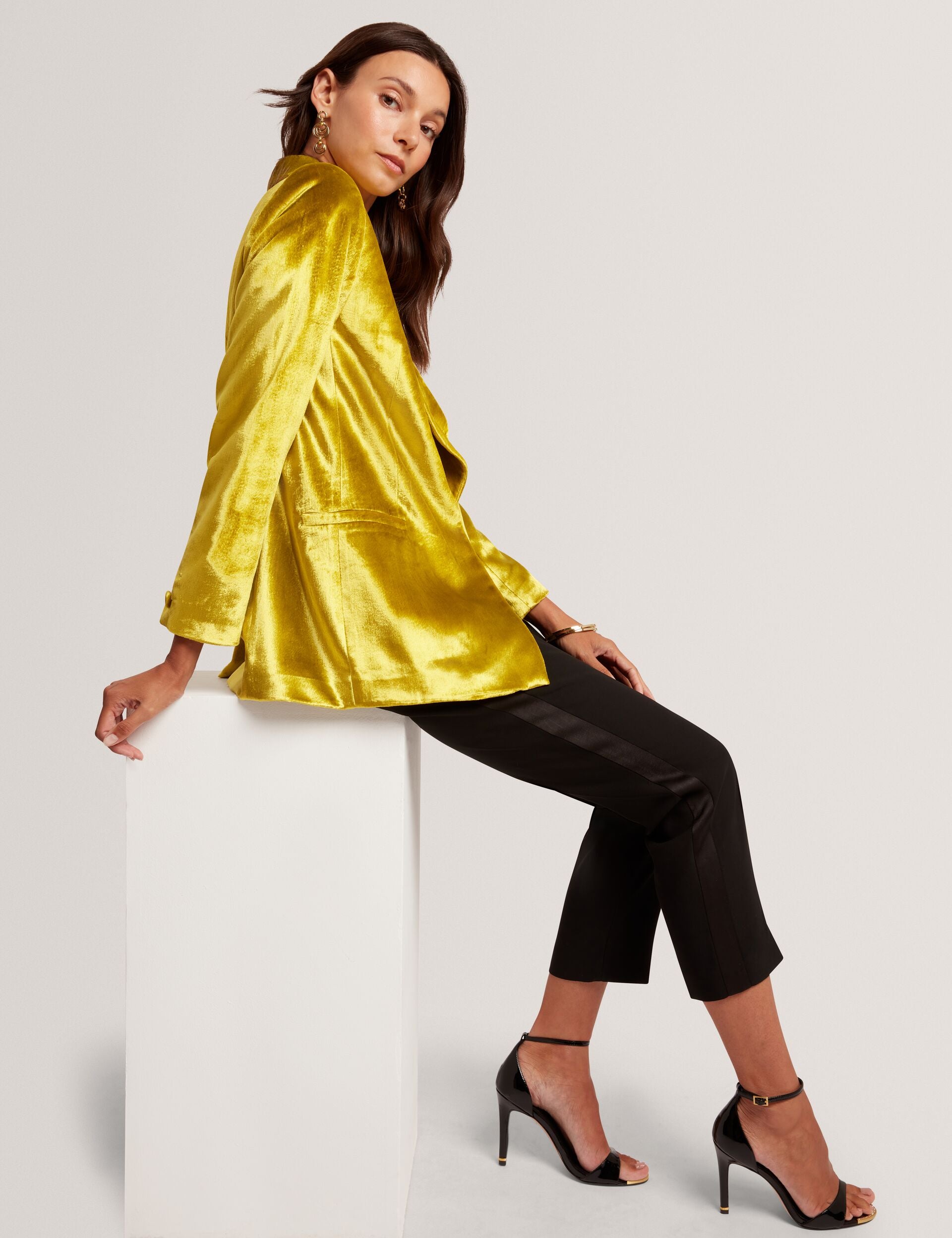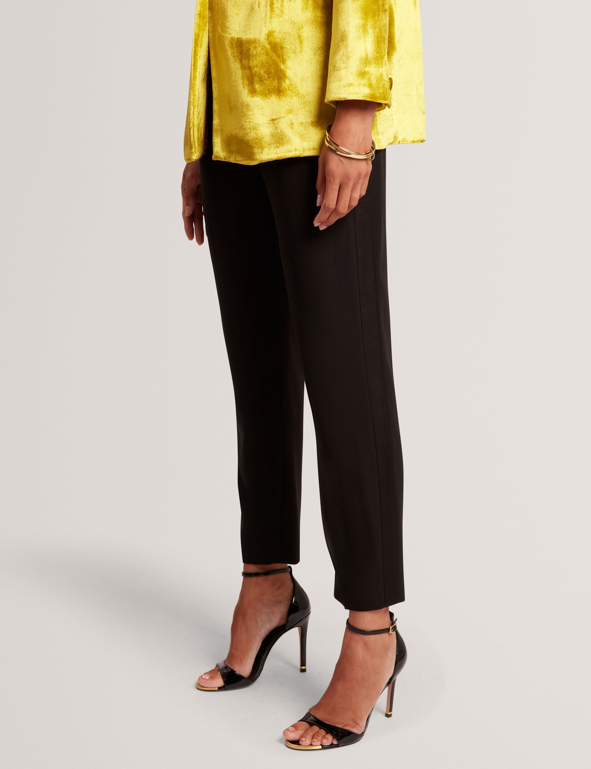 - Tuxedo-style trousers