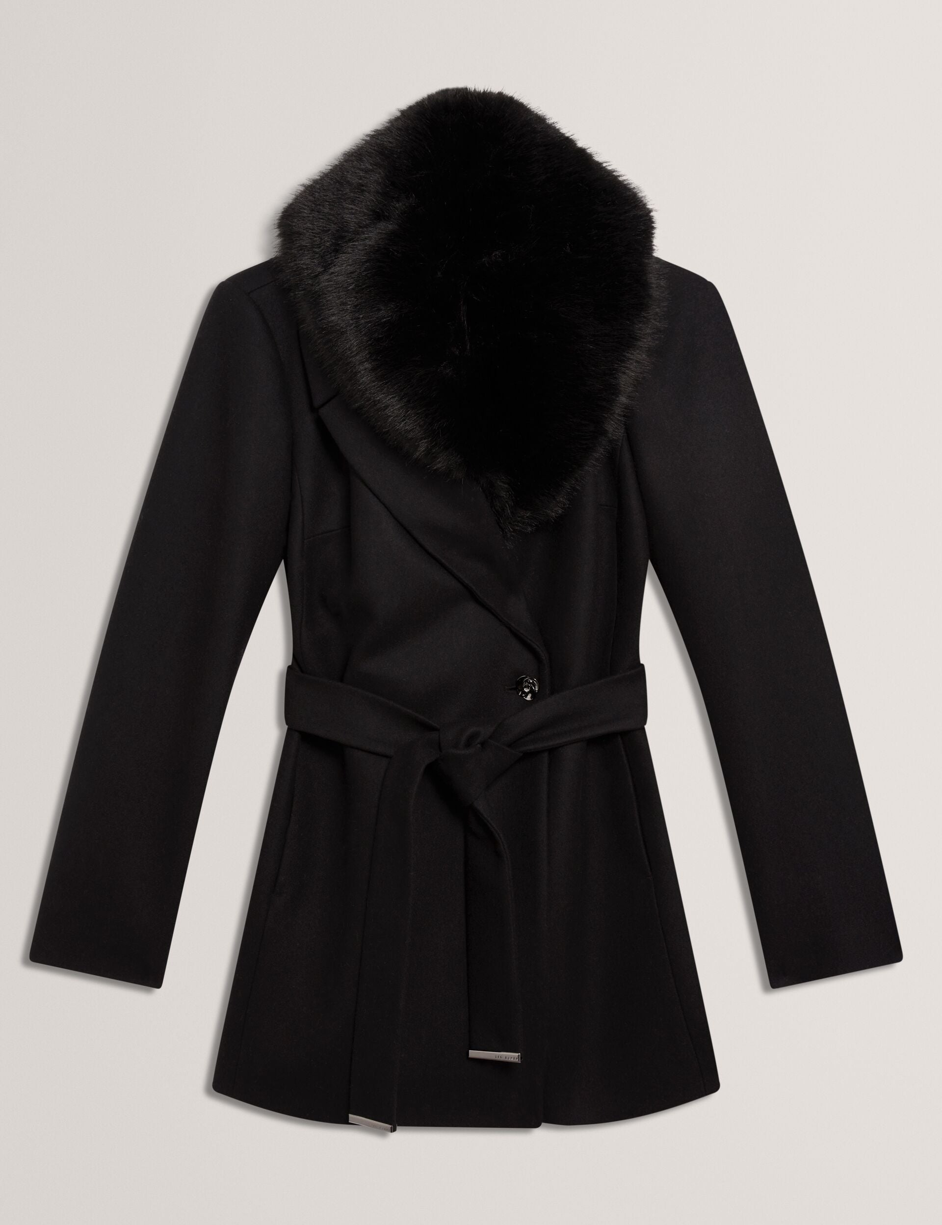 - Detachable faux fur collar