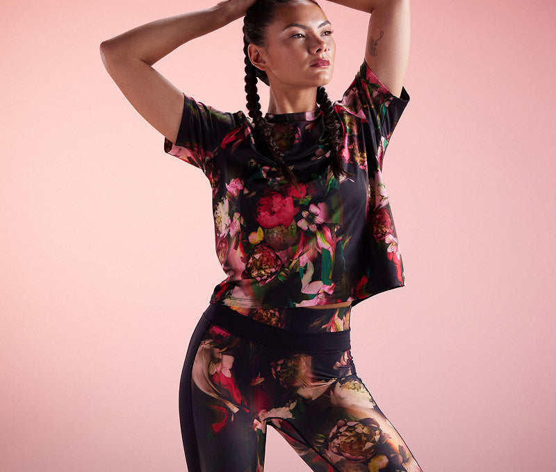 Straight from the Ted Baker archives, this dark peony print makes sweating it out look practically elegant.