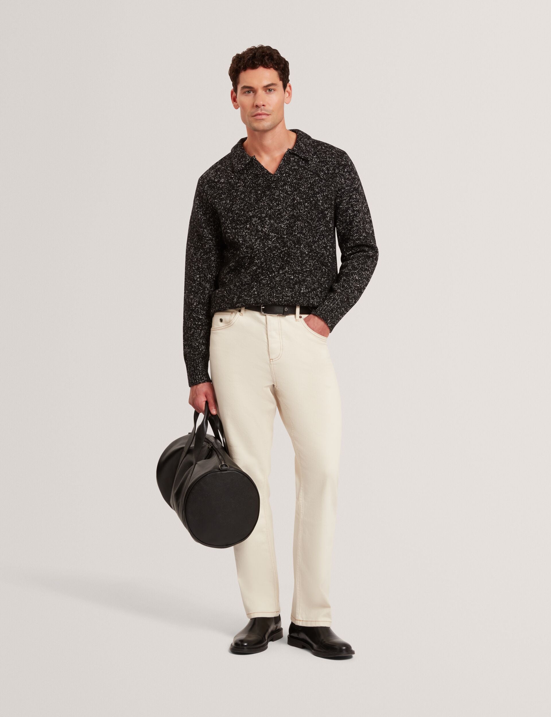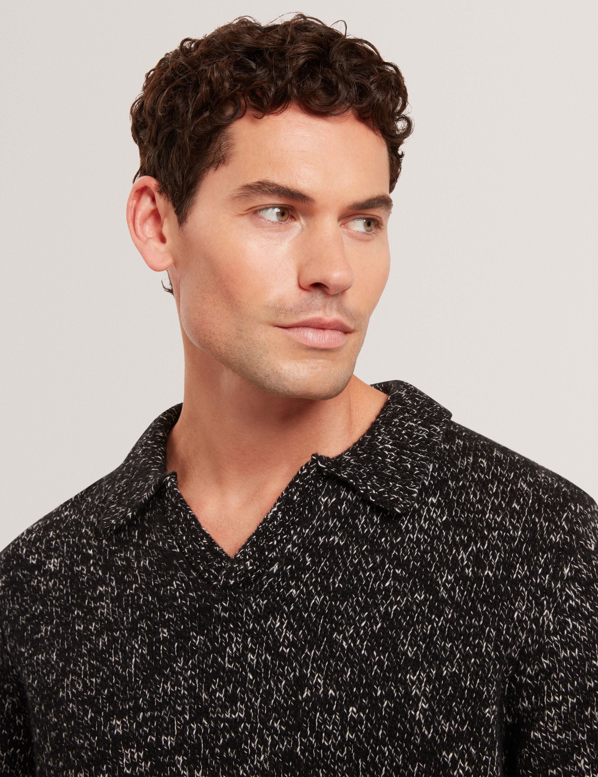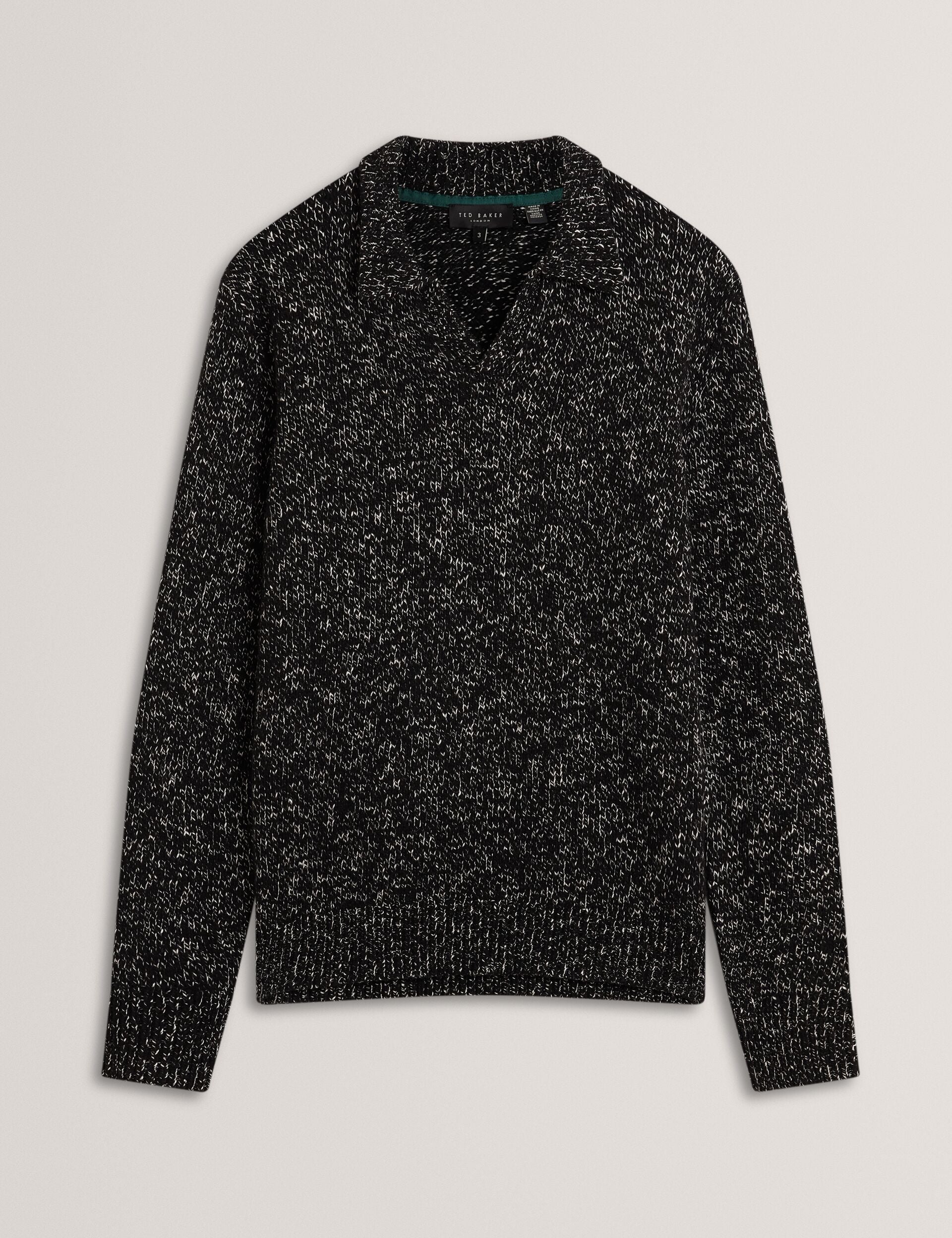 Melange Knit Long Sleeve Polo Shirt