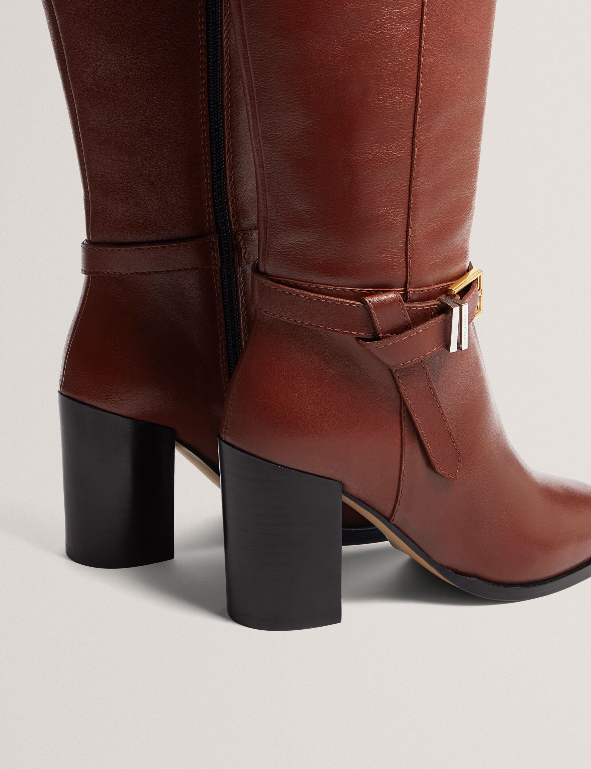 Saddle up in style with the CLOELLA equestrian-inspired knee-high boots. Crafted from 100% genuine leather, they feature a rounded toe, chunky block heel, and signature belt detail for a timeless, confident look.
