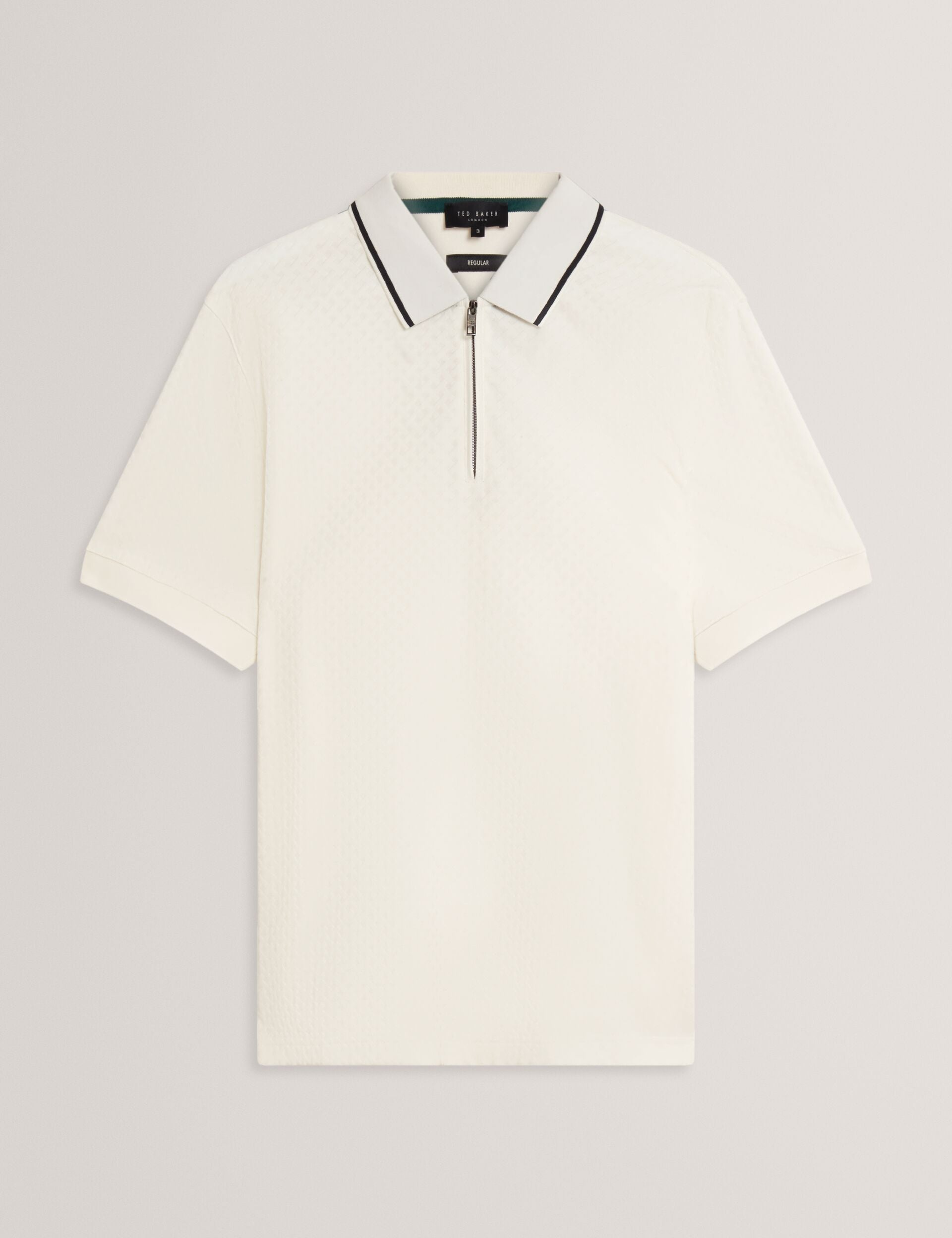T Texture Zip Neck Short Sleeve Polo