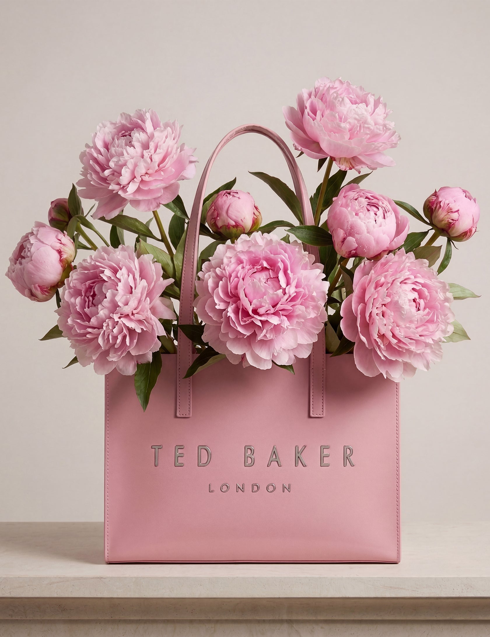 - Silver-tone hardware logo