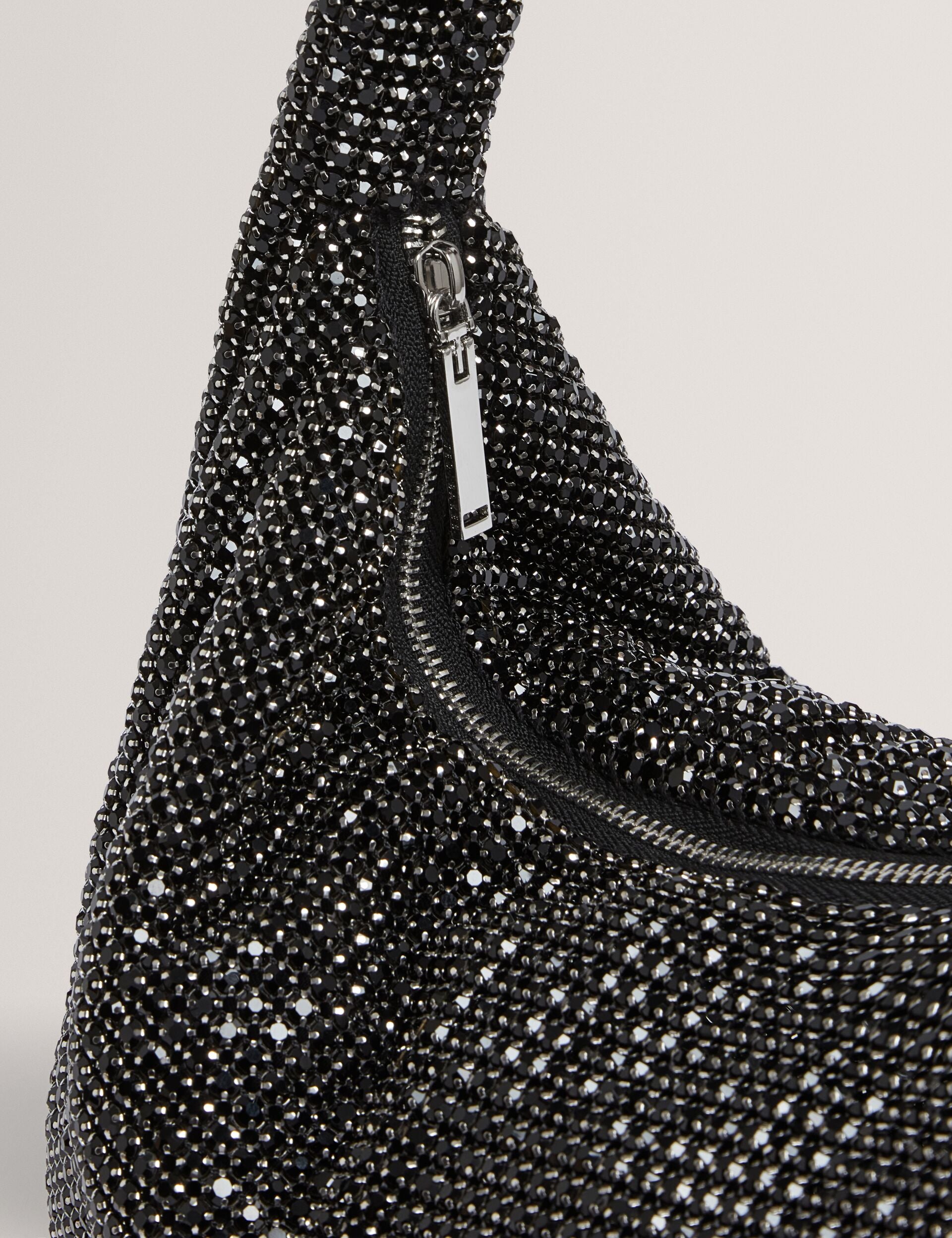 Effortlessly glam, the CRYSTTA shoulder bag turns heads with a cascade of diamantes and a relaxed hobo shape that brings cool-girl sparkle to any look. Slouchy, shimmery, and designed to make a statement.