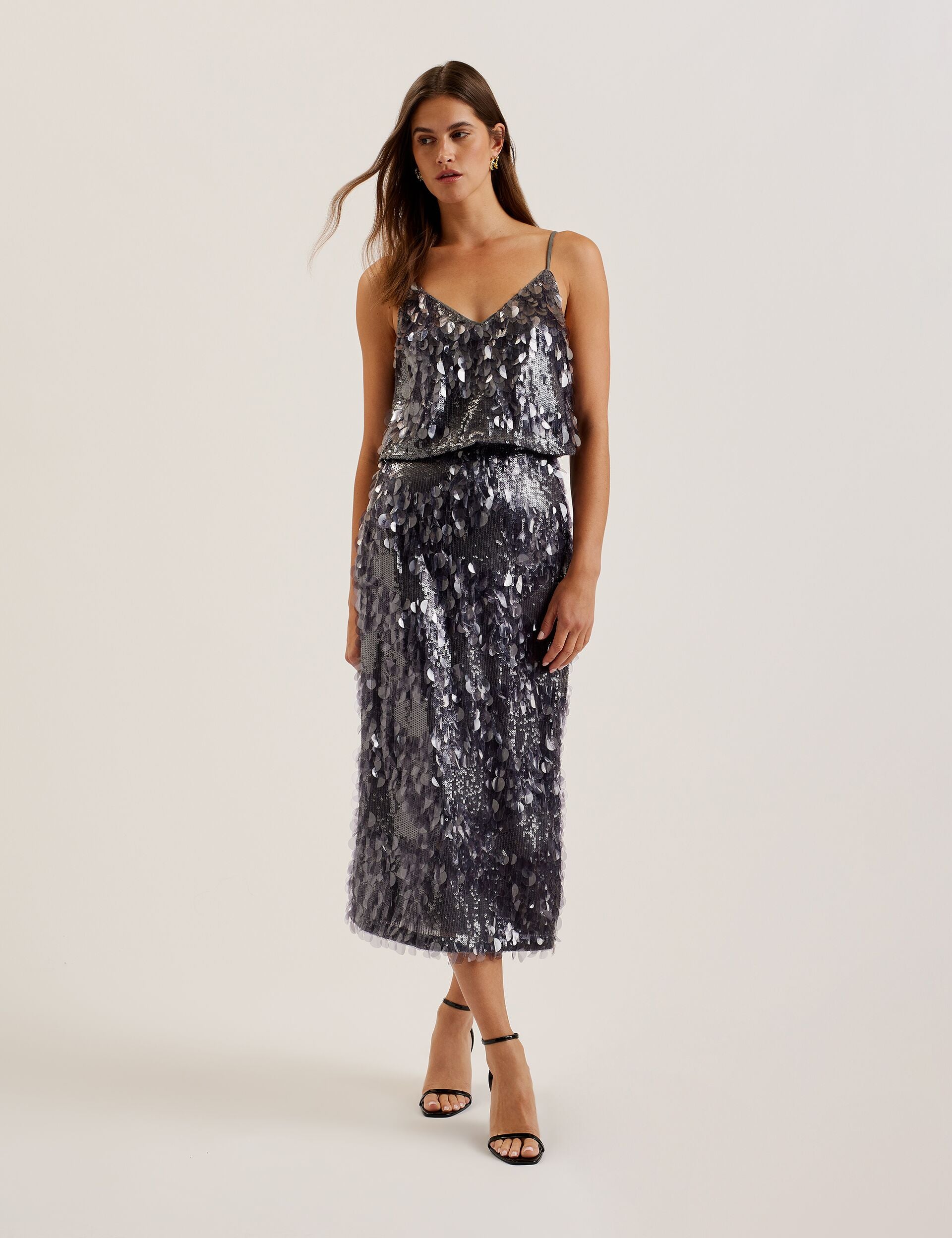 Shell: 100% Polyester; Sequins: 100% Polyester; Lining: 100% Polyester