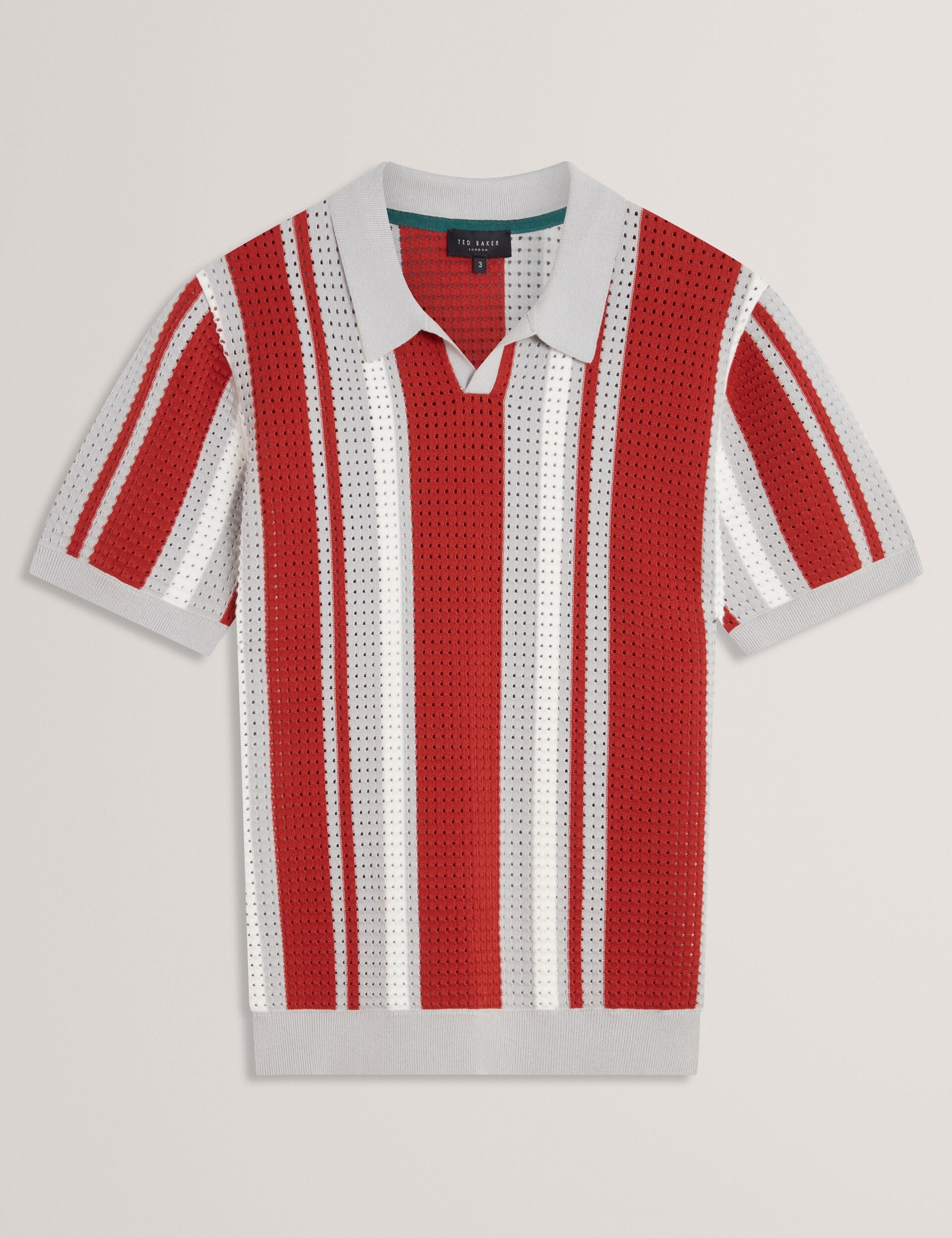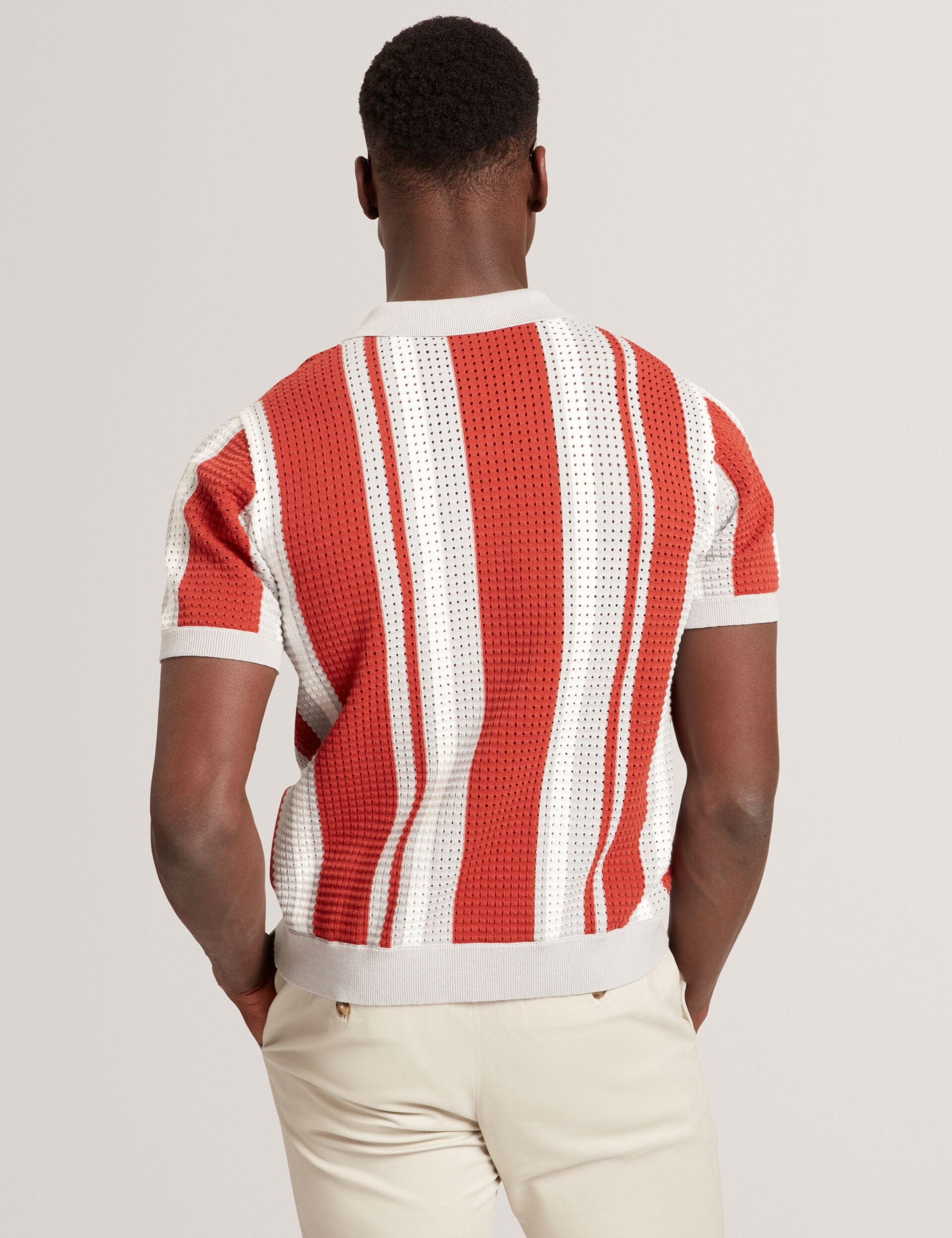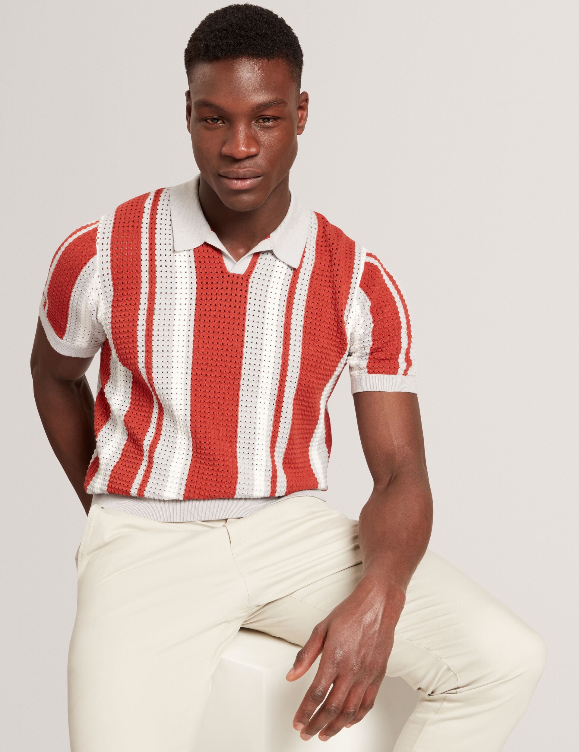 Striped Pointelle Knit Cotton Polo Shirt