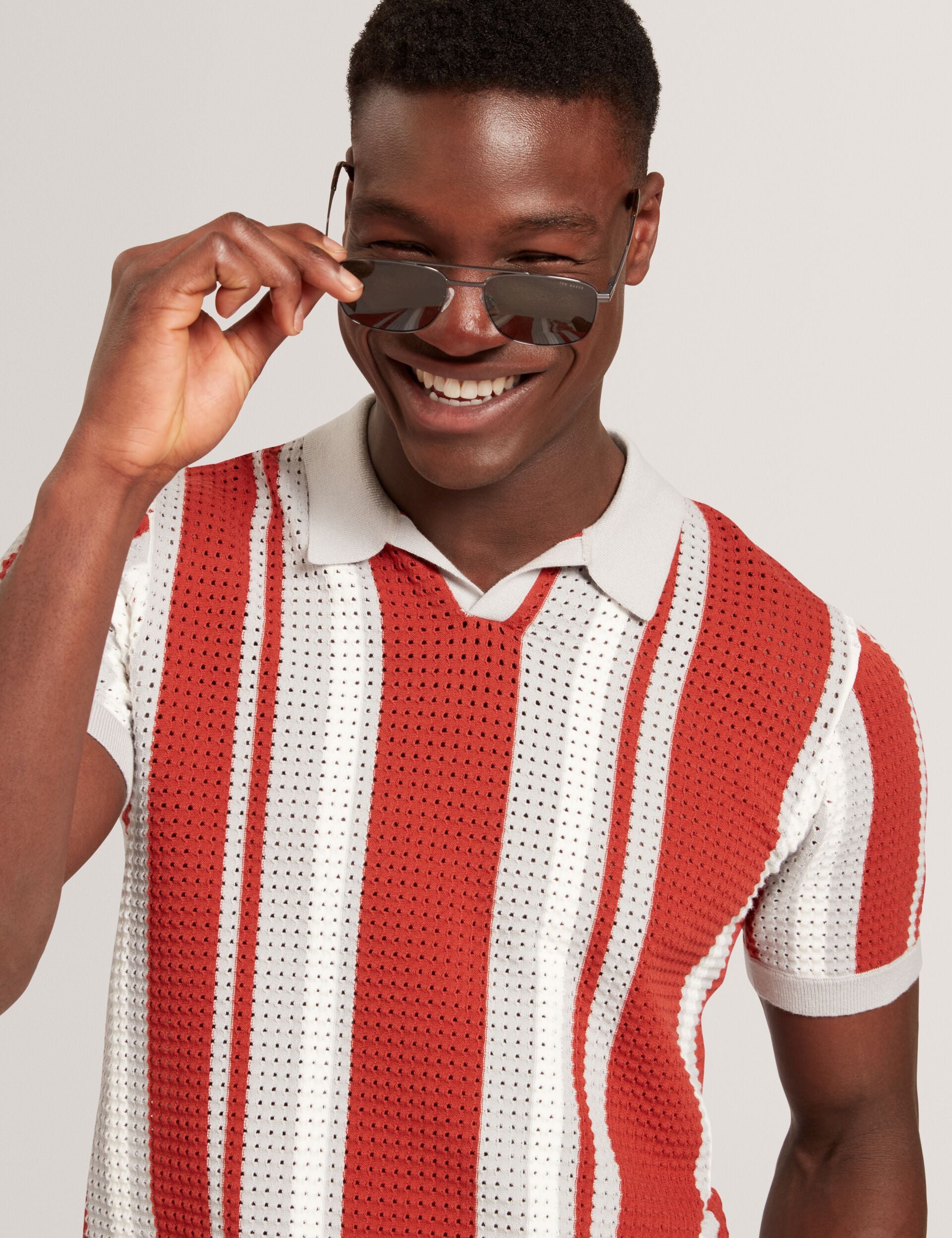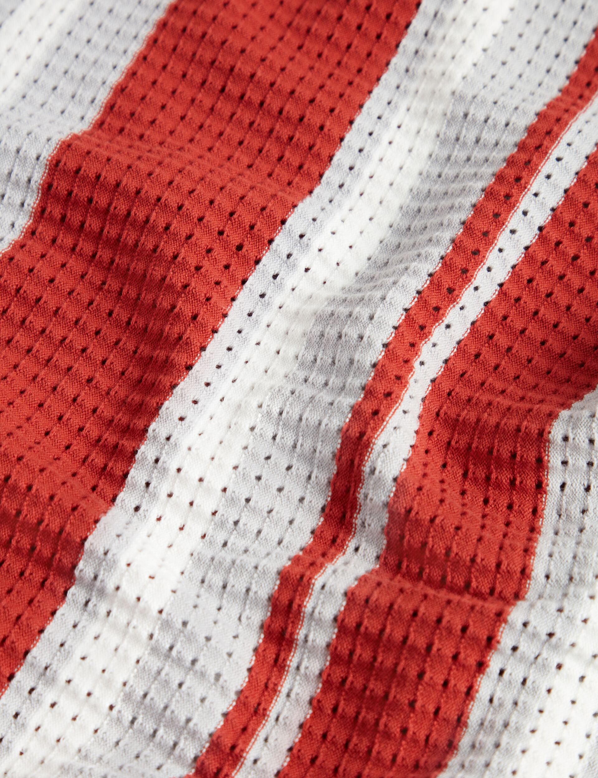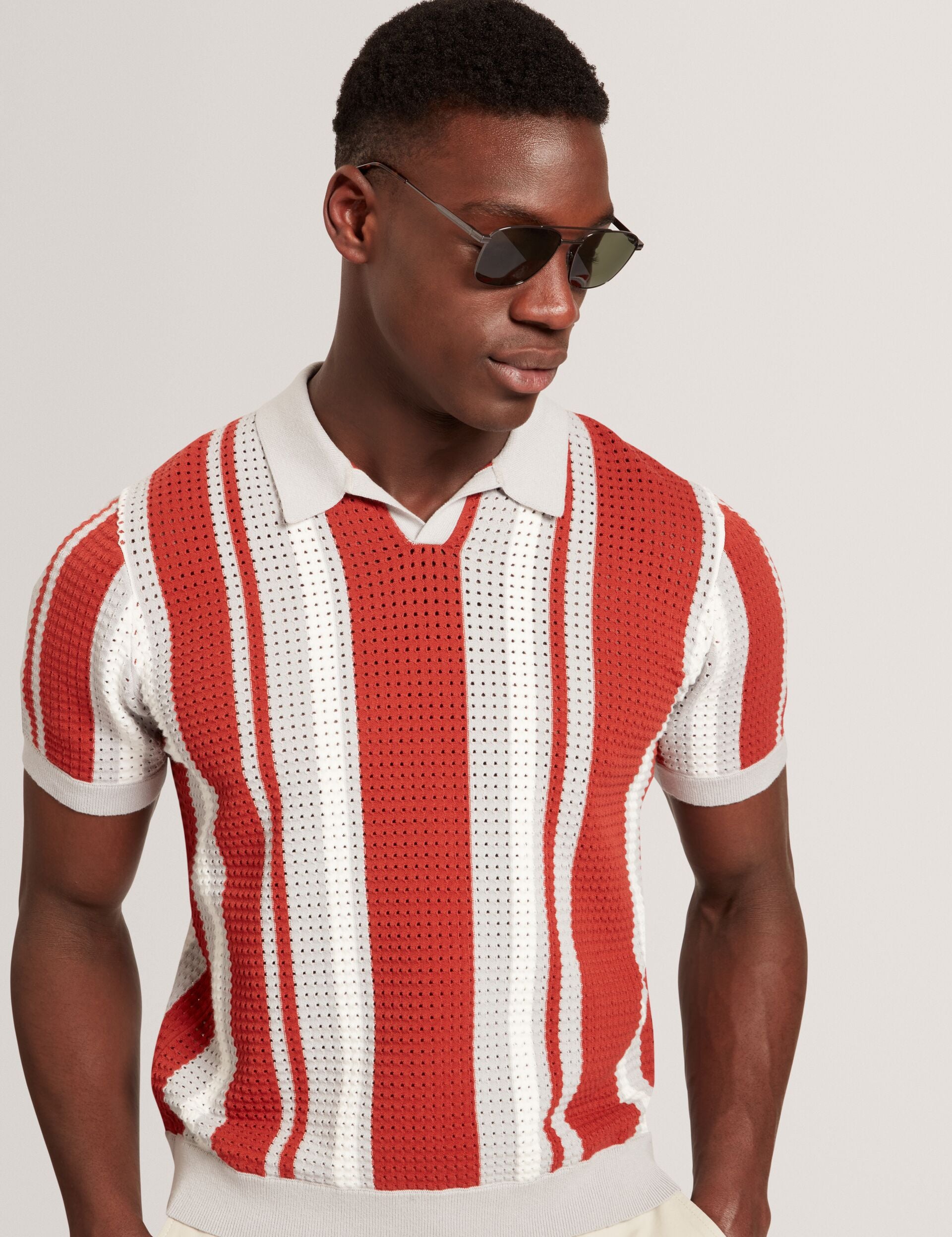 Striped Pointelle Knit Cotton Polo Shirt