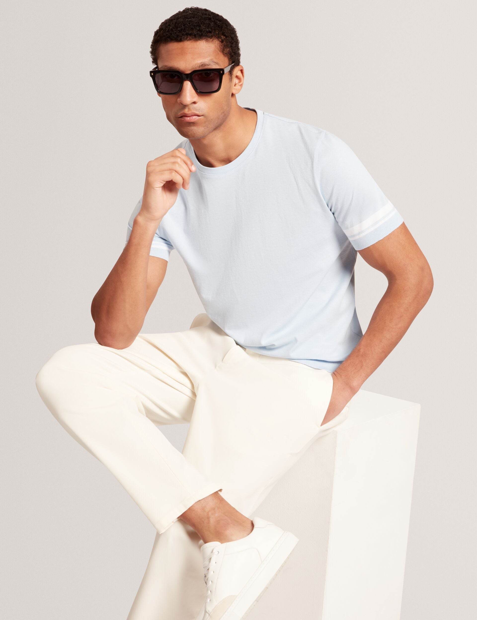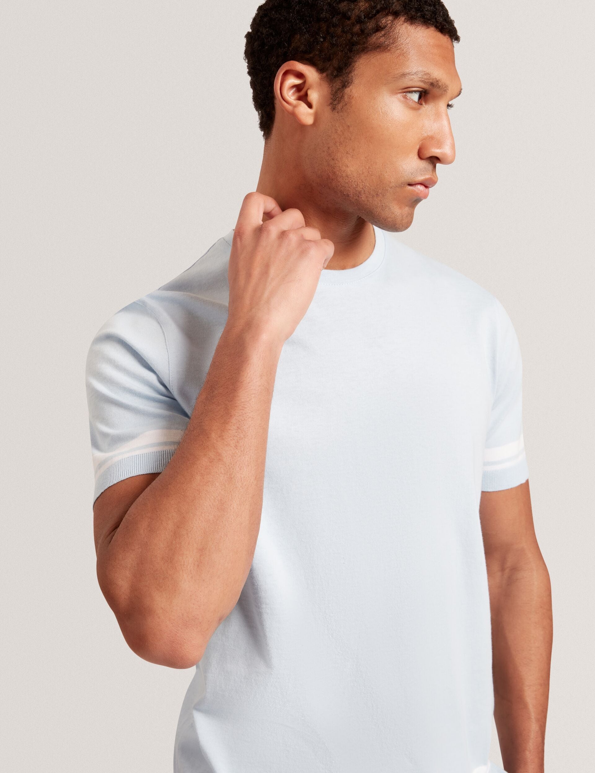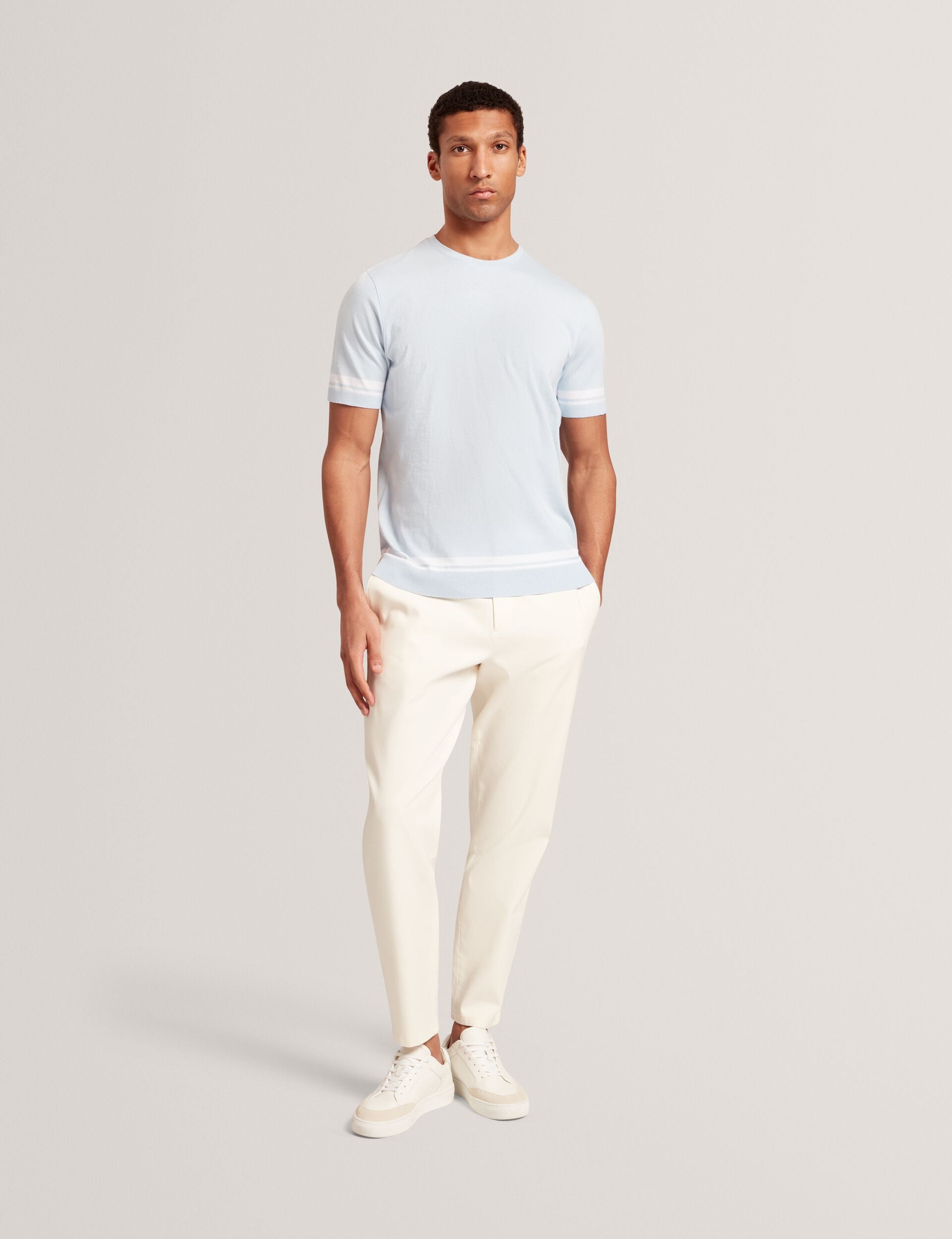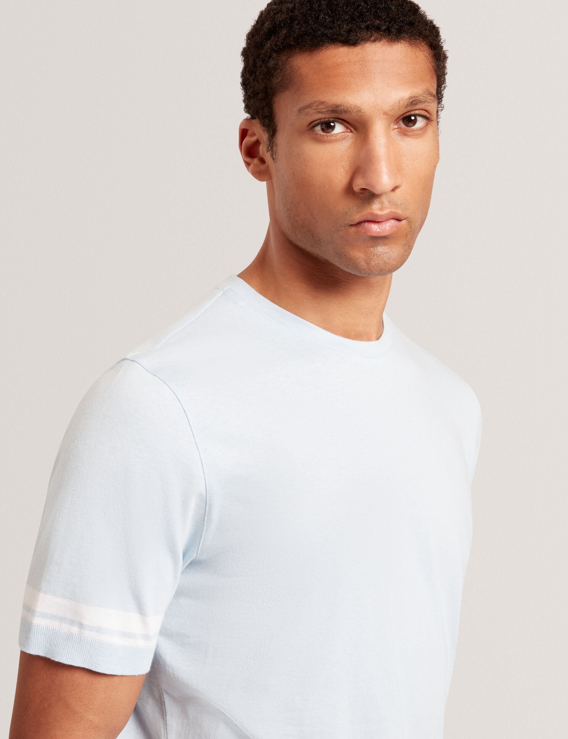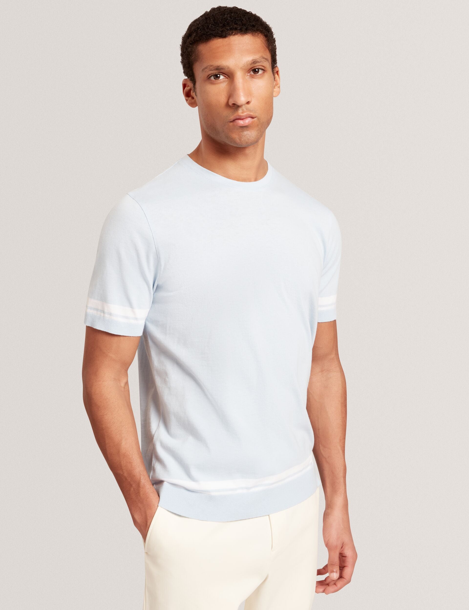 Block Stripe Trim Cotton Knit T-Shirt