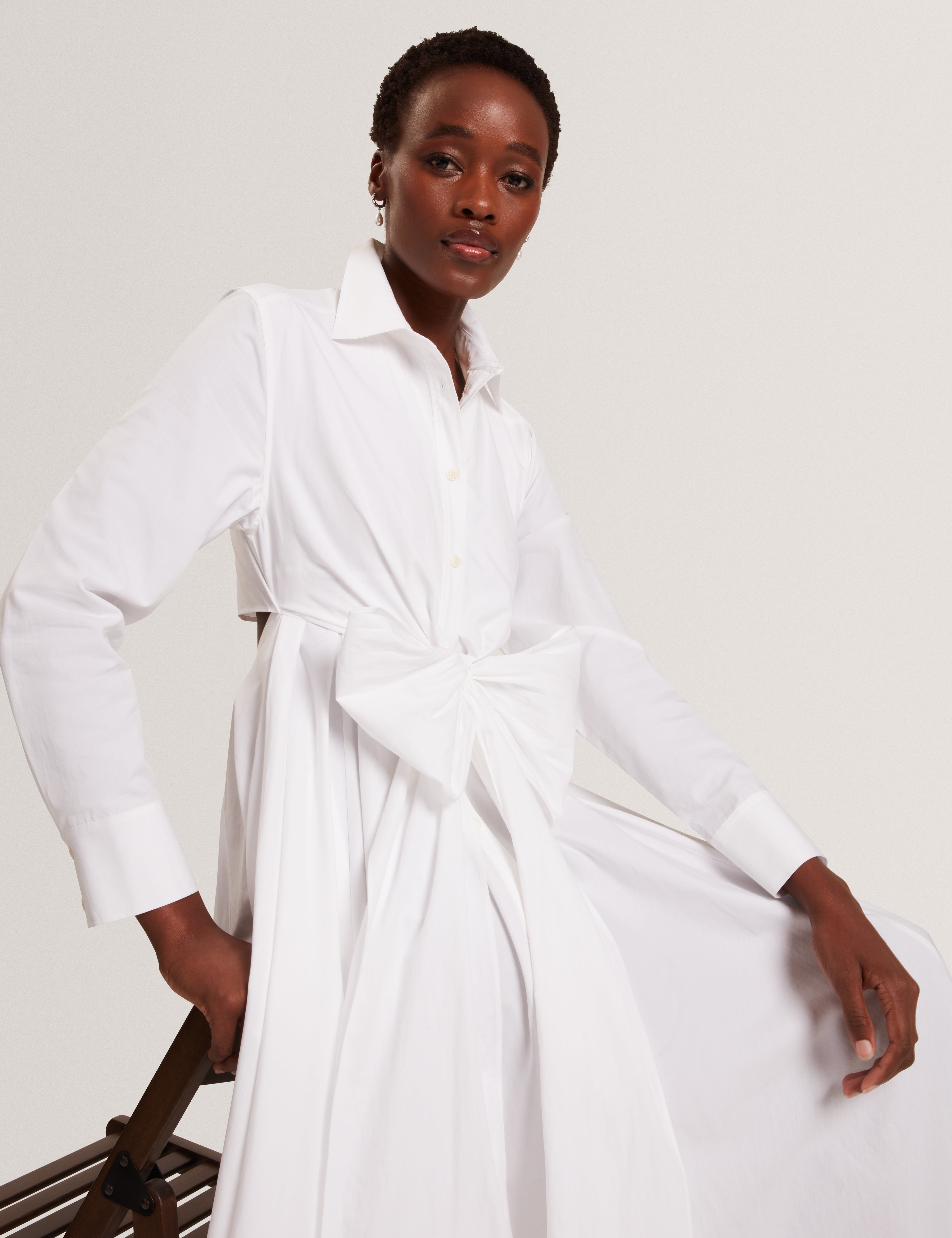 The ELLISIA shirt dress is easy style that you'll reach for at every moment. This pure cotton piece is designed with a wrap-around waist that can be tied at the front or back to switch up your look, and since we love a bit of drama, we've given it a cut-out section at the back.