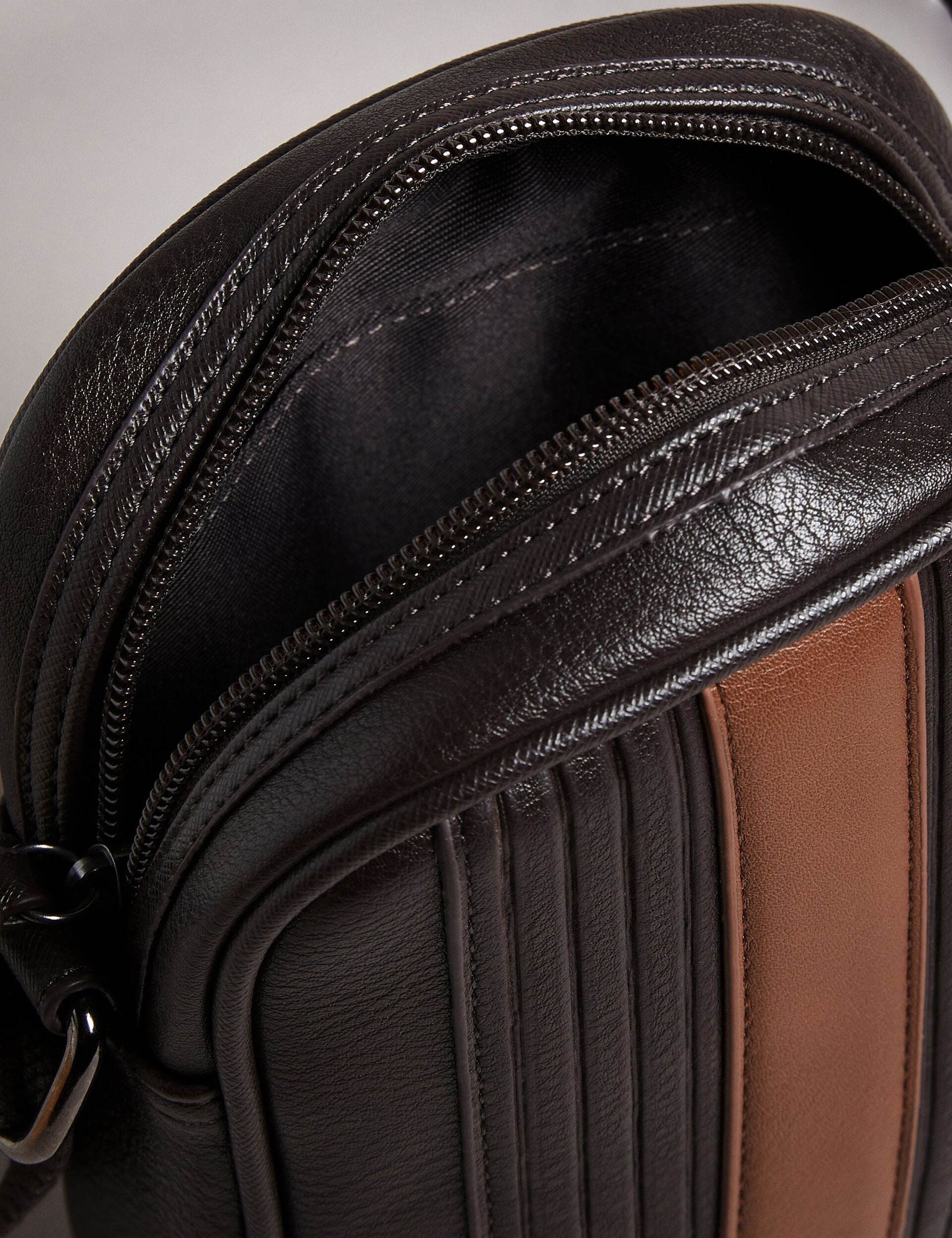 Striped Faux Leather Mini Flight Bag