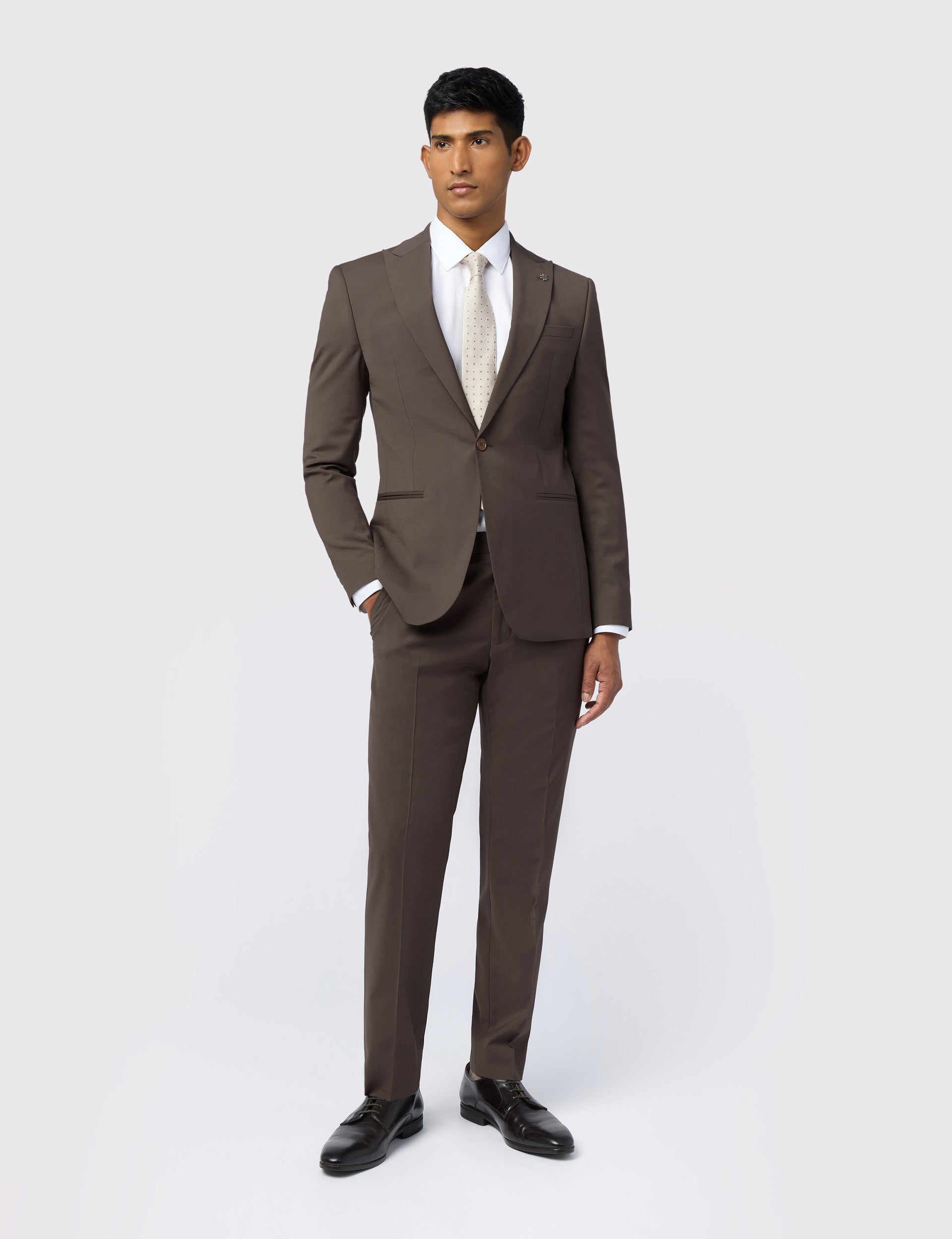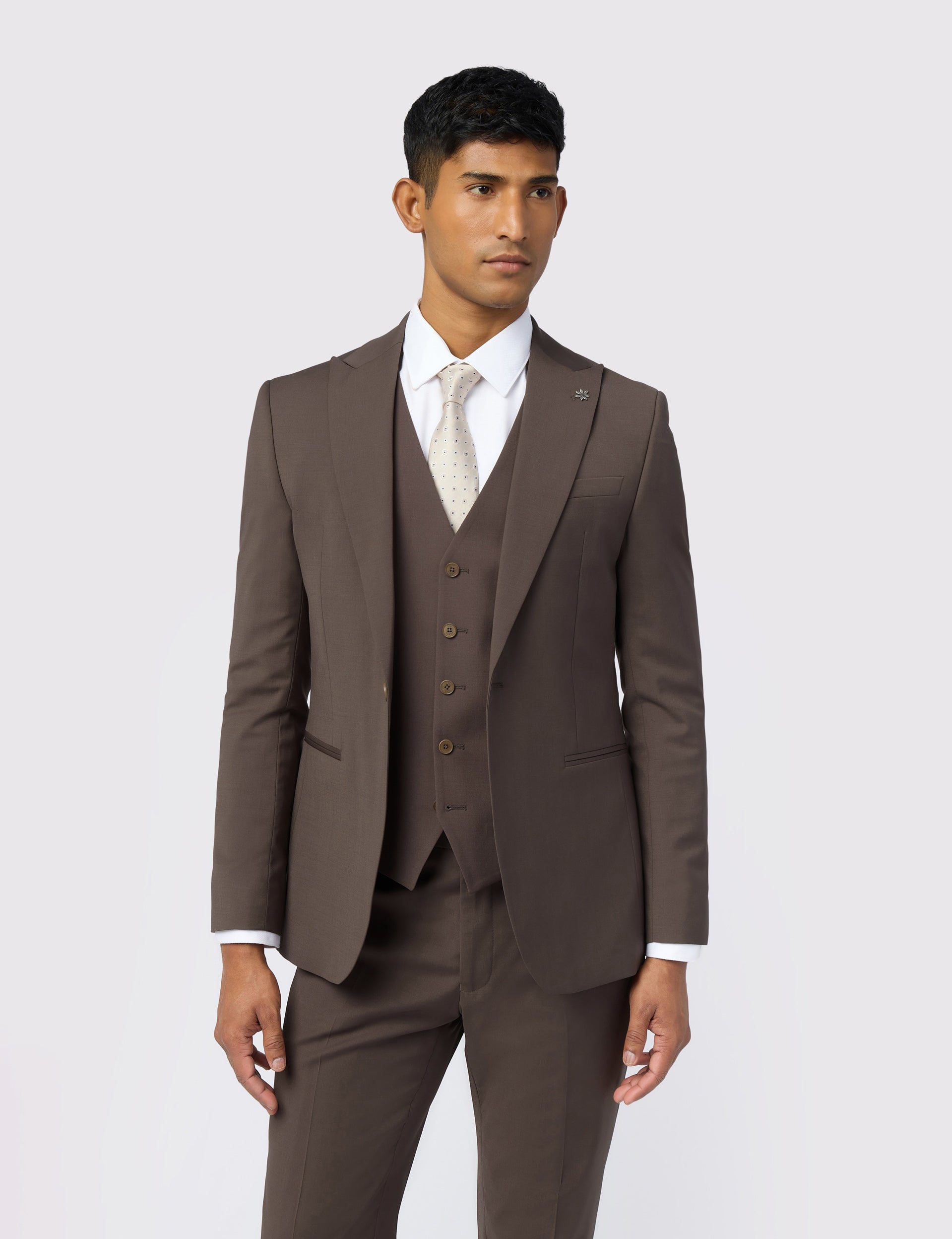 The FREETH taupe suit jacket brings contemporary colour to classic tailoring, finished with a subtle lustre that's instantly sophisticated. Cut in a signature slim fit, the wool blend fabric offers stretch and breathability for comfort on all occasions