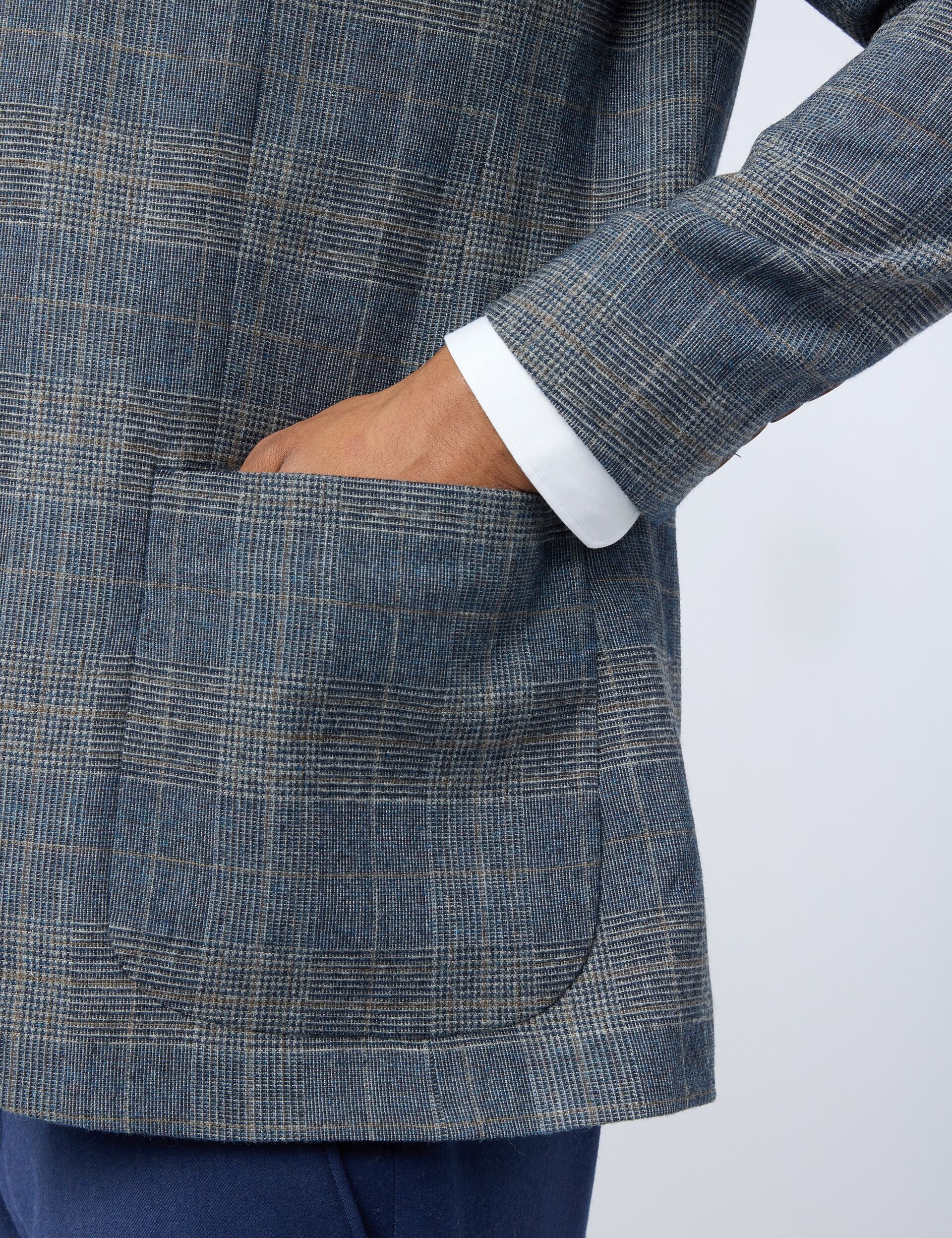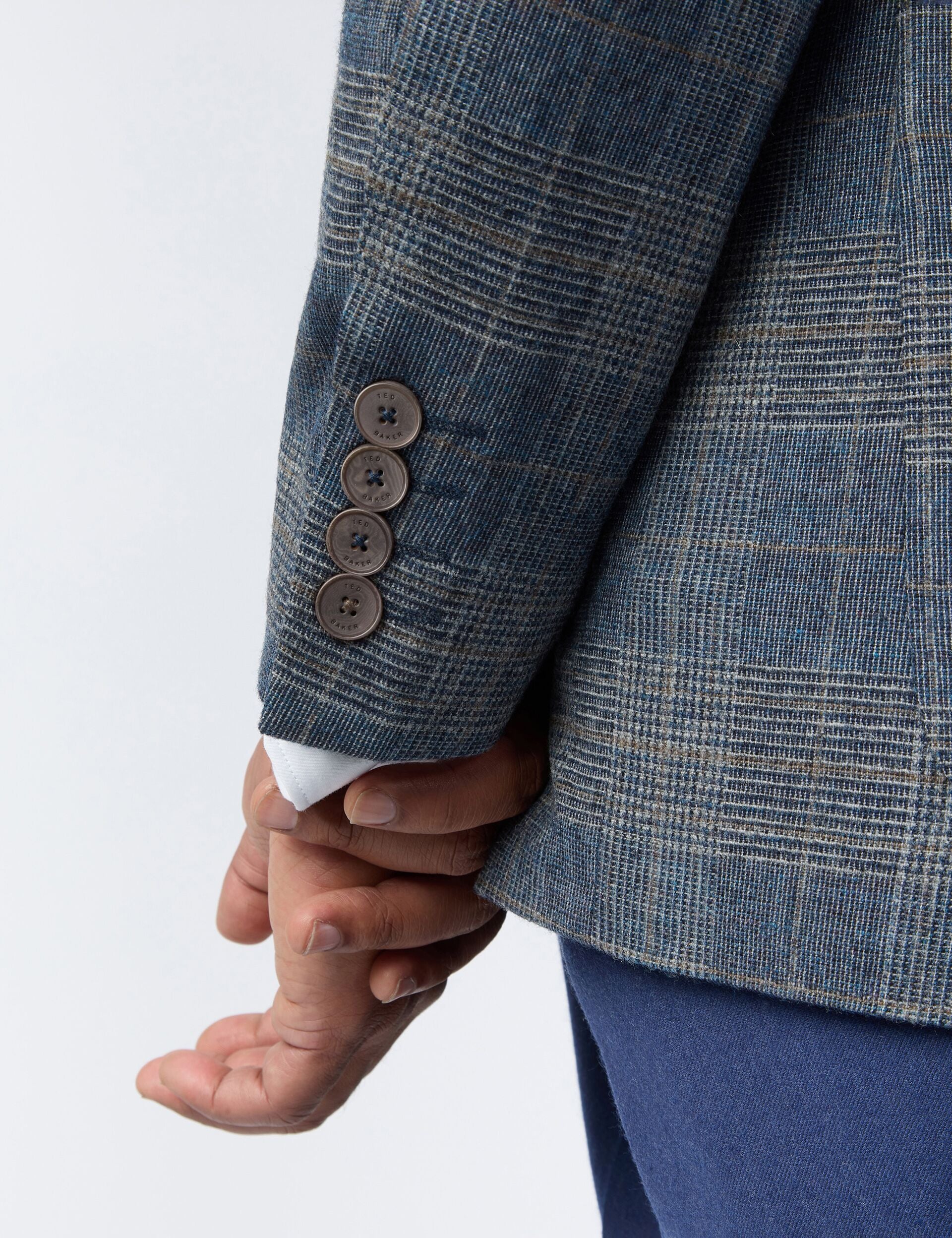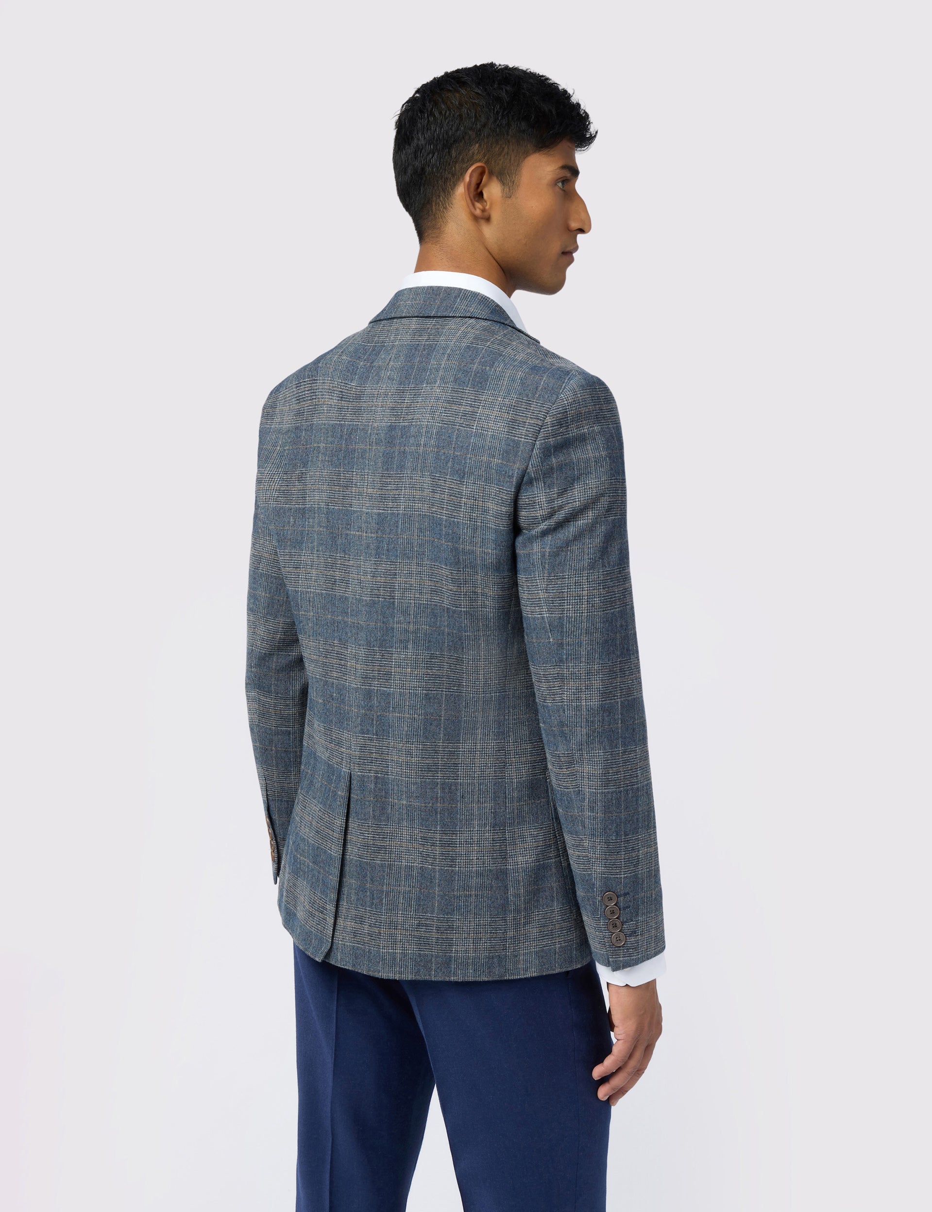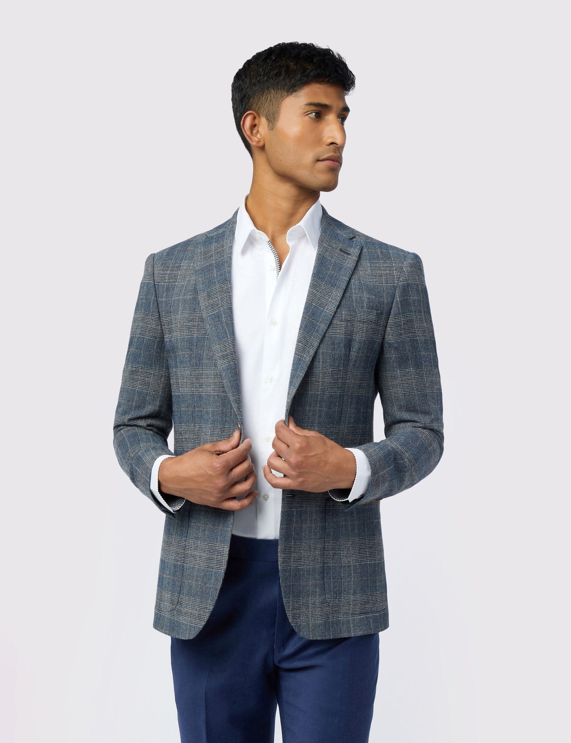 Featuring a stone-coloured glen check design on a navy base, the GALVIN slim fit blazer adds timeless flair to your smarter looks. The wool-rich blend features a comfortable stretch and natural breathability, and it's lined with an ornate bird print that doubles as a practical pocket square.
