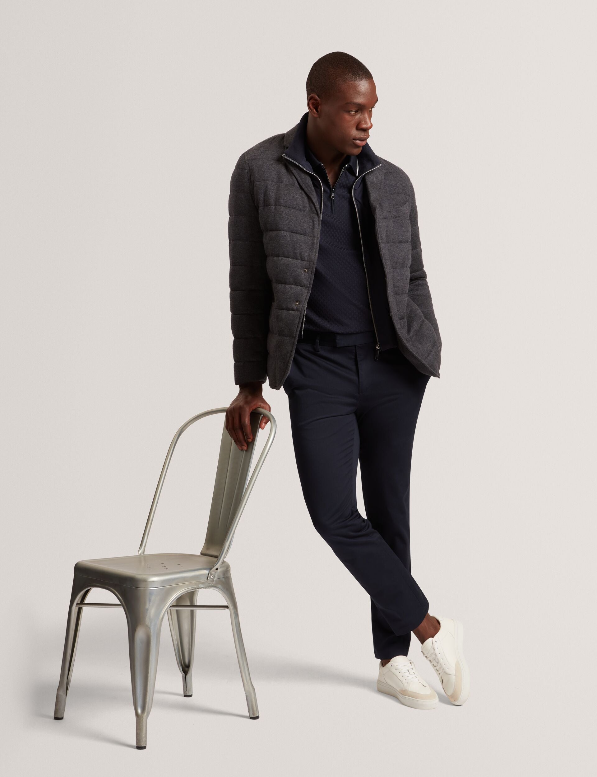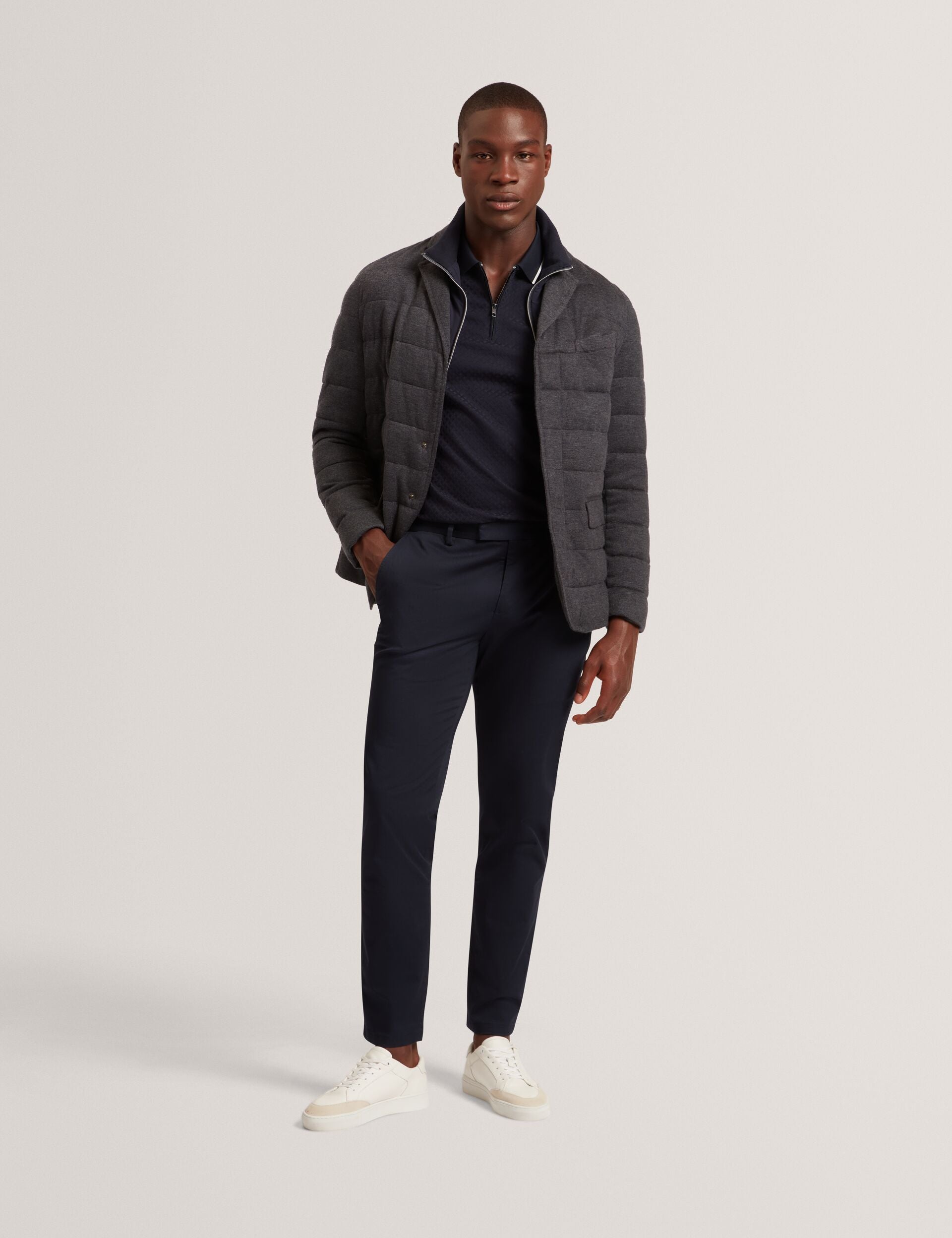 Quilted Blazer With High Neck Liner