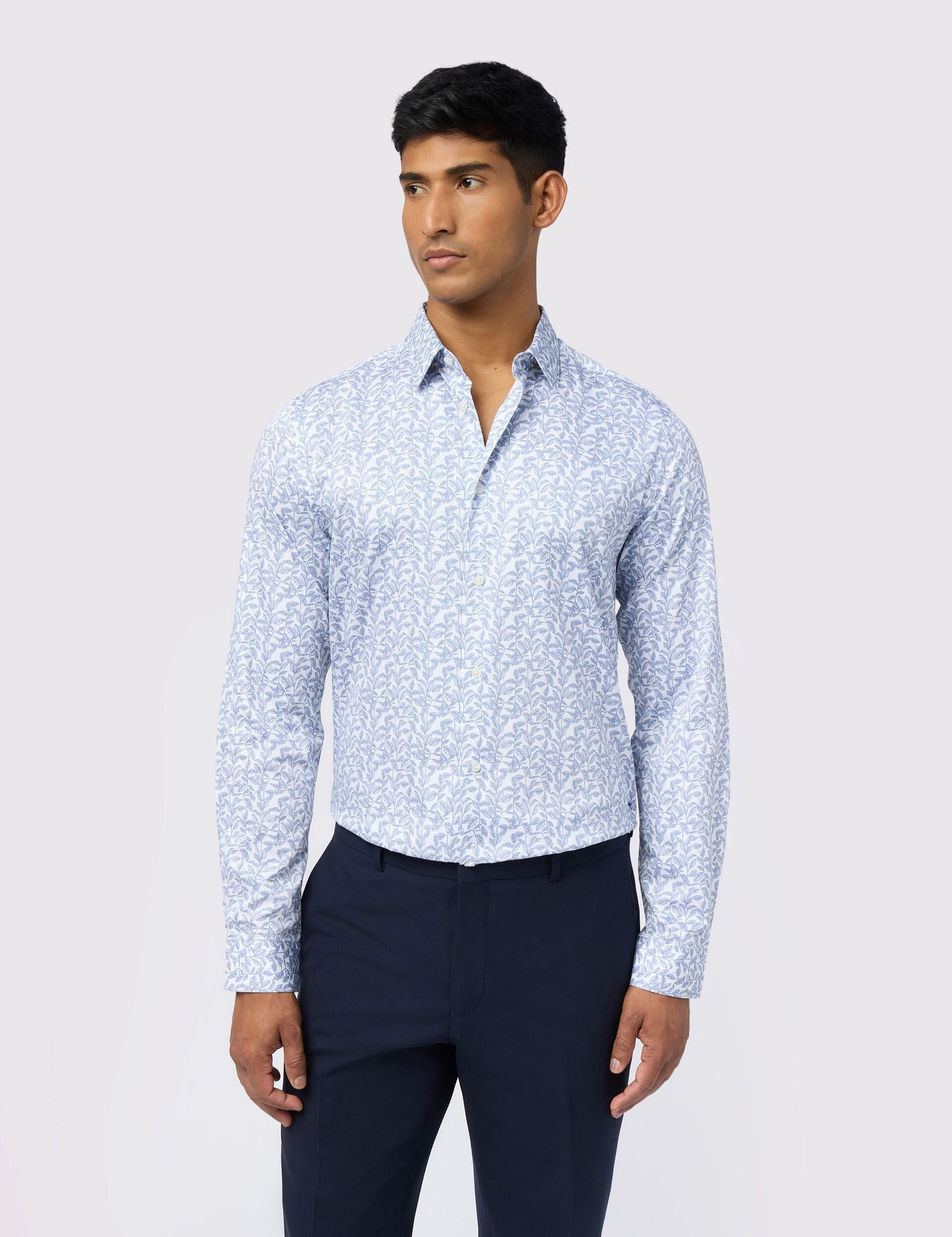 Designed with a blue leaf print on a clean white base, the HENDRA slim fit shirt brings a playful twist to your tailoring. The soft sateen fabric not only looks sleek, but it provides all day comfort thanks to the breathable organic cotton blend with added stretch.