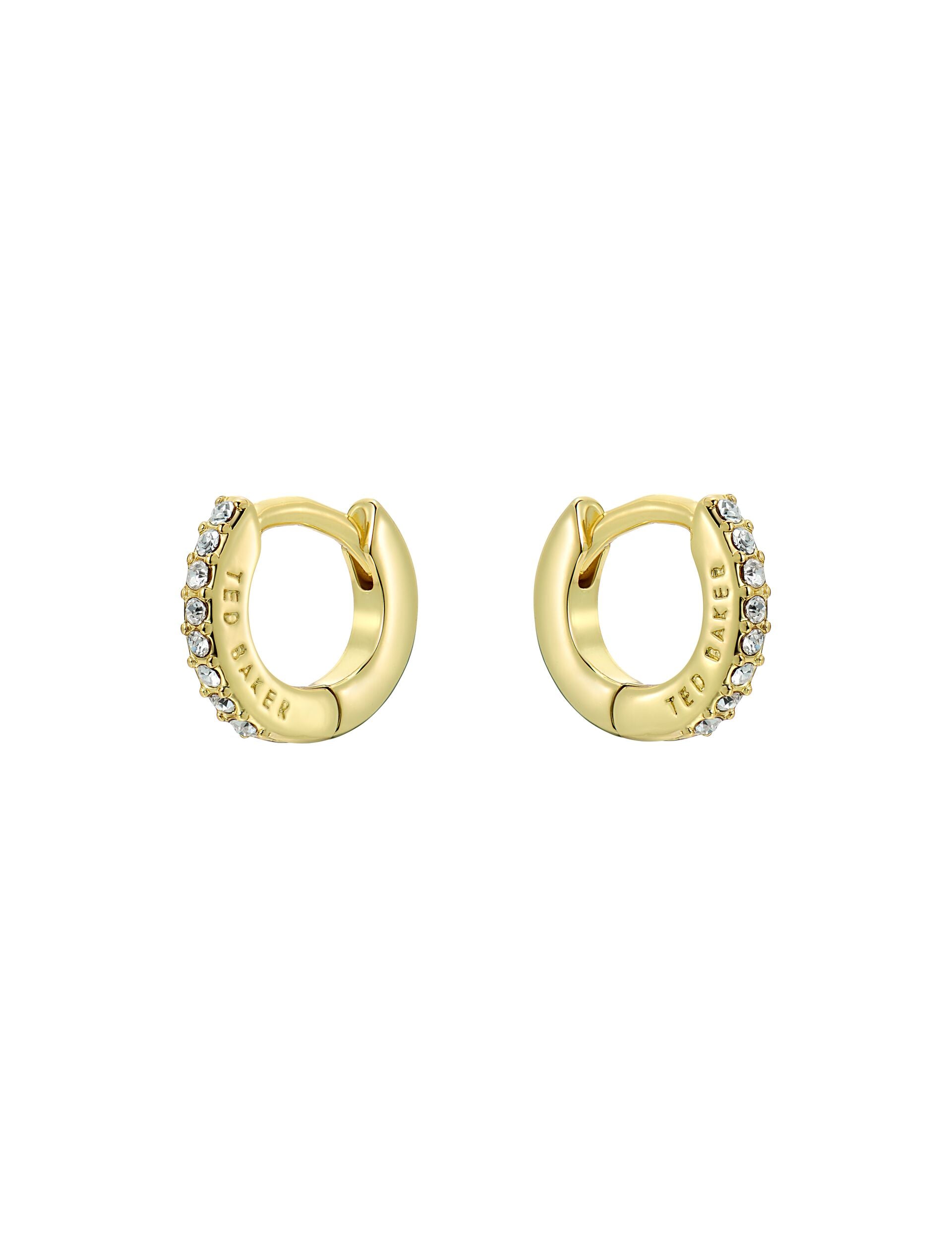 These HETTIEG earrings are the contemporary way to do sparkle, designed with a row of clear crystals on a gold-tone huggie hoop that's simple yet still glam. Perfect for bringing subtle shine to your everyday style.