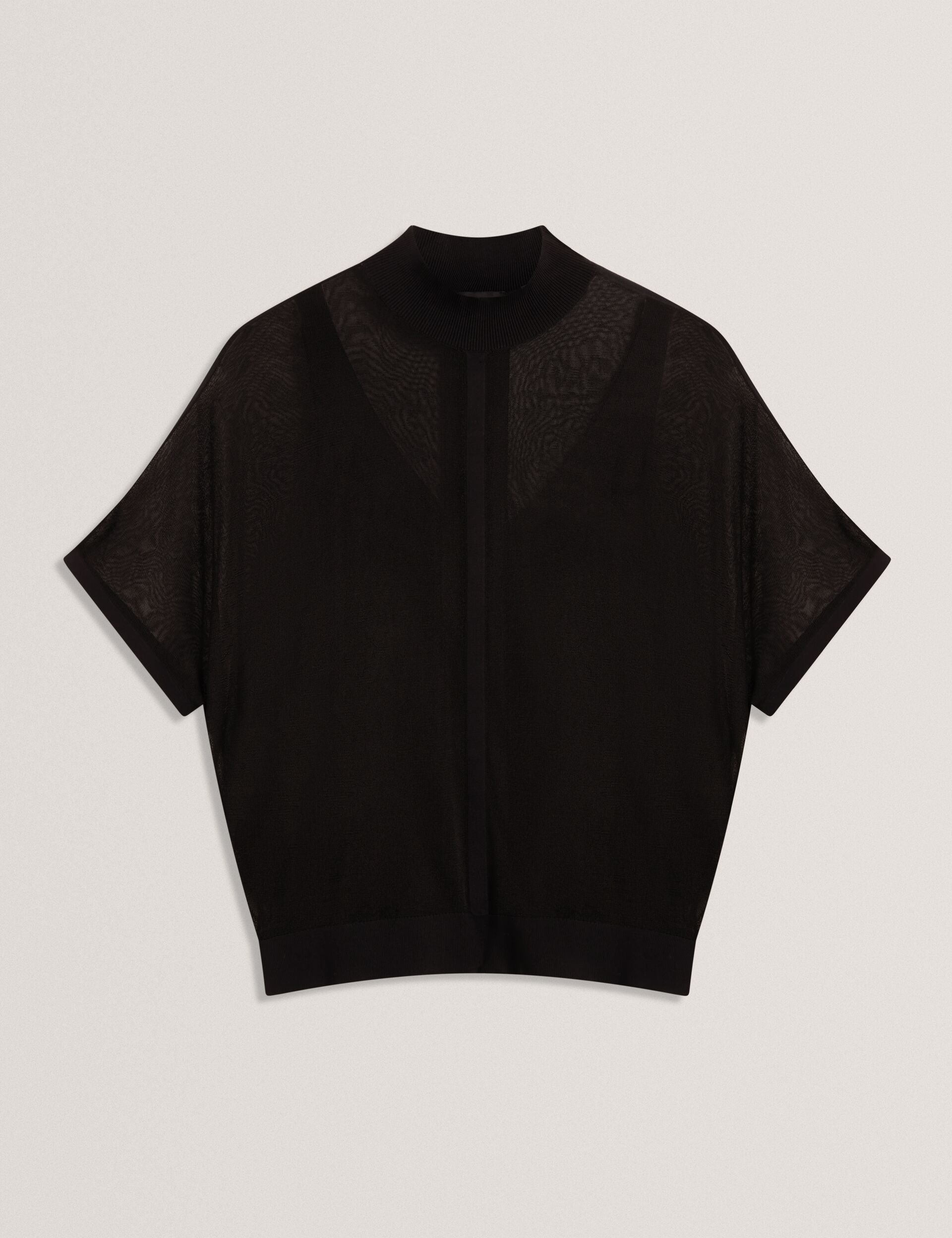 Not your average knit, the IBISSA top pairs a sheer panel design with wide short sleeves and a mock neckline to create an elevated staple that's easy to layer. Style this versatile piece with everything from mini skirts to smart trousers, day or night.