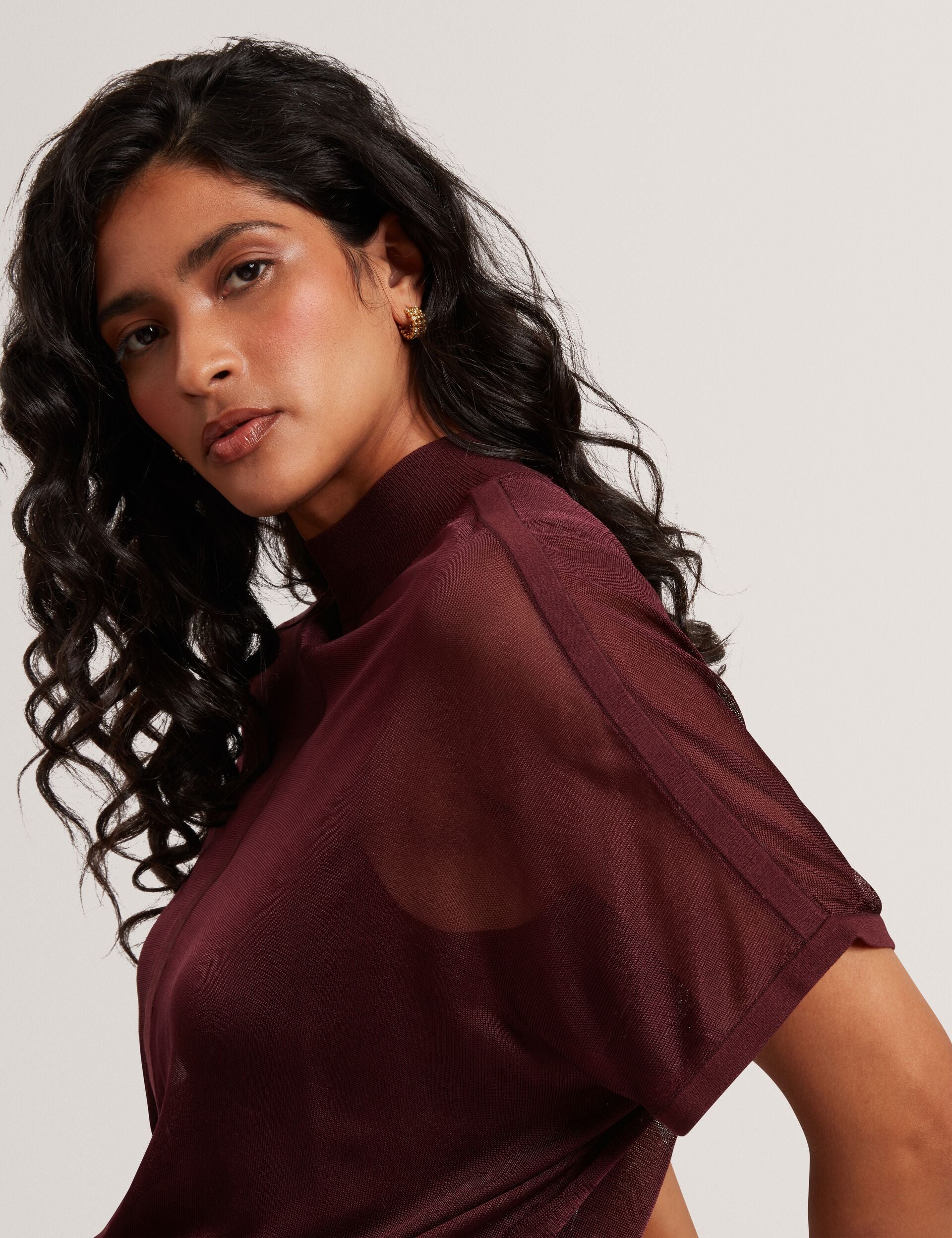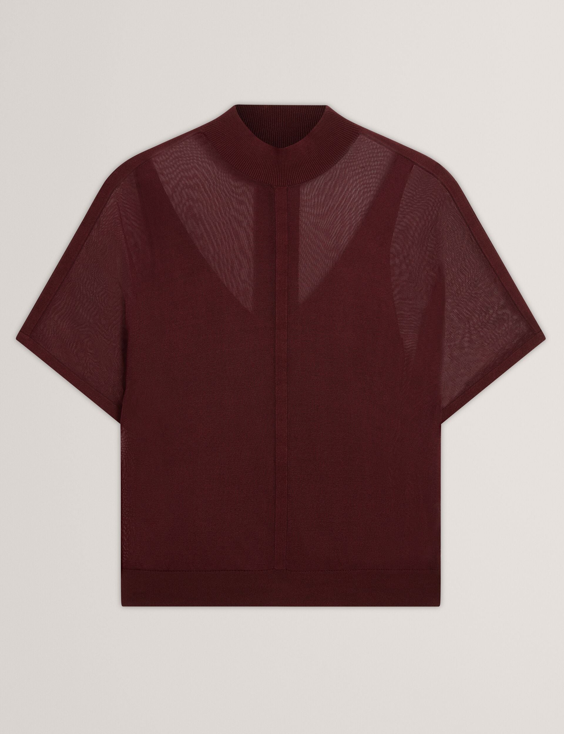 Not your average knit, the IBISSA top pairs a sheer panel design with wide short sleeves and a mock neckline to create an elevated staple that's easy to layer. Style this versatile piece with everything from mini skirts to smart trousers, day or night.