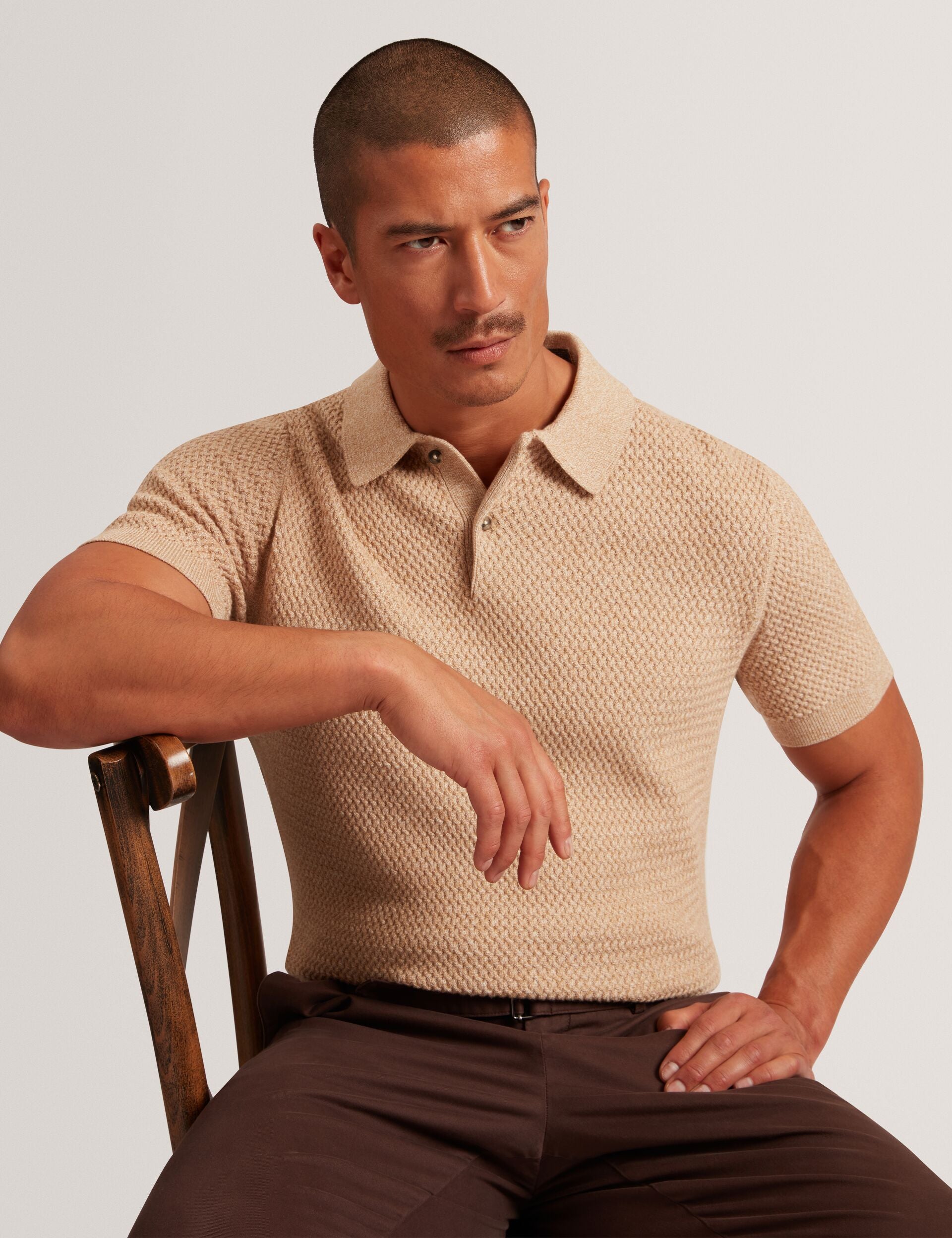 Textured Stitch Knitted Polo Shirt
