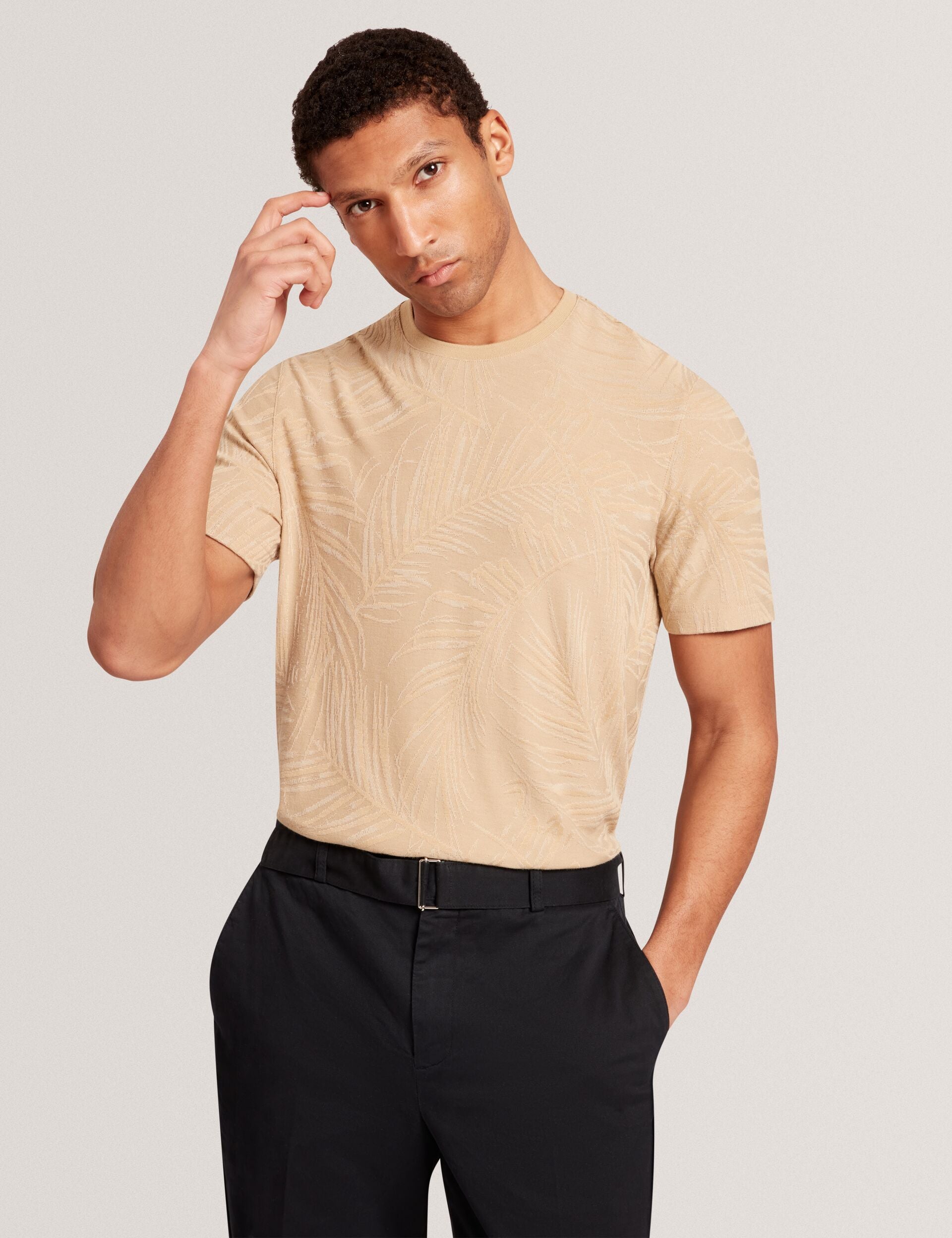 Jacquard Leaf Print Short Sleeve T-Shirt