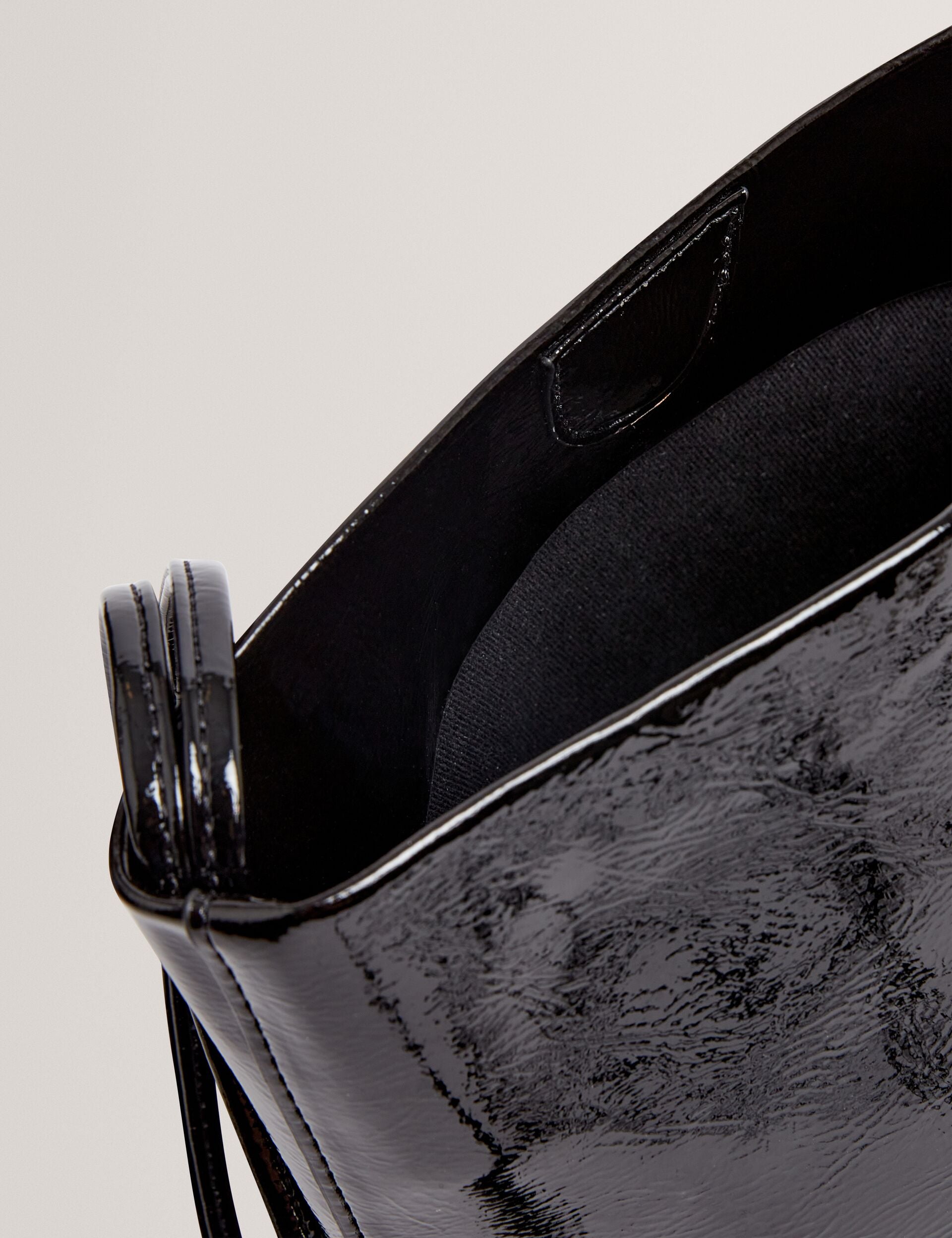 Turn your everyday style up a notch with KAYYLYN. This small bucket silhouette features a sleek yet practical slim strap, and the crinkled patent PU brings a glamorous twist.