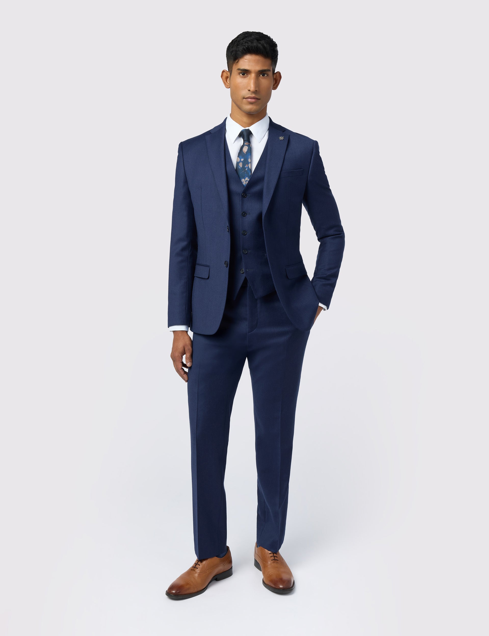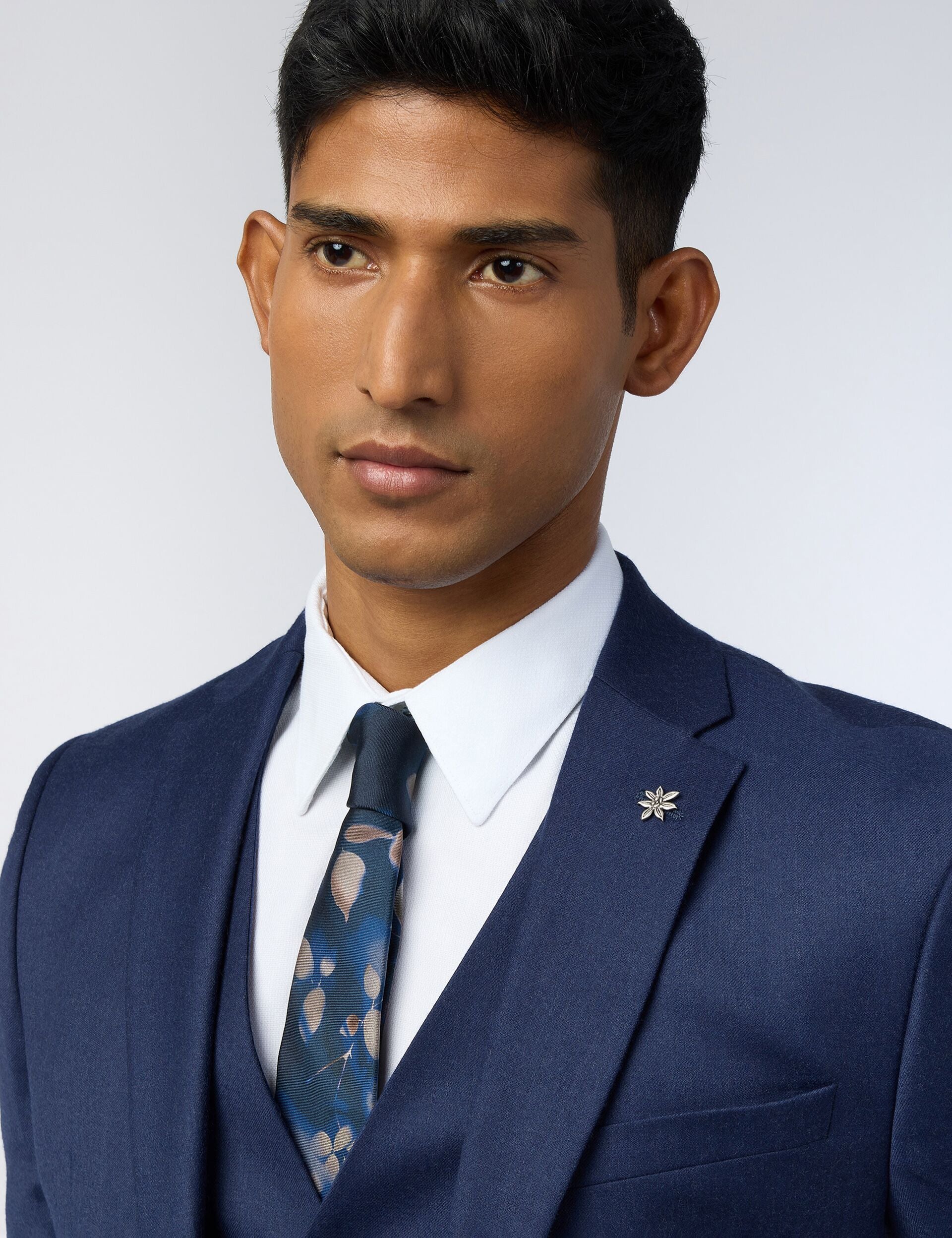 Crafted from a soft-touch flannel in a contemporary slim fit, the KEATS cobalt suit jacket delivers a flattering drape for that timeless tailored look. The wool-rich blend brings subtle texture and hint of stretch, lined with an ornate bird print design that doubles up as a pocket square - it will take you from business meetings to winter weddings.