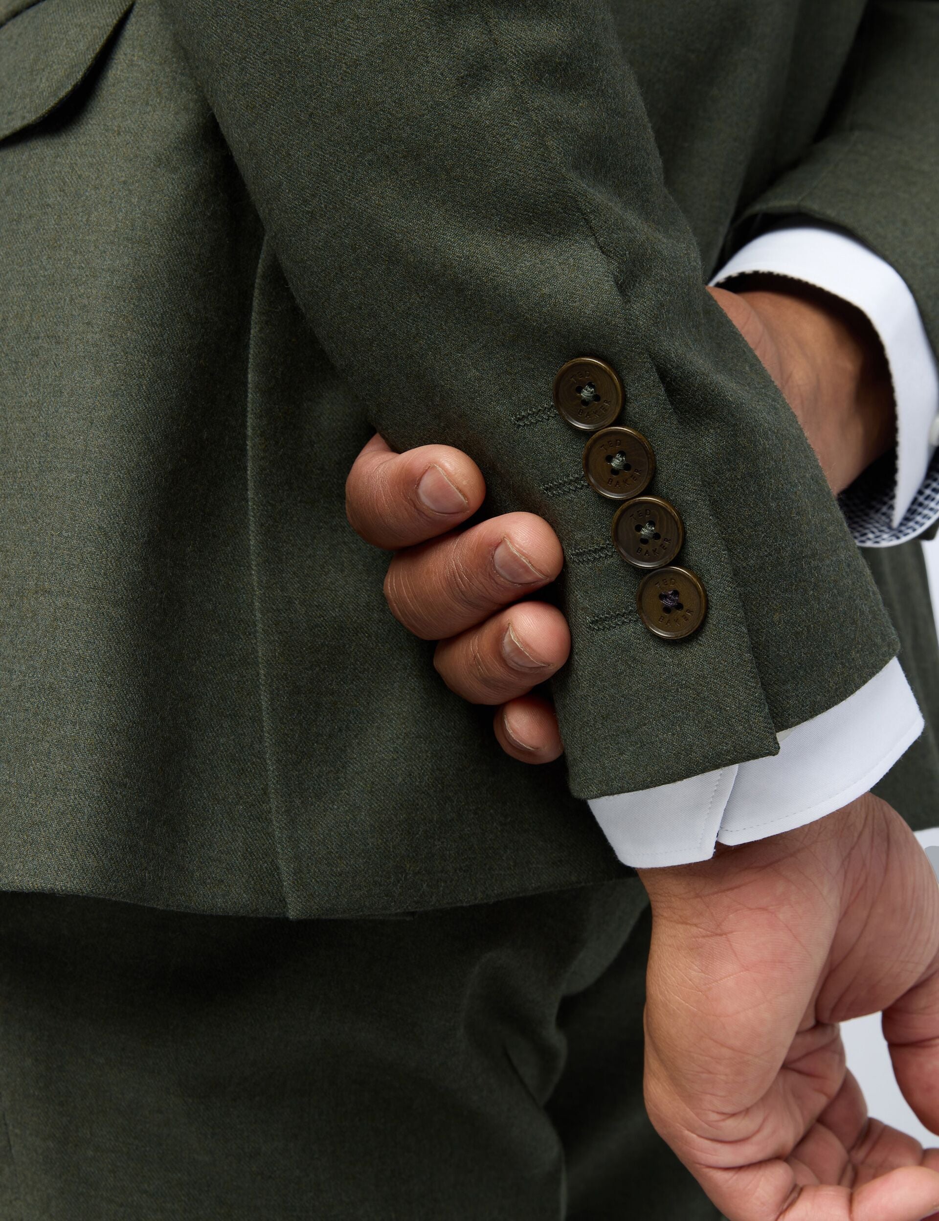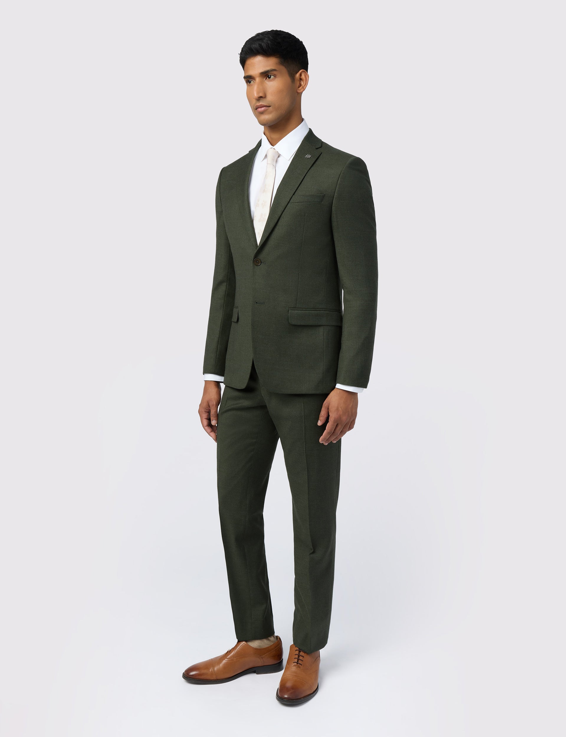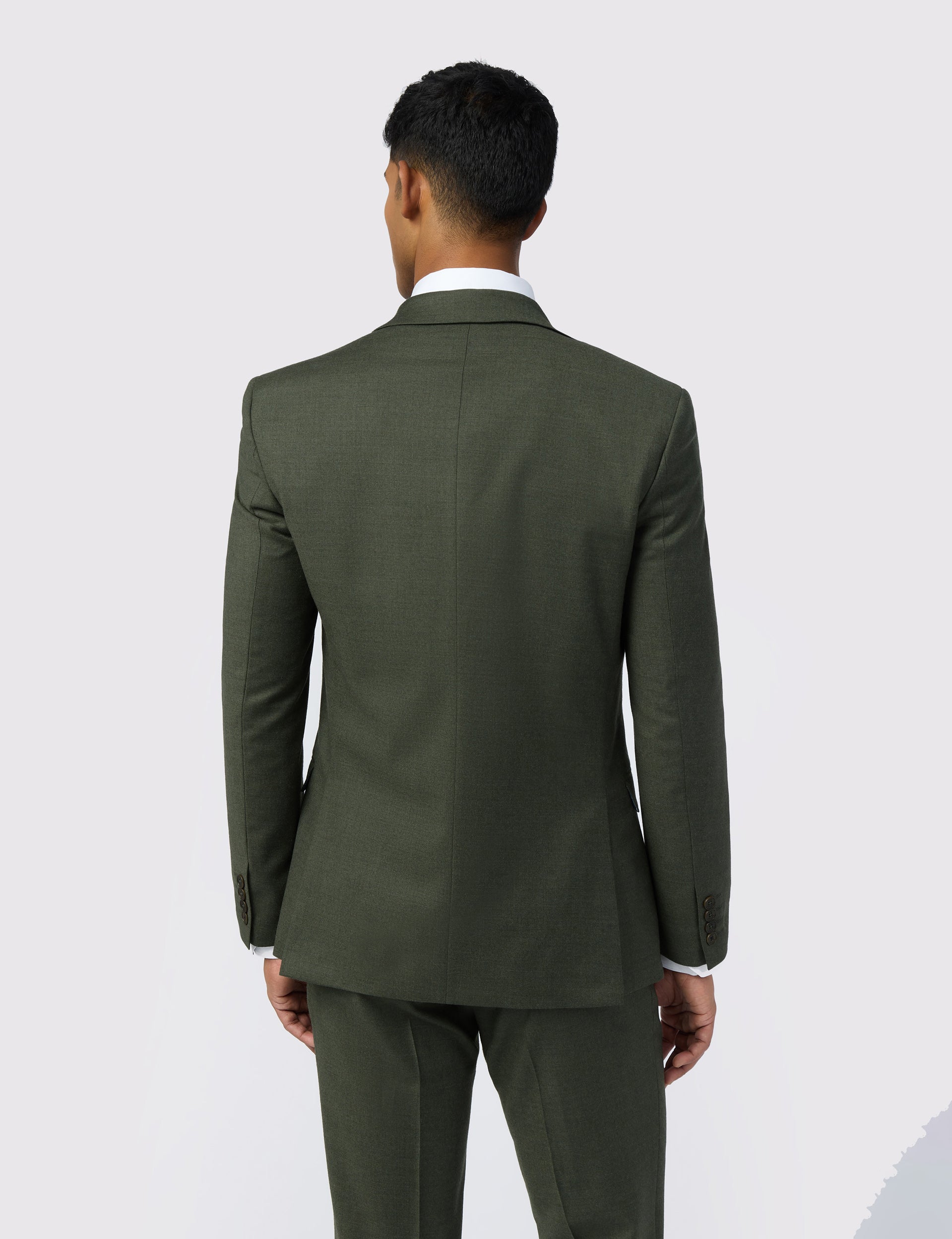 The LEAR suit jacket makes an autumnal statement with its rich olive tone and textured flannel fabric, adding depth to your tailored style. The contemporary slim fit drapes flatteringly, crafted from a comfortable wool blend with a hint of stretch. Lined with a bird print that doubles up as a pocket square, it's suited to every formal event.