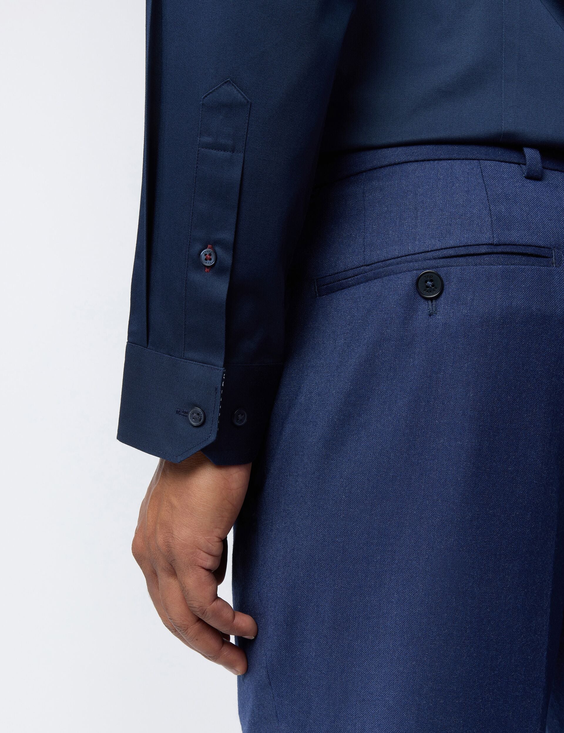 The LUUK long sleeve shirt is a suiting staple, made from a sleek sateen fabric in a deep shade of navy. Crafted from organic cotton with a touch of stretch, this slim fit style feels comfortable and breathable all day long, even under suit jackets.