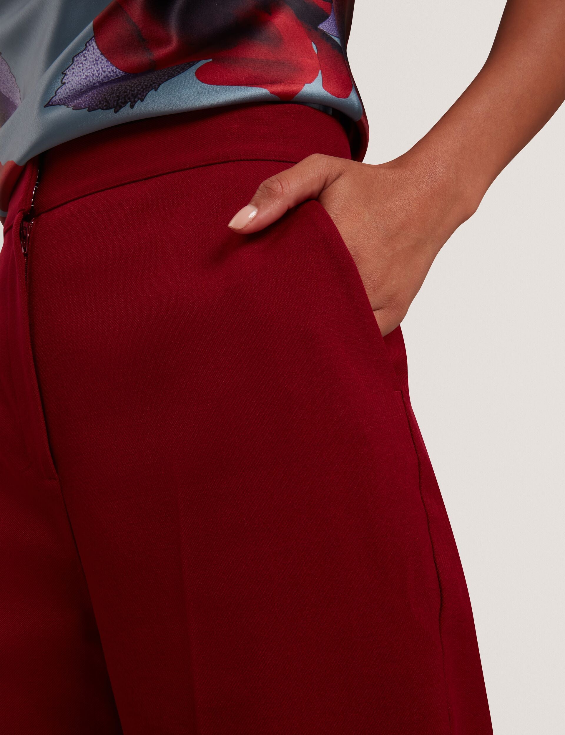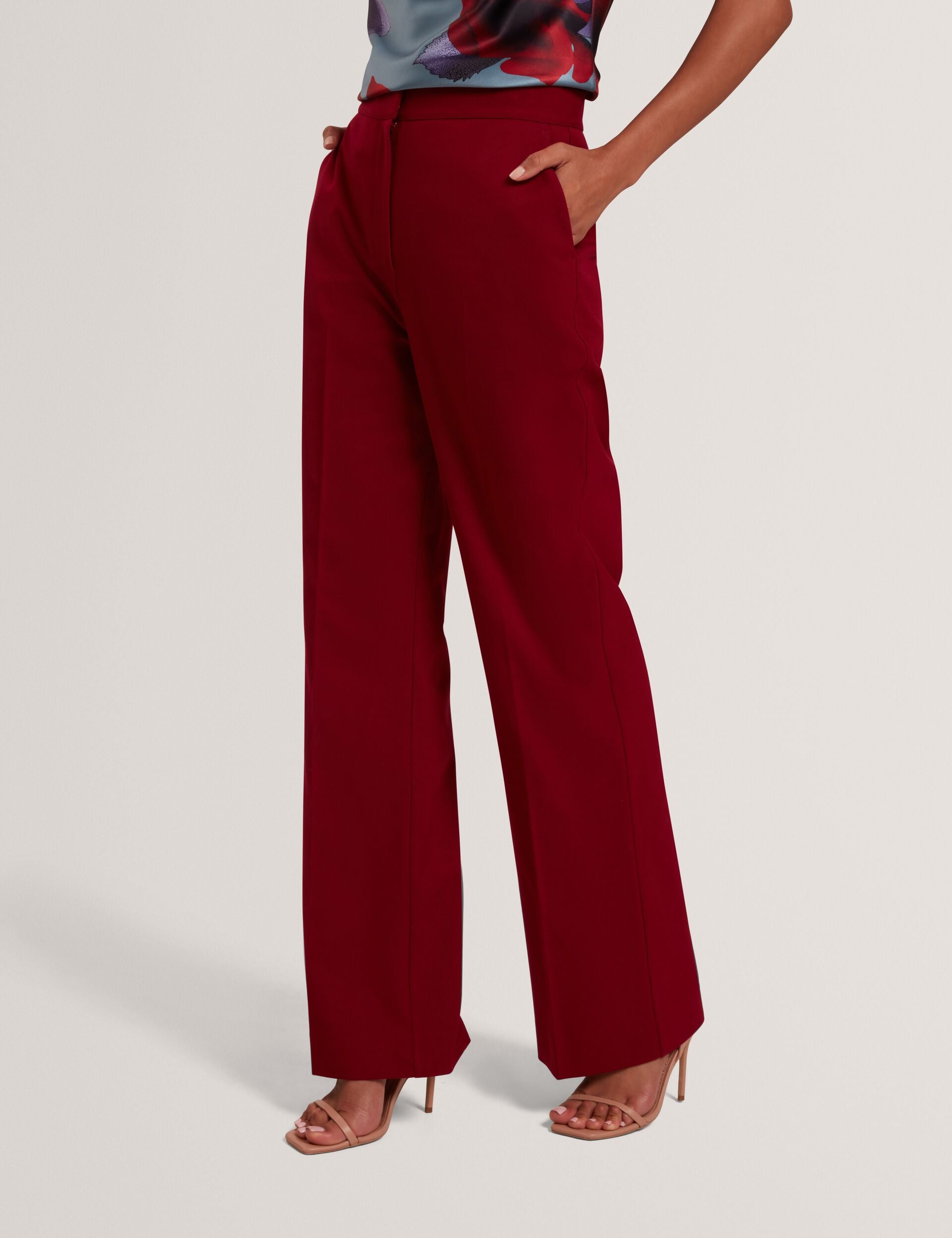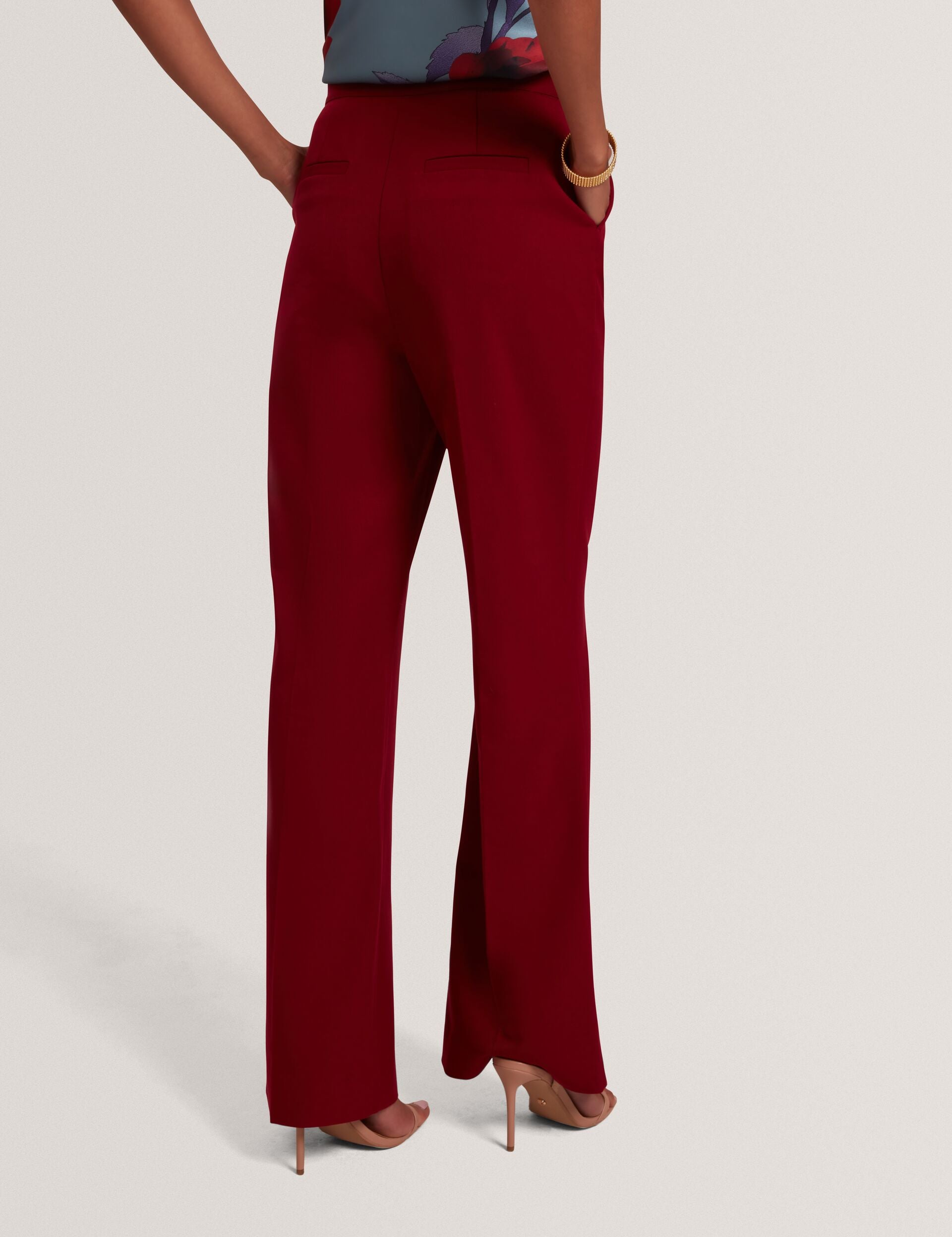 The LYMAT tailored trousers deliver polished style with their modern flared silhouette, crafted from a smart yet comfortable wool twill in a bold shade of dark red. Wear it with the matching LYMAT blazer for that full powersuit look.