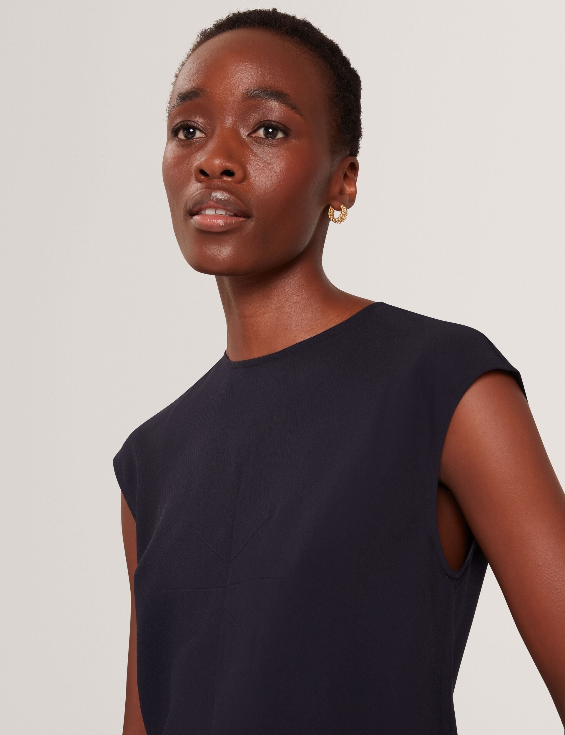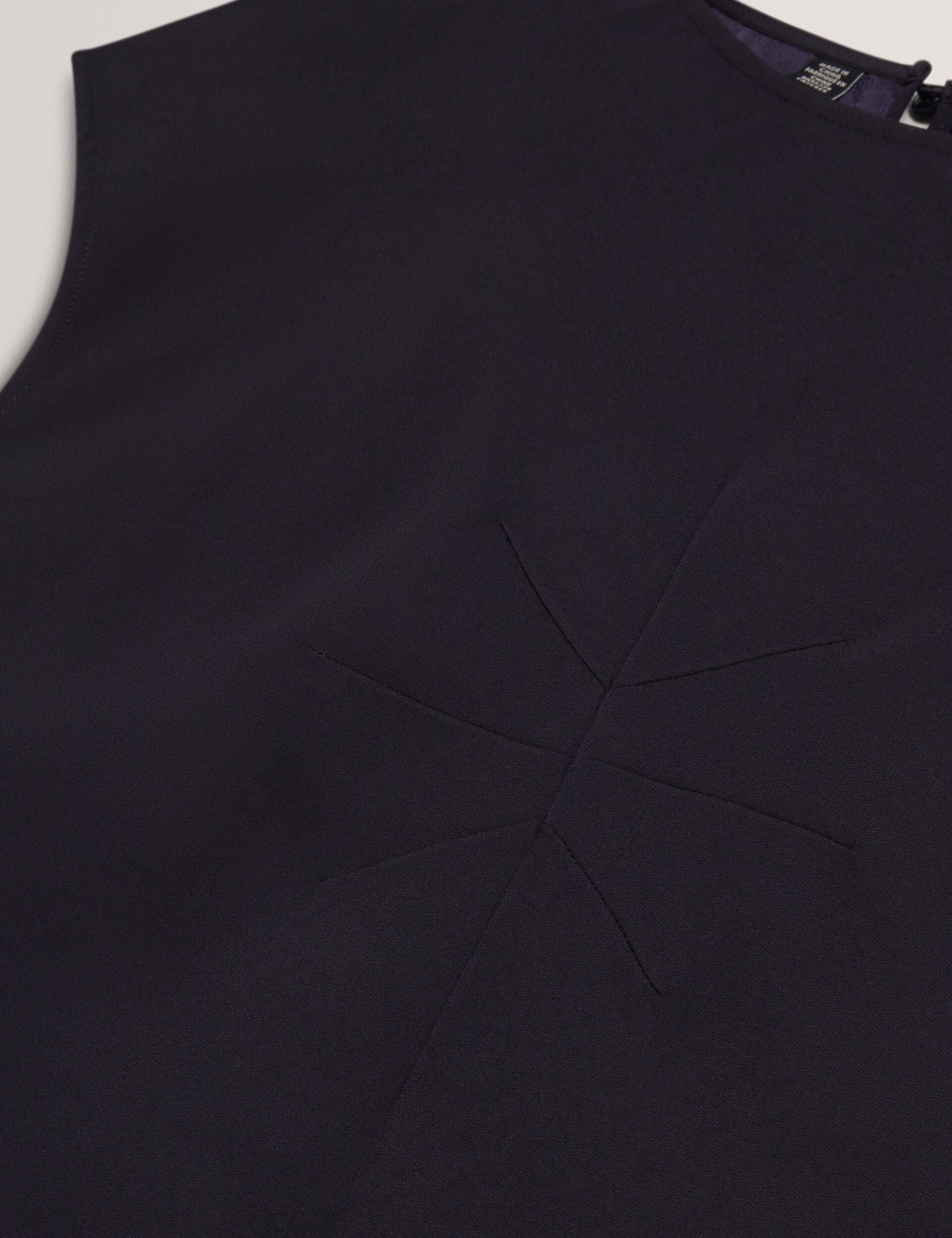 - Dart seam detail at bust