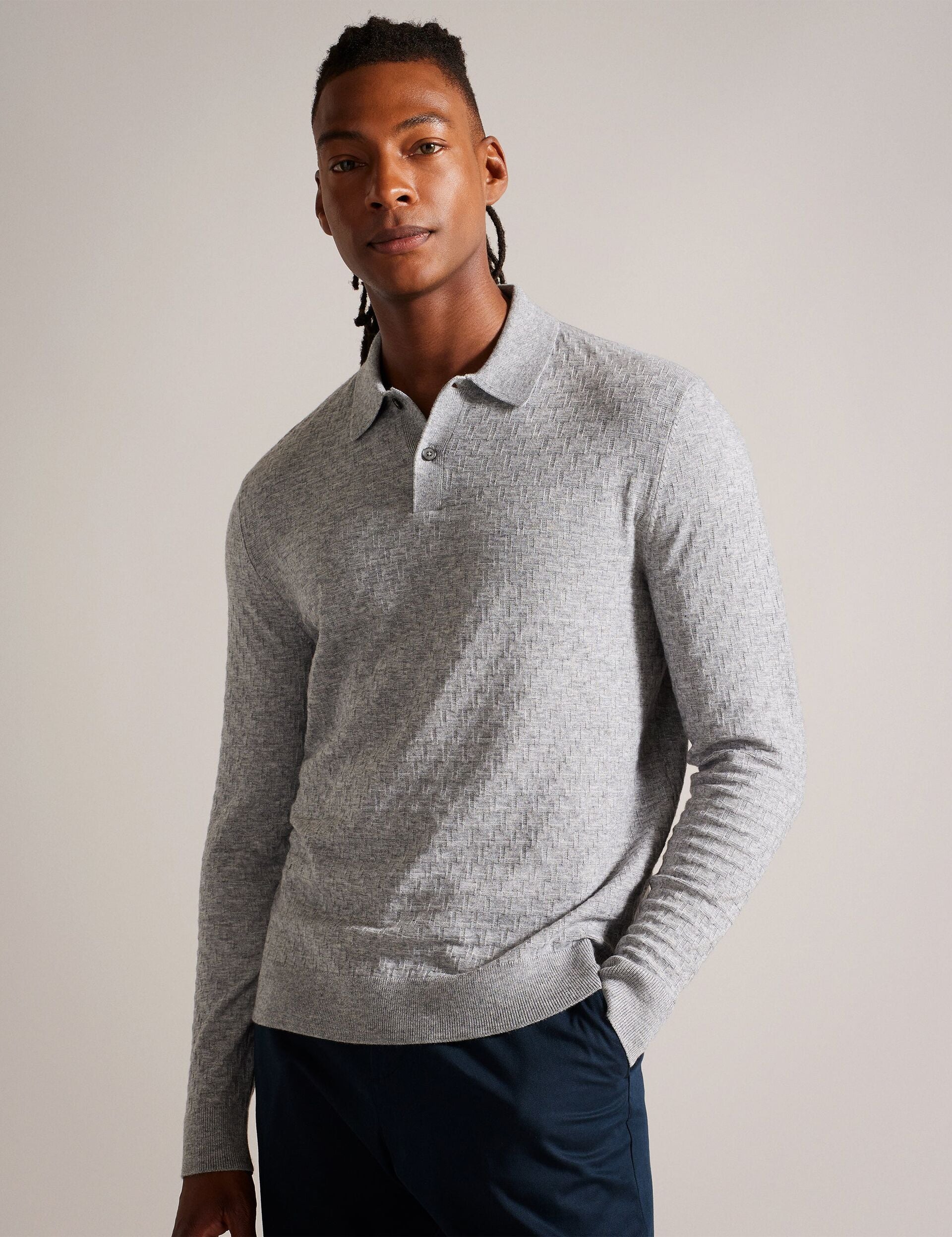 Long Sleeve T Stitch Knitted Polo