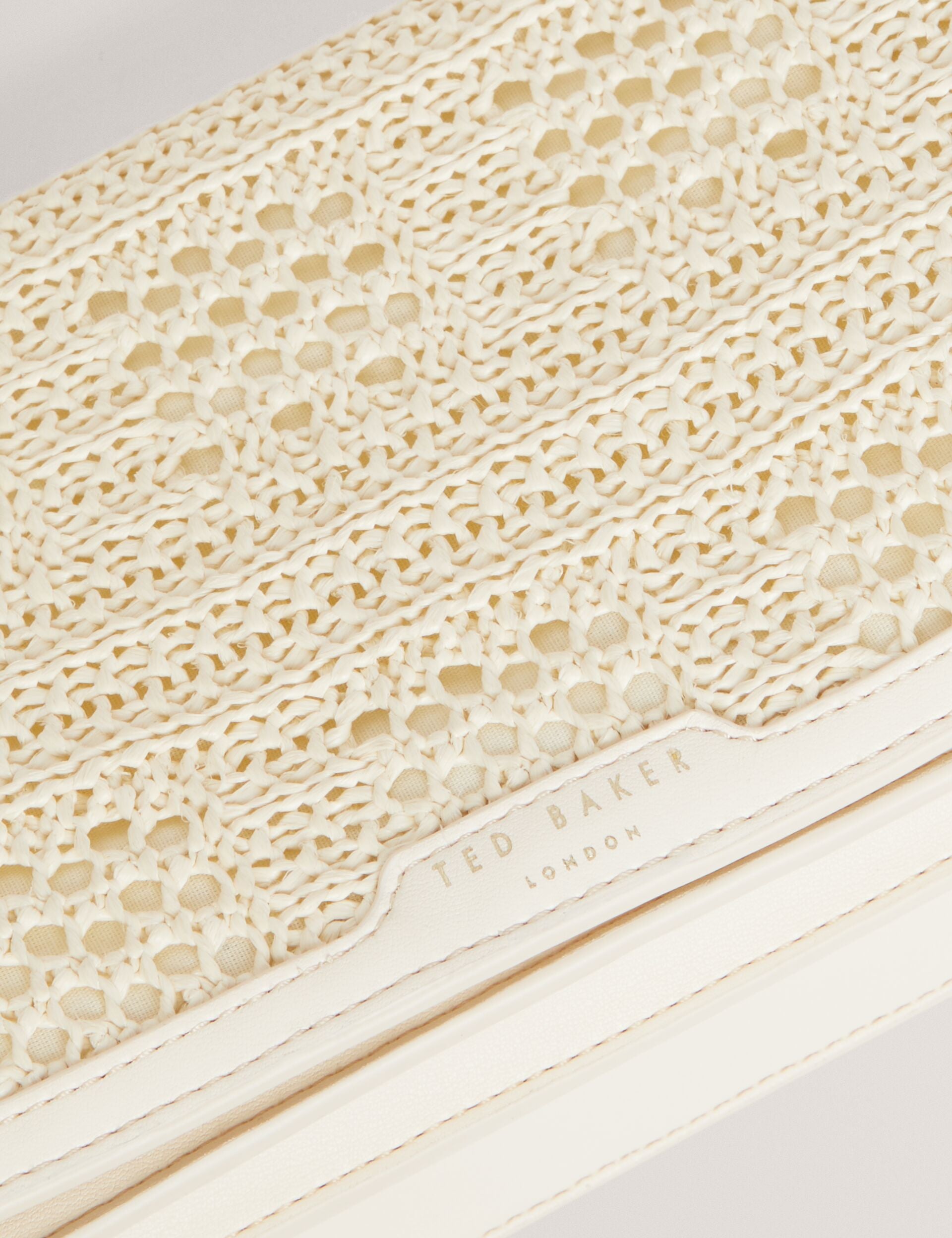 Raffia Panel Fold-Over Baguette Shoulder Bag