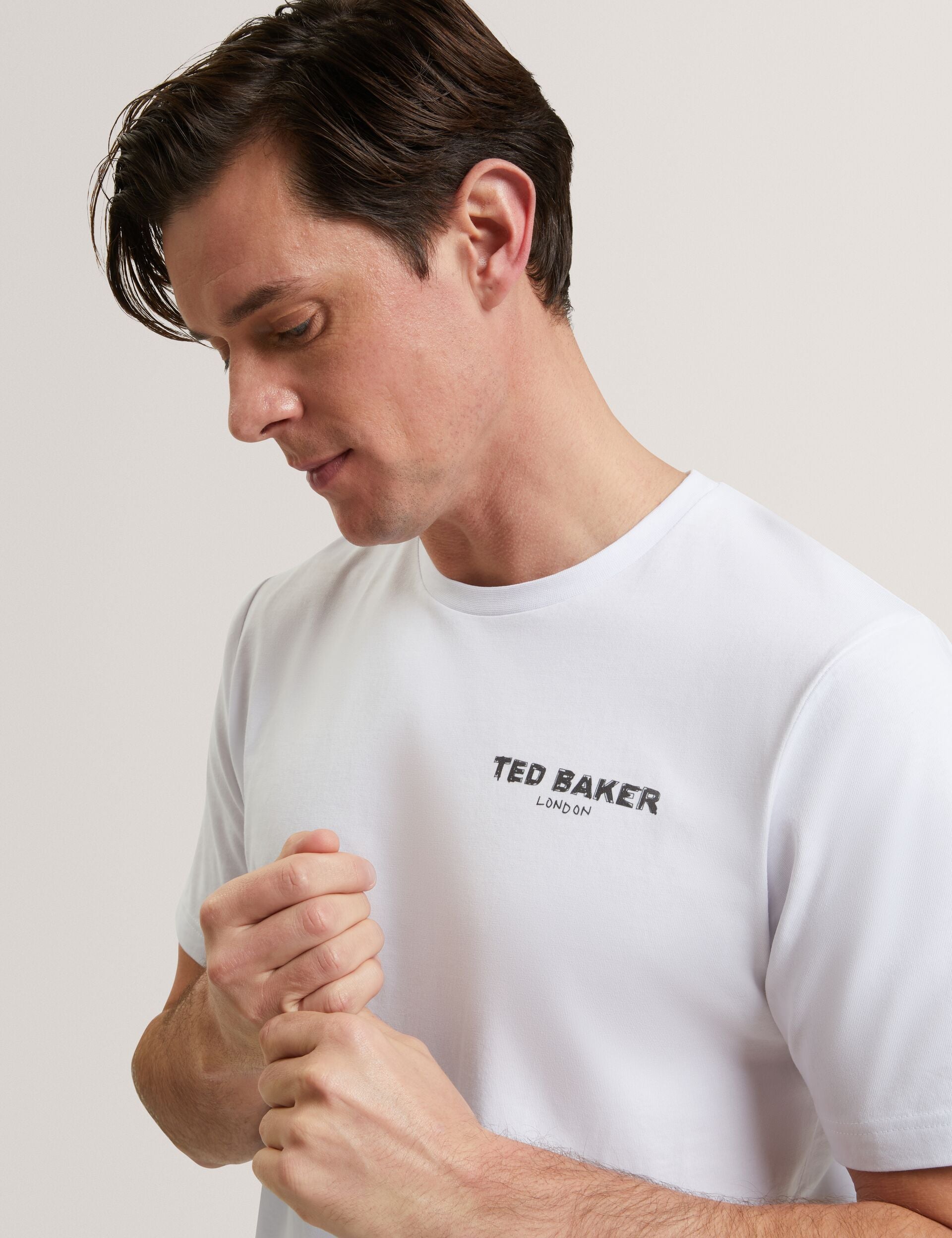 Subtle logo detail on the front, bold graphic design on the back. The RAMOSS crew neck t-shirt features a flamingo pool ring back graphic sketched in vibrant colour, ready to bring statement flair to your casual outfits.