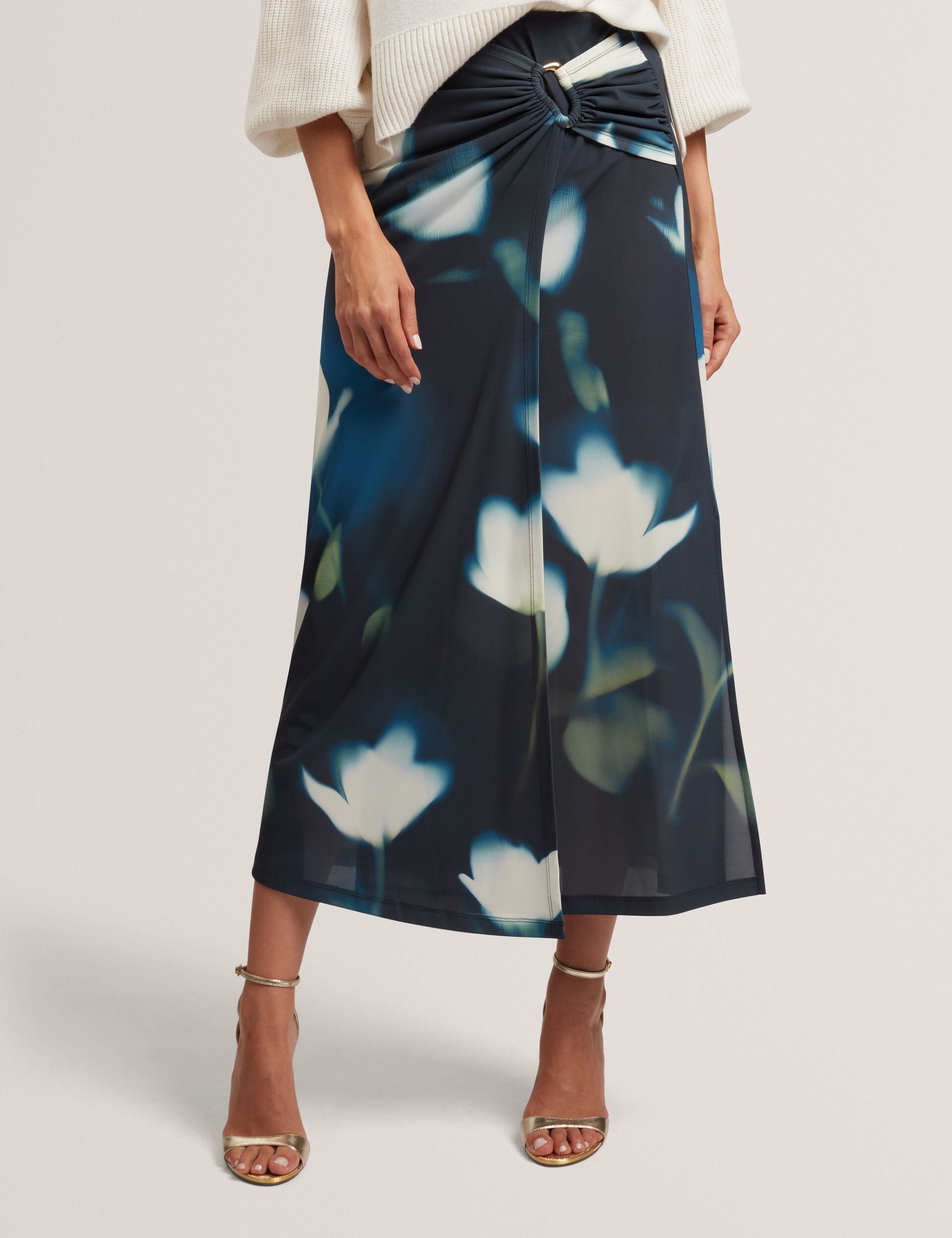 The RHAEA midi skirt is all about modern elegance with its flattering wrap design and unique blurred floral print, finished with a side split detail to make it move gracefully. Style this versatile piece with everything, from dressy camis to plain tees.